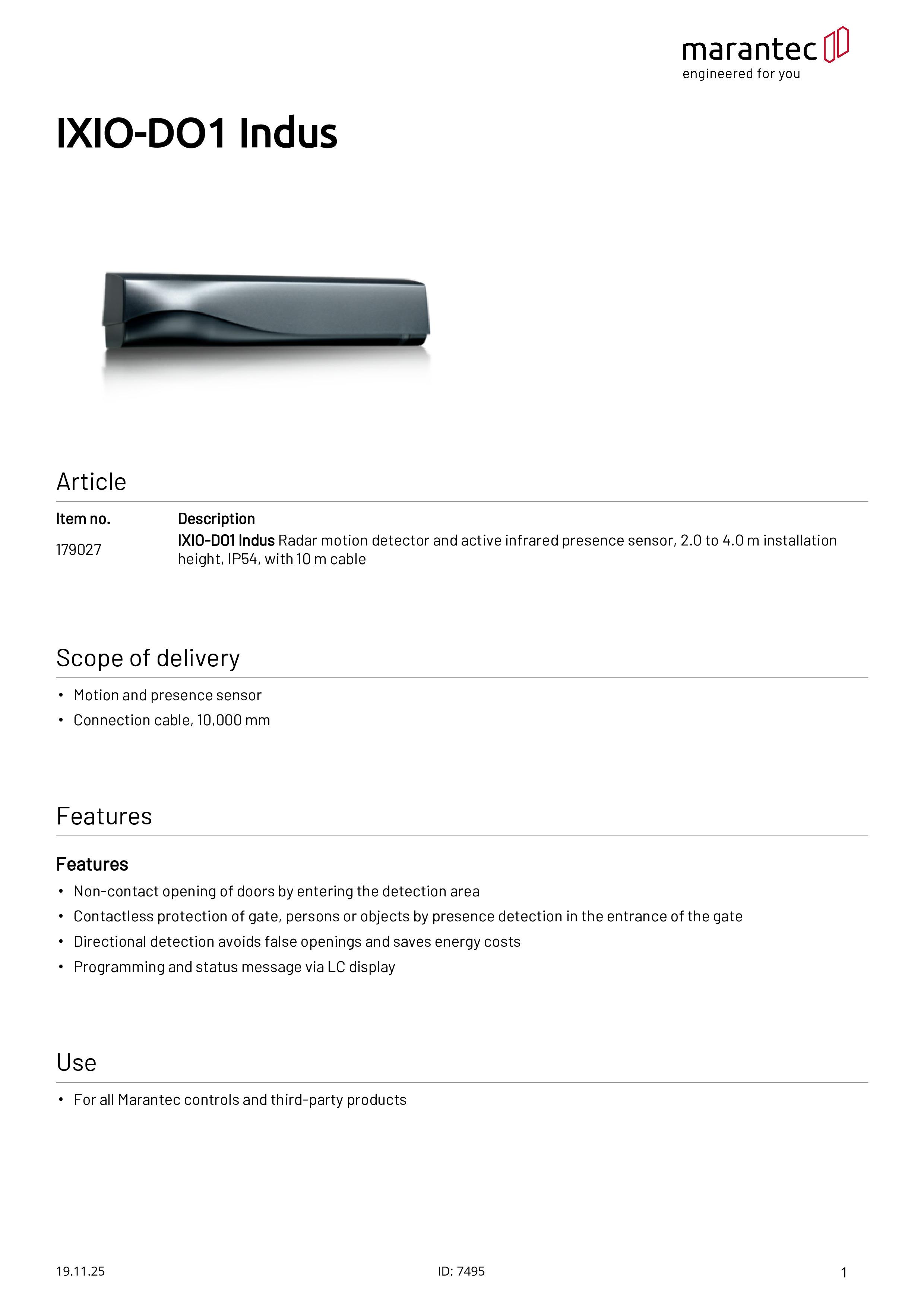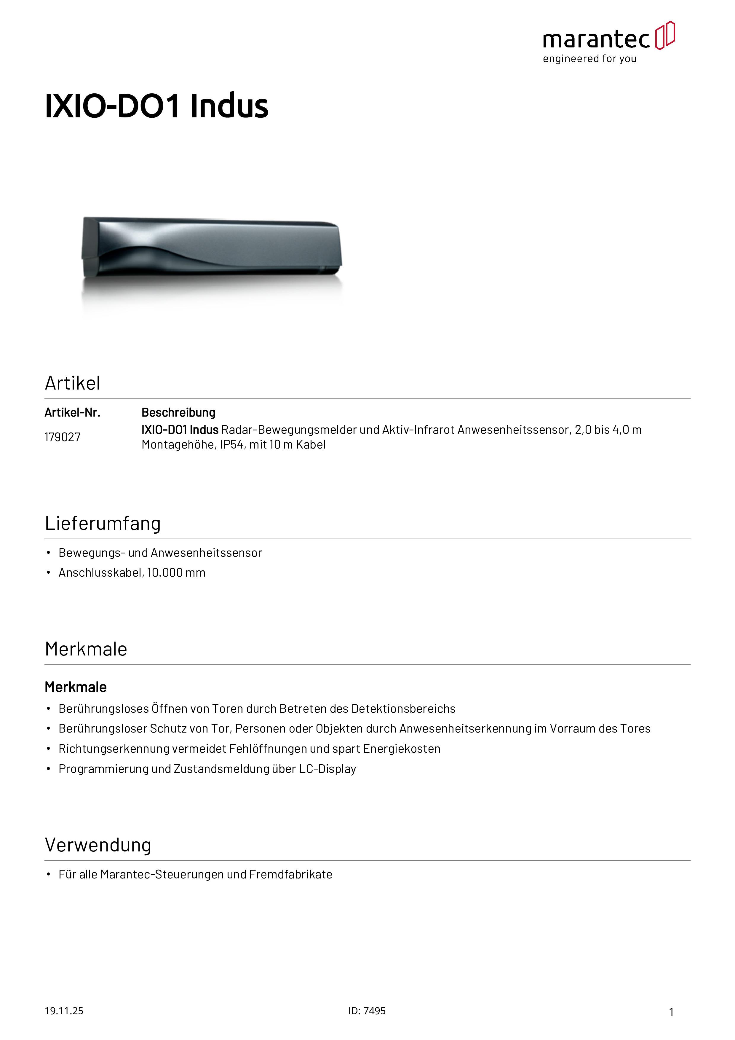 - Berührungsloser Schutz von Tor, Personen oder Objekten durch Anwesenheitserkennung im Vorraum des Tores