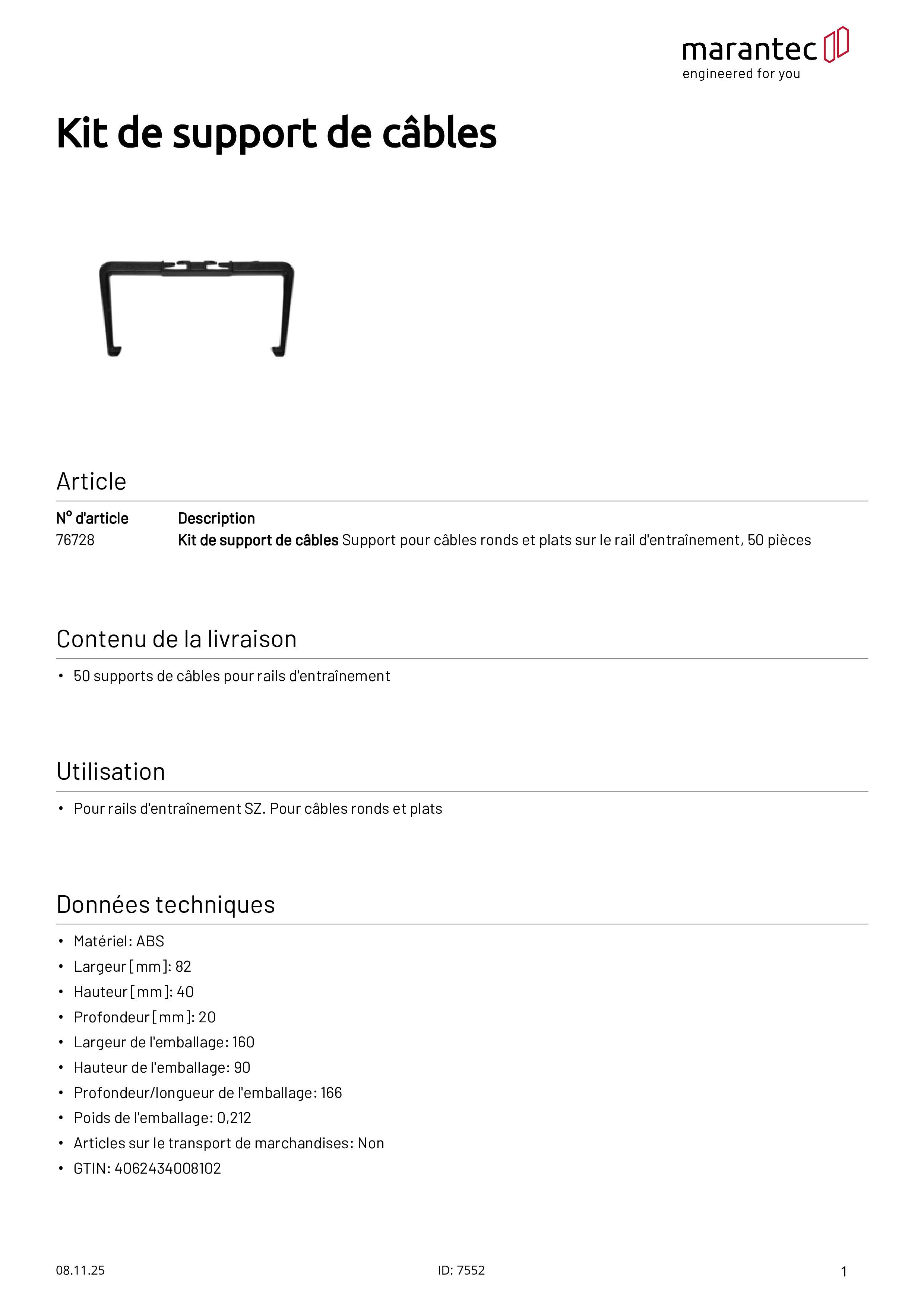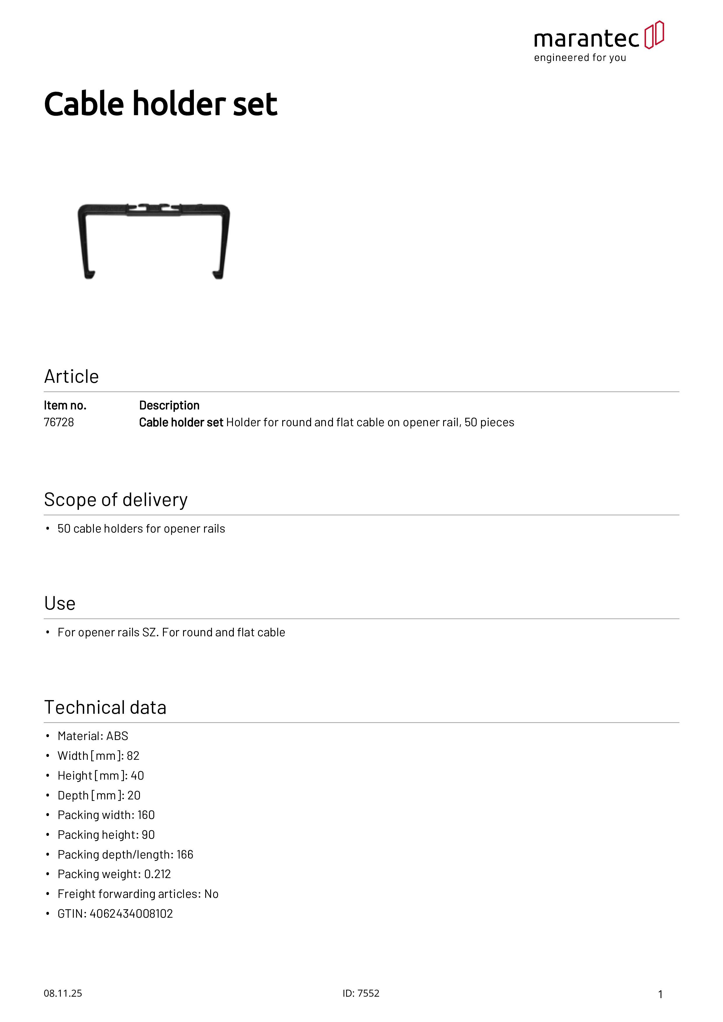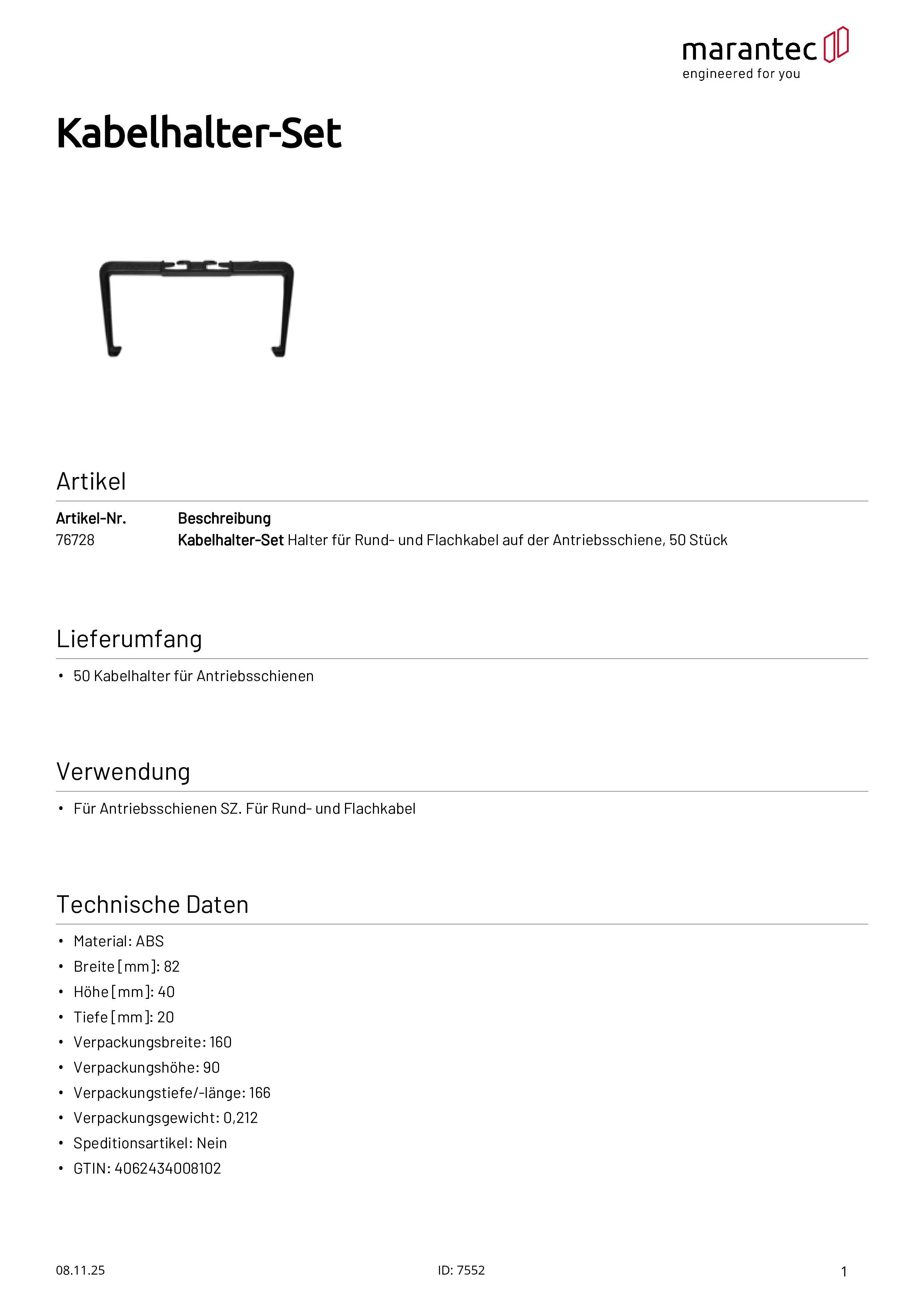 Kabelhalter für Rund- und Flachkabel auf der Antriebsschiene, 50er-Set
