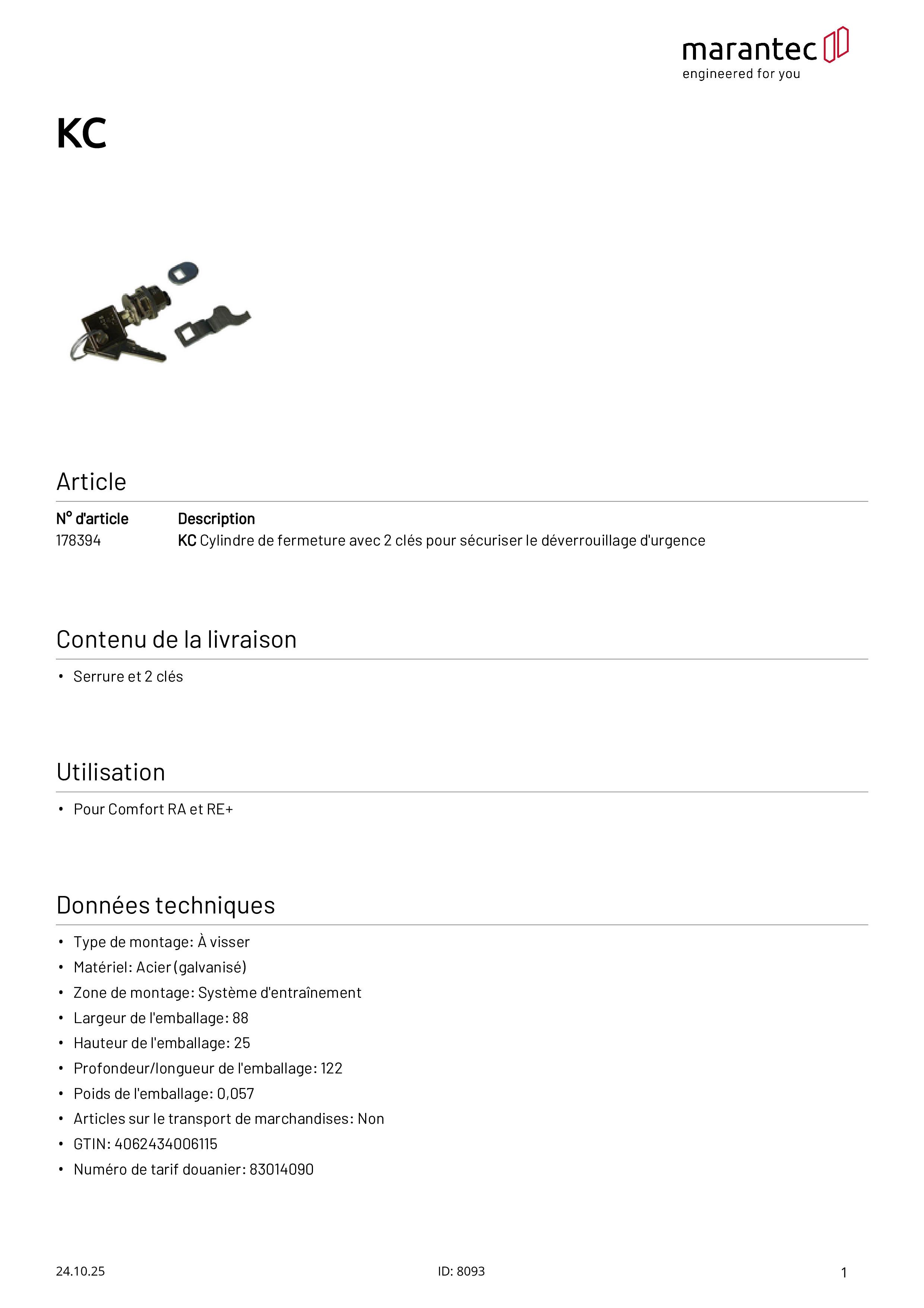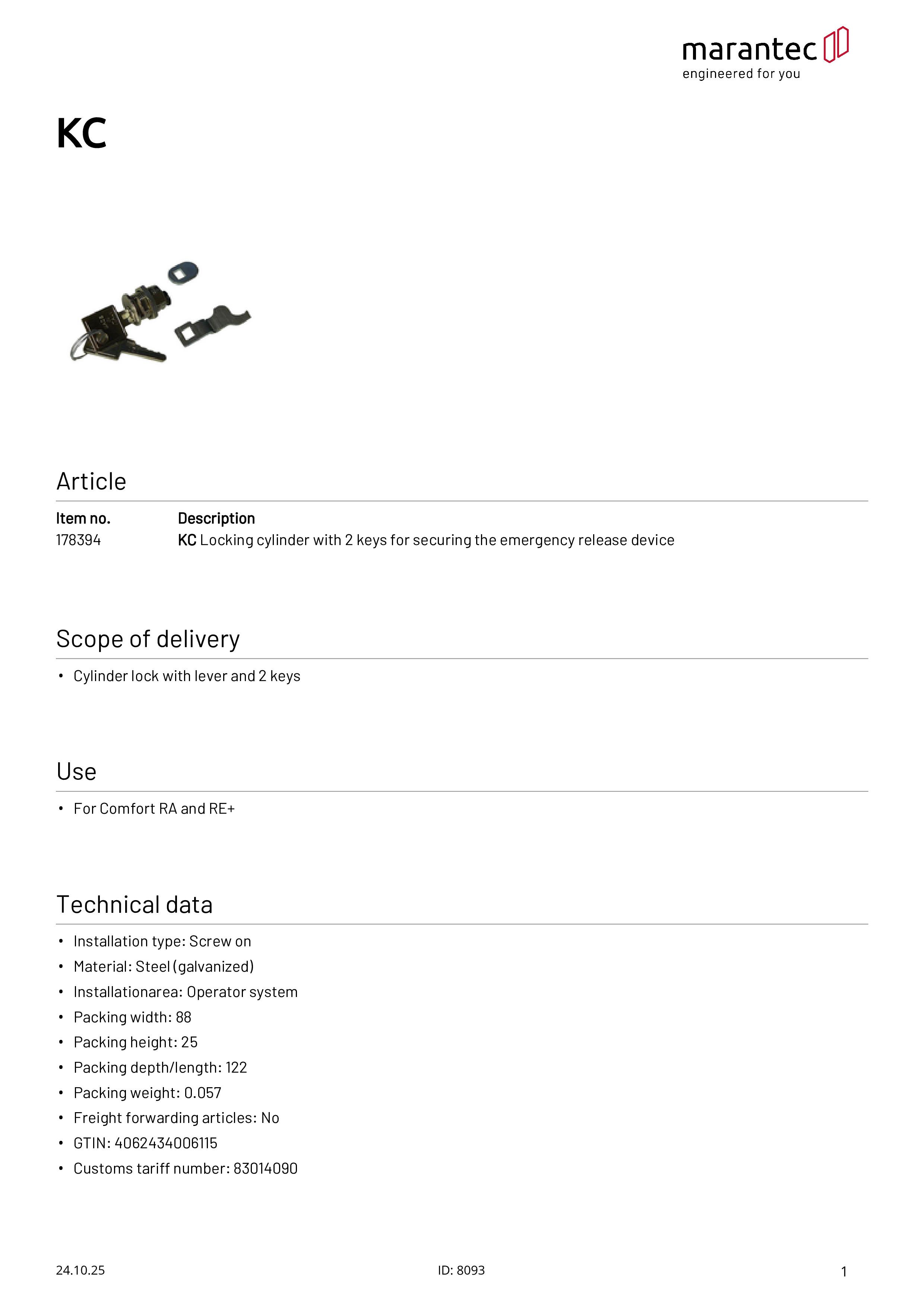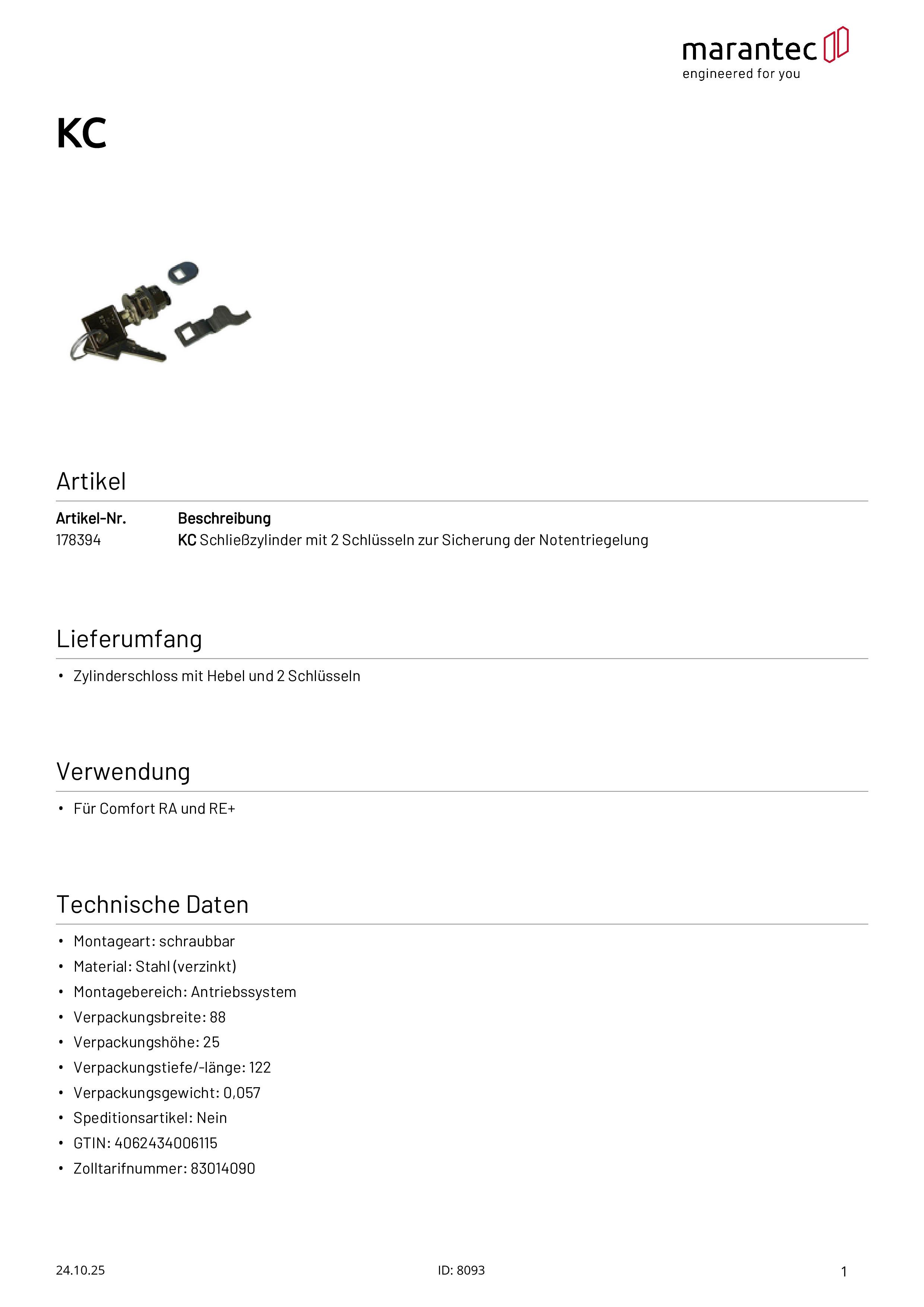 KC Entriegelungskit zur Sicherung der Notentriegelung für Comfort RA