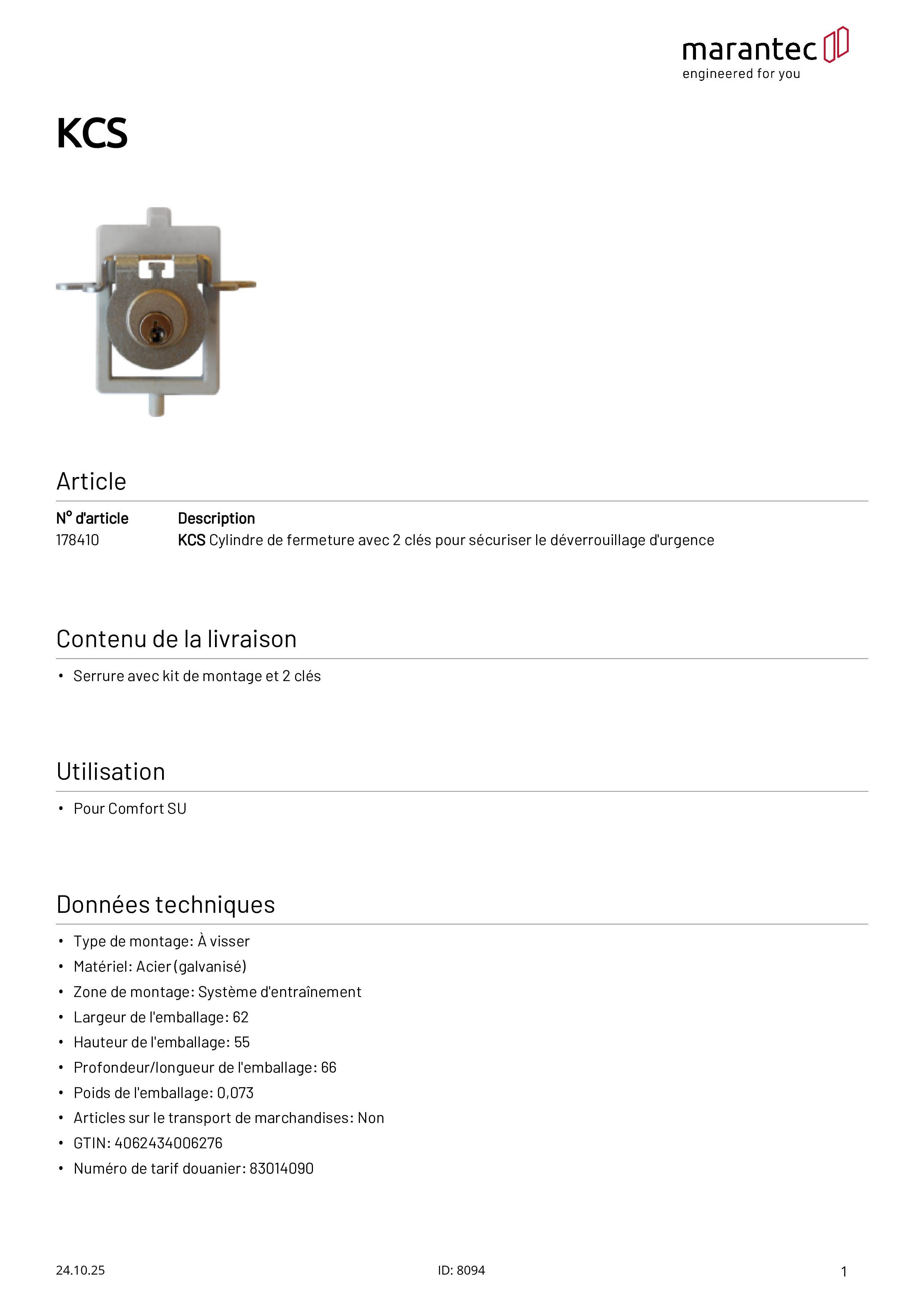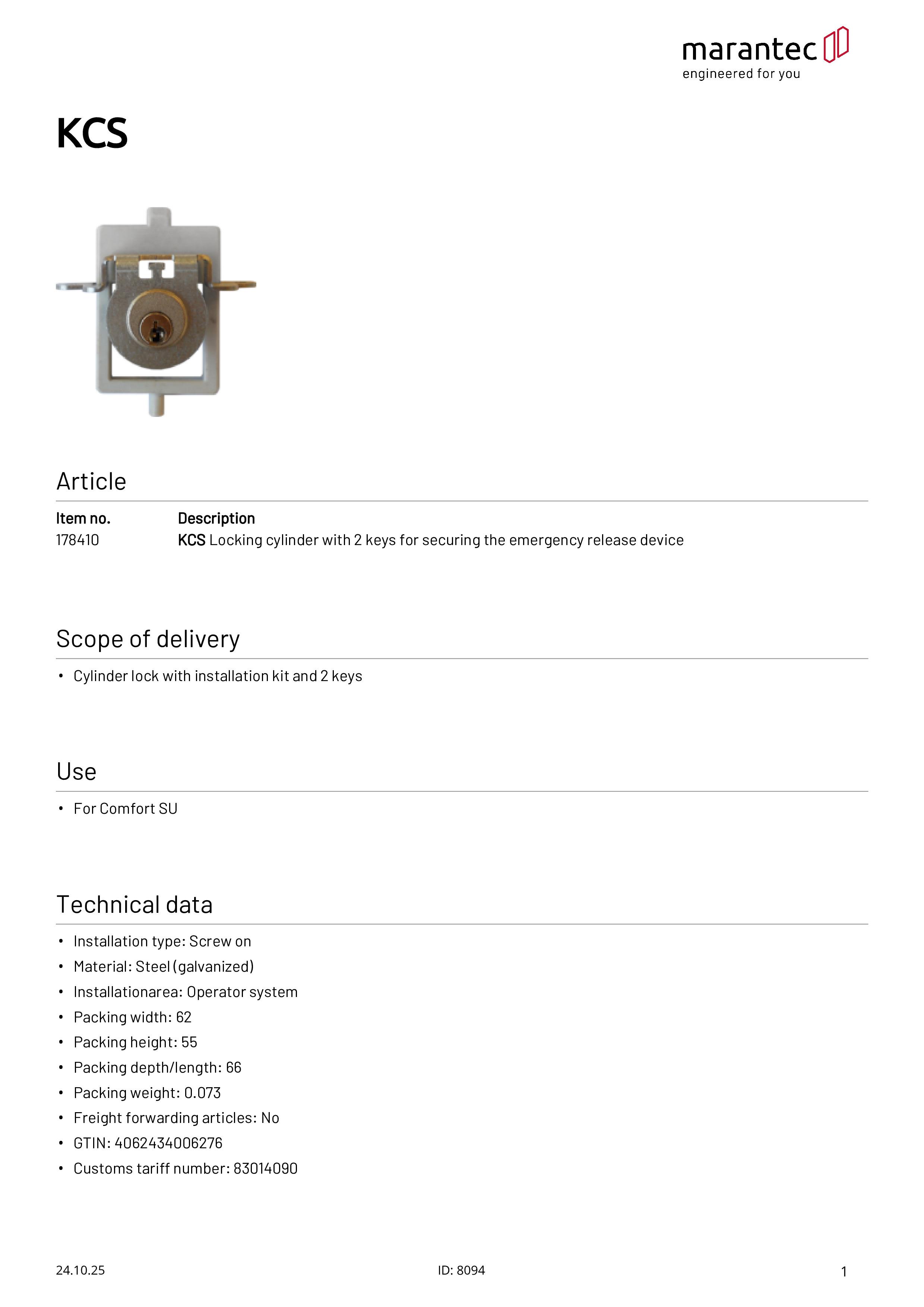 KCS Entriegelungskit zur Sicherung der Notentriegelung für Comfort SU