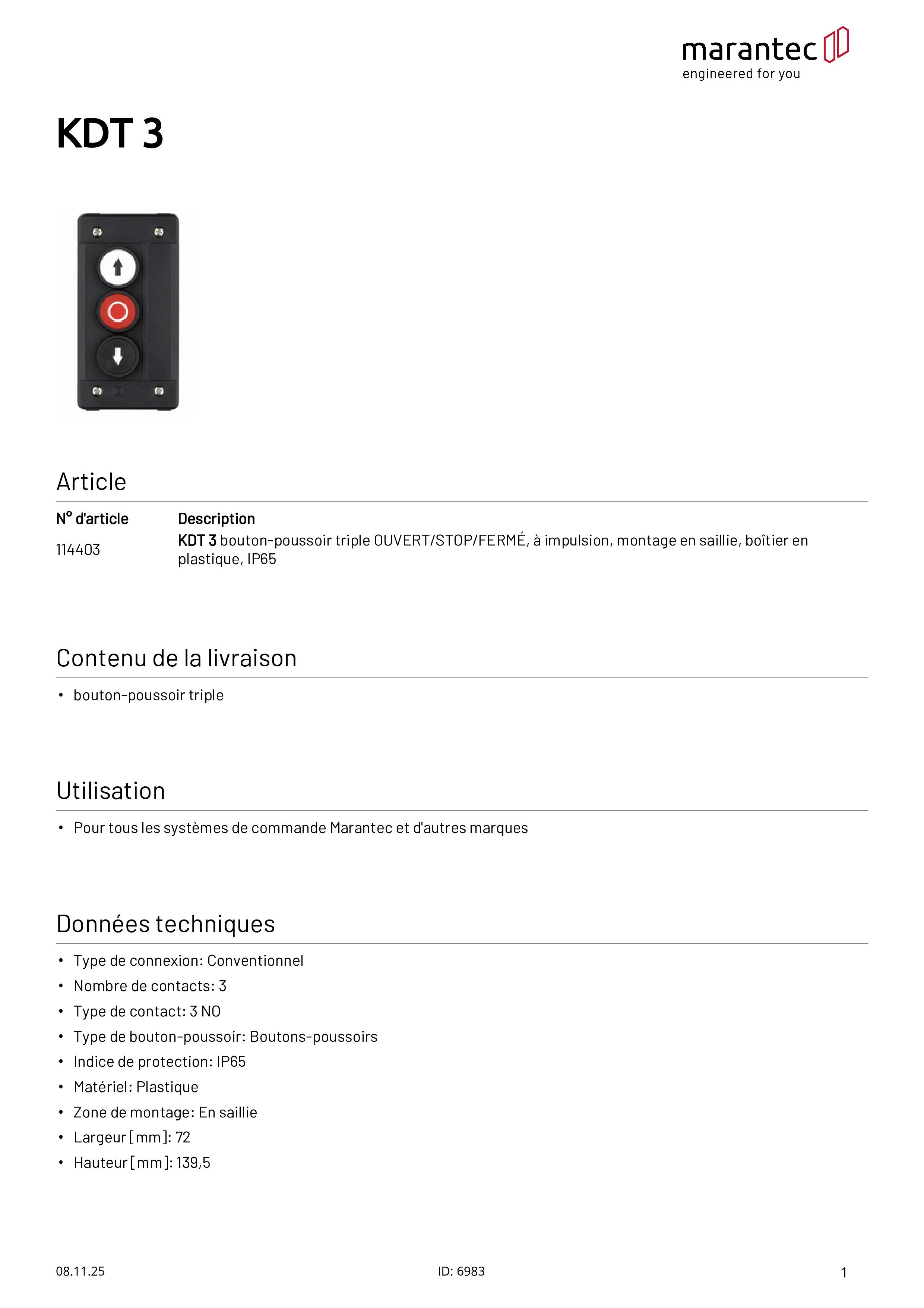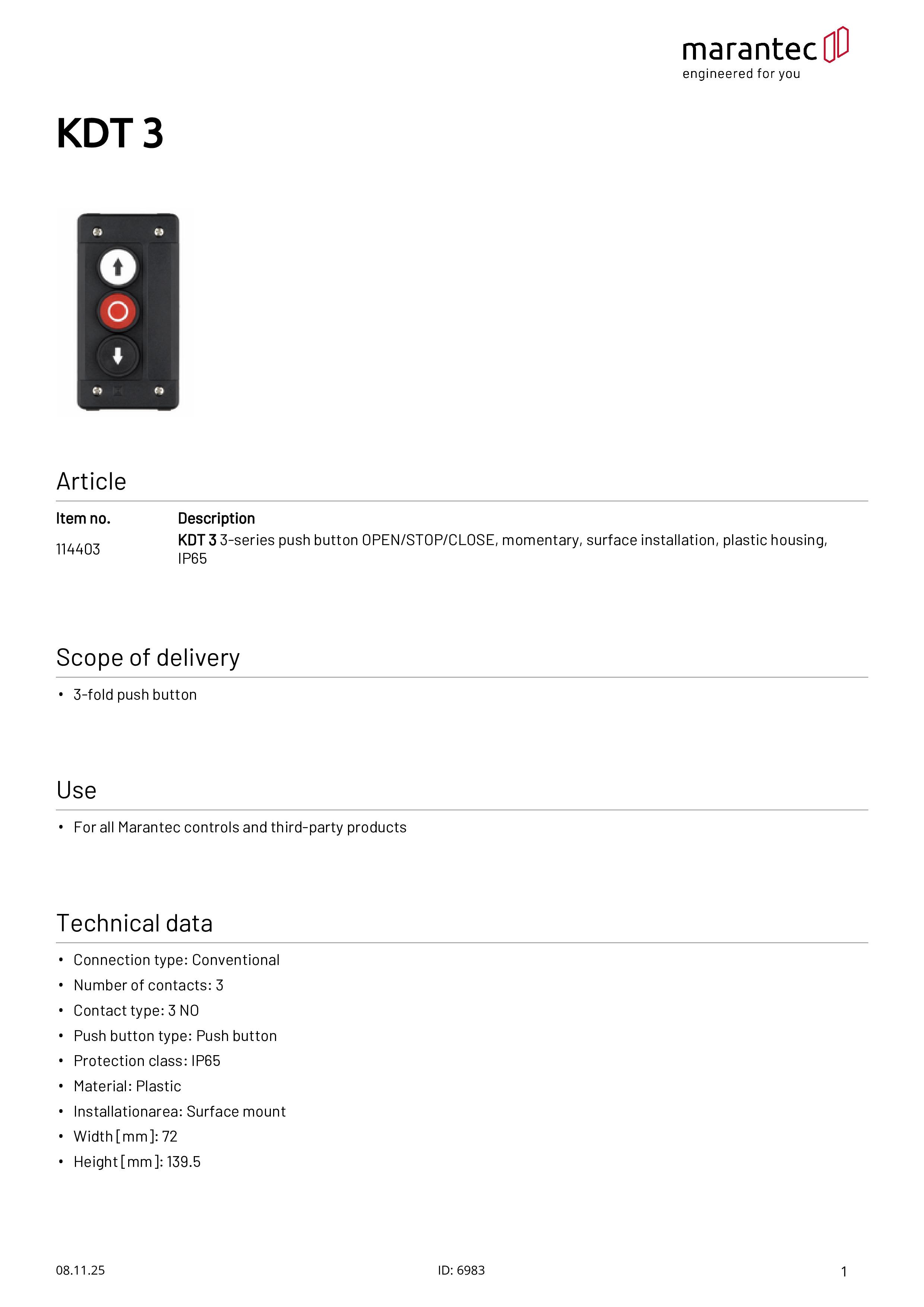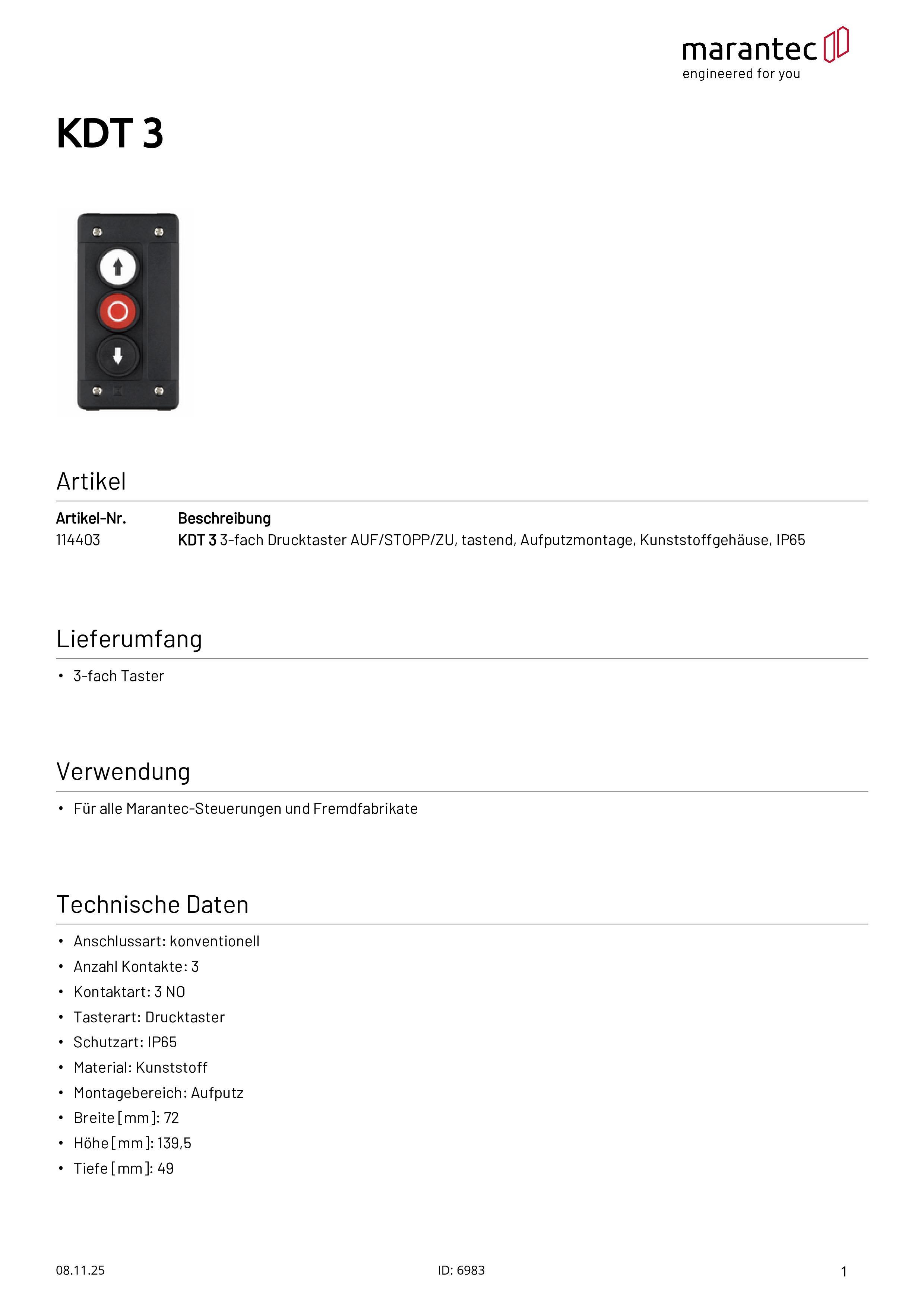 KDT 3 3-fach Drucktaster AUF/STOPP/ZU Aufputz Kunststoffgehäuse IP65