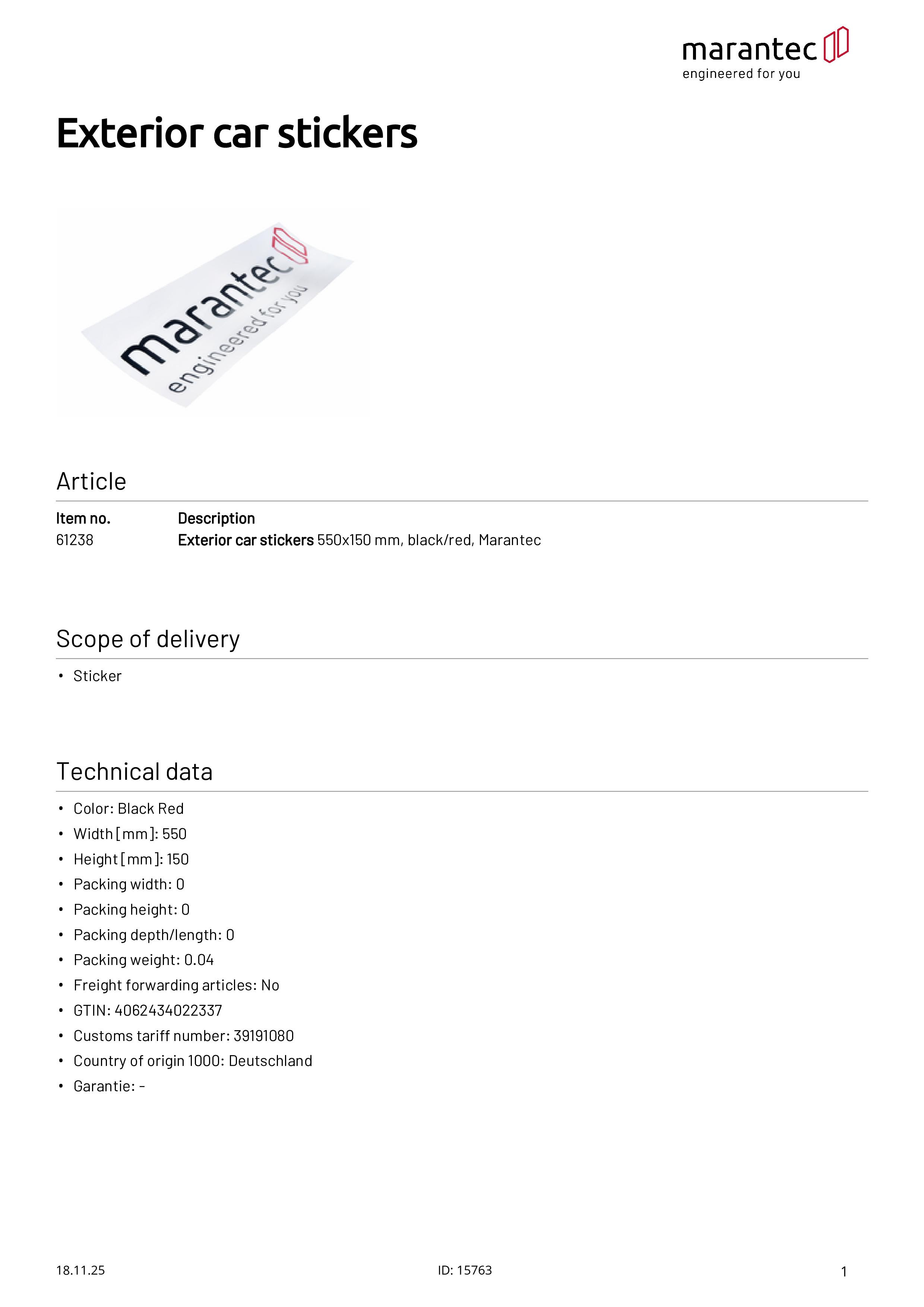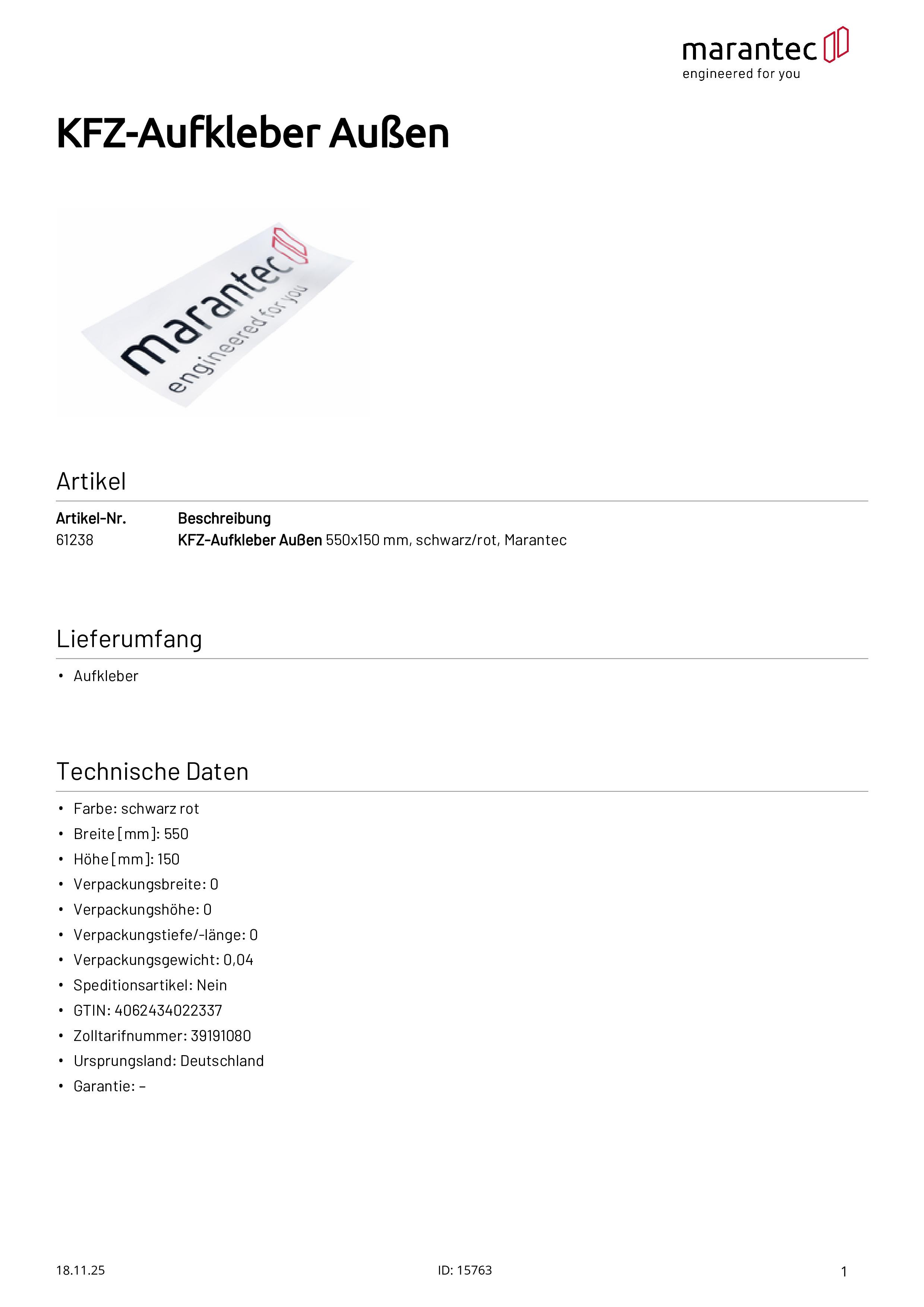 KFZ-Aufkleber Marantec 550x150 mm außen schwarz/rot