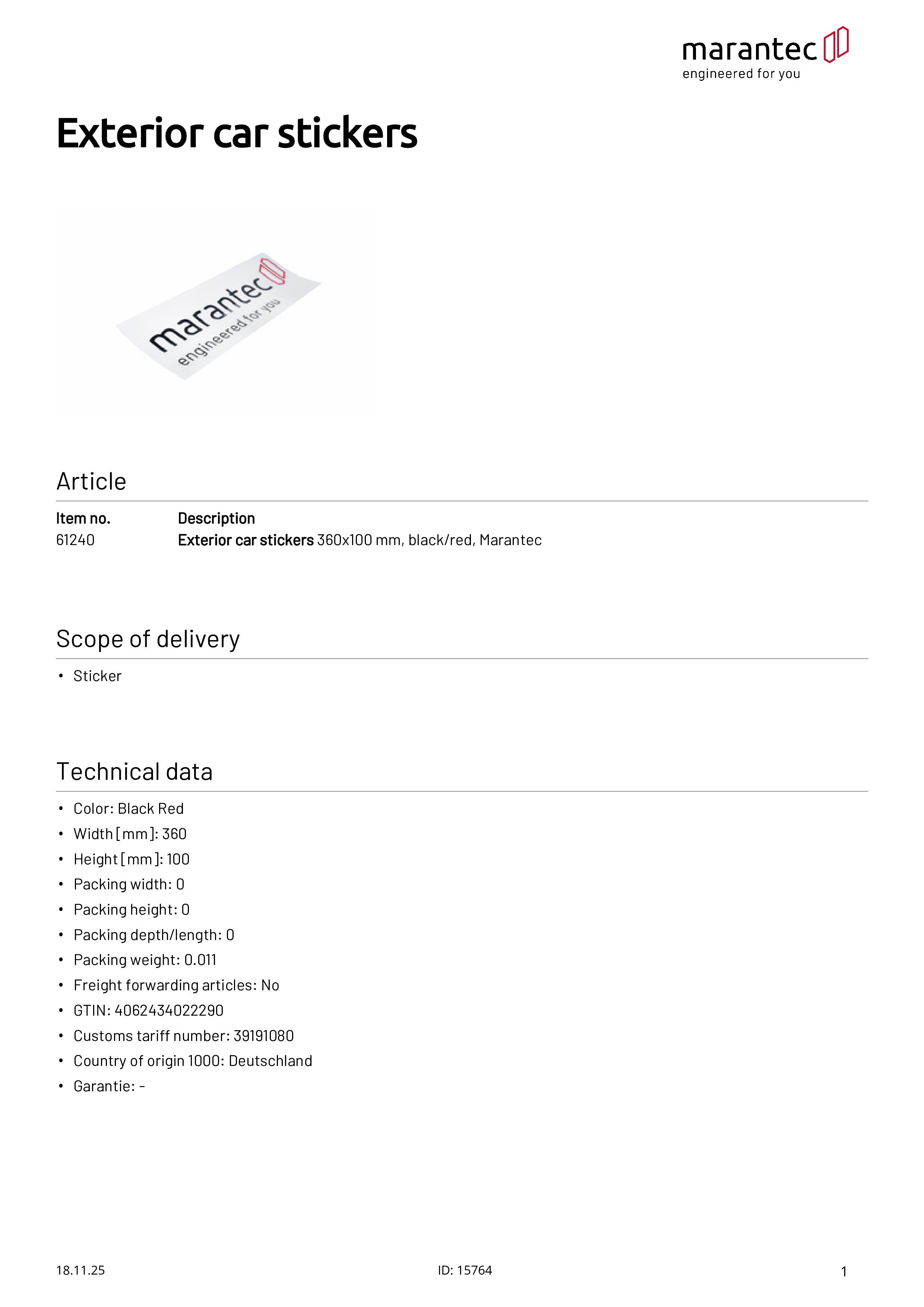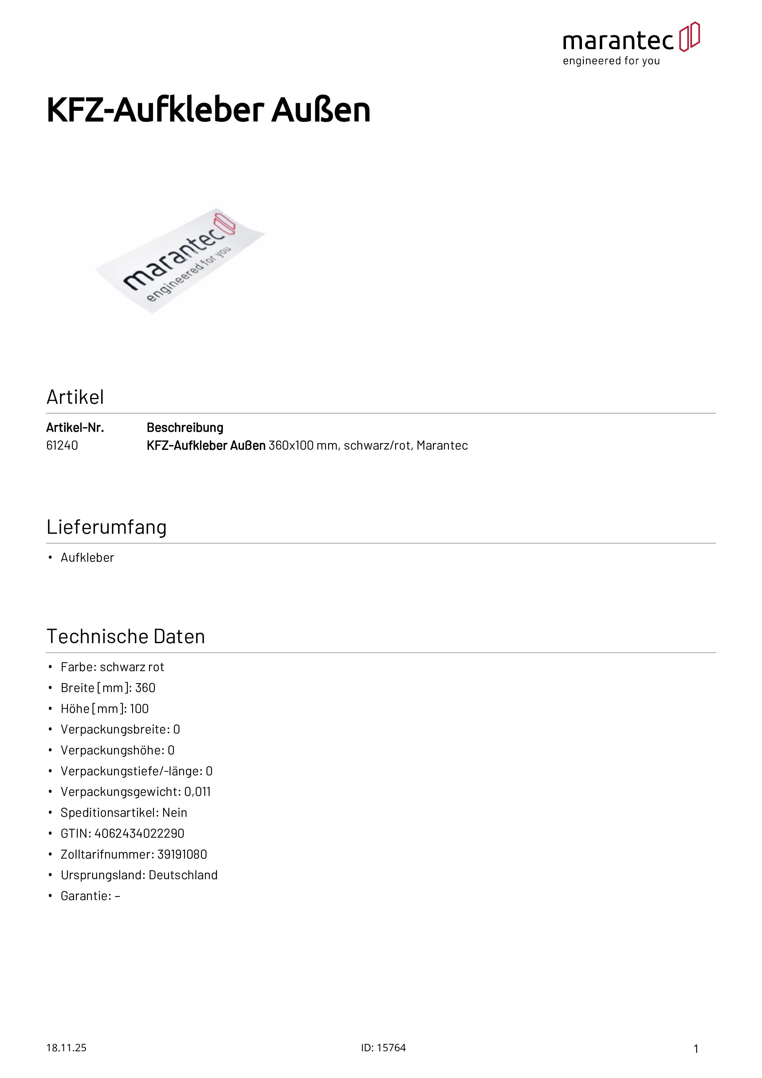 KFZ-Aufkleber Marantec 360x100 mm außen schwarz/rot