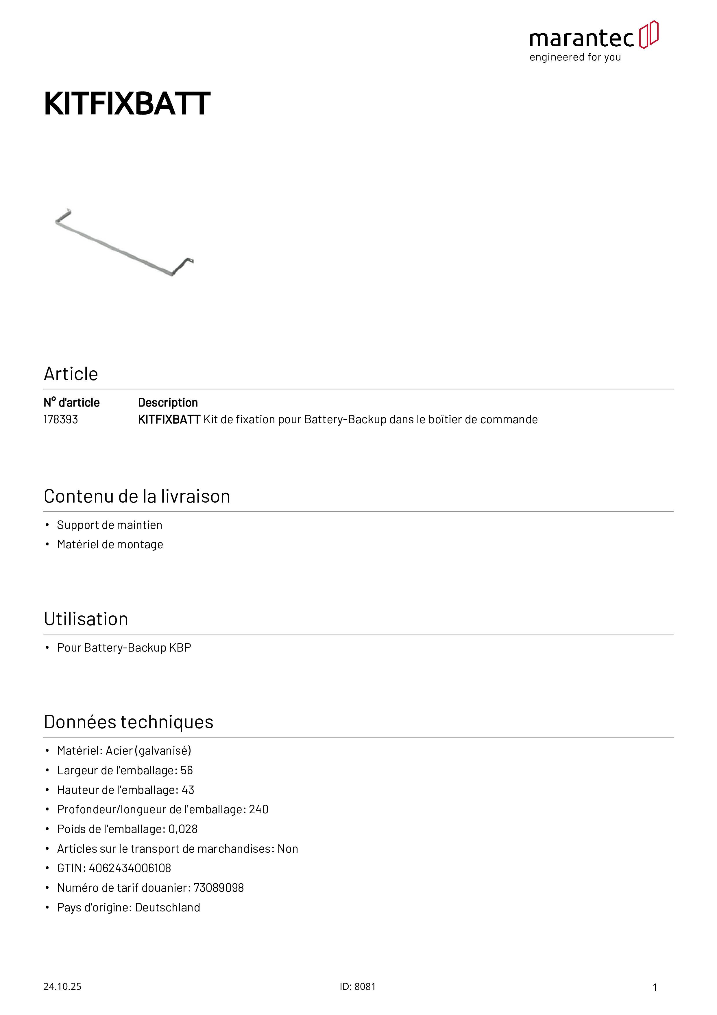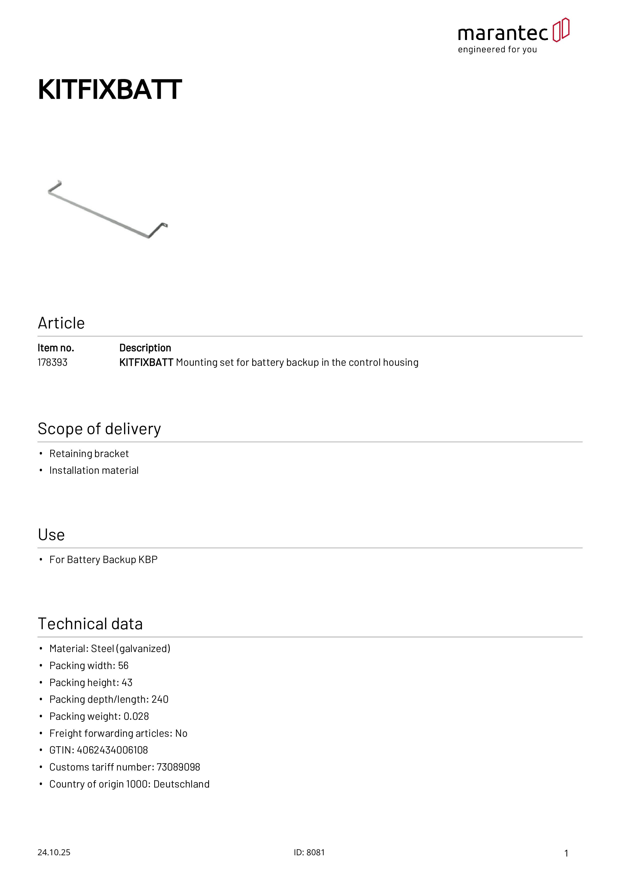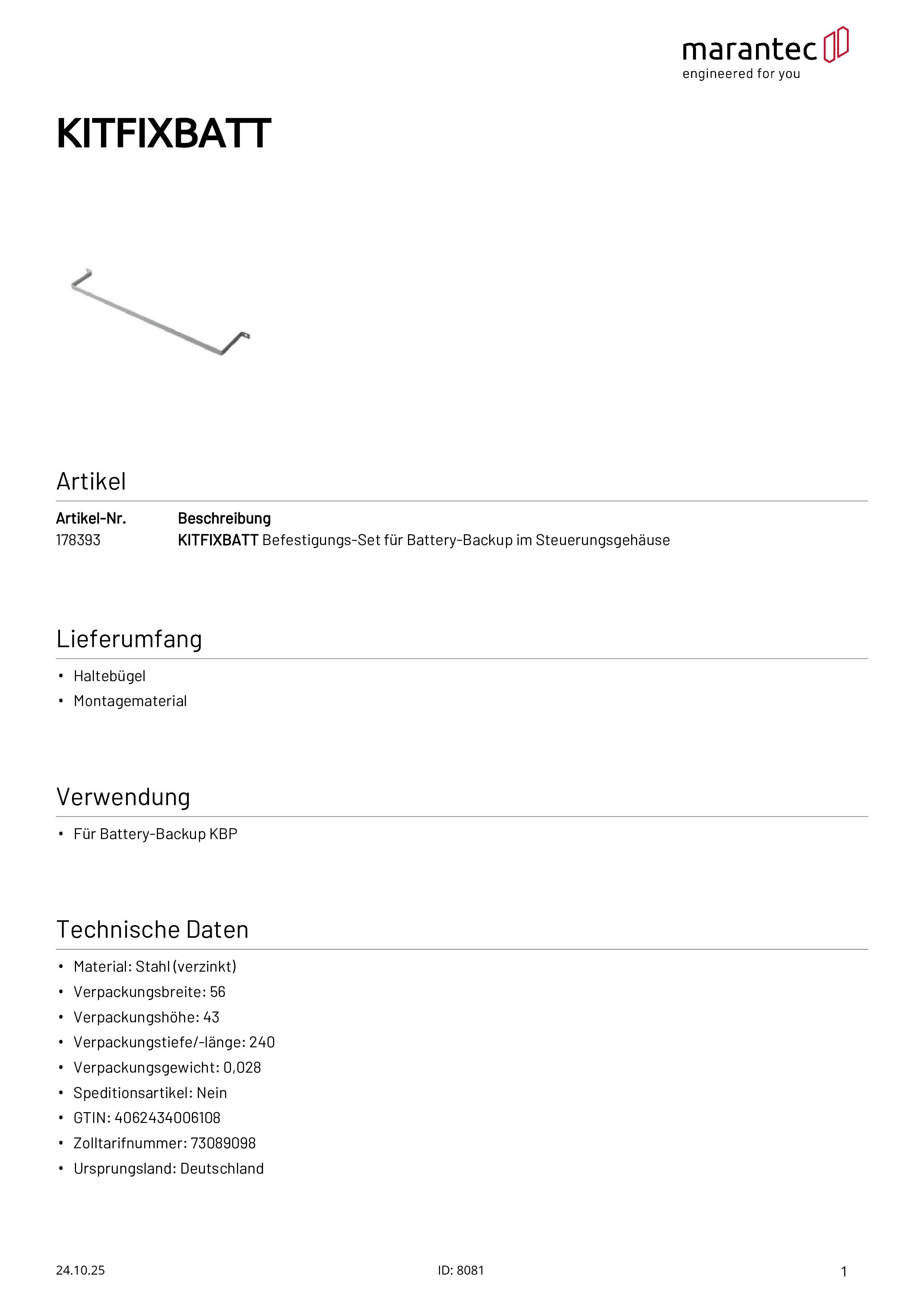 KITFIXBATT Befestigungs-Set für KBP im Steuerungsgehäuse CBX