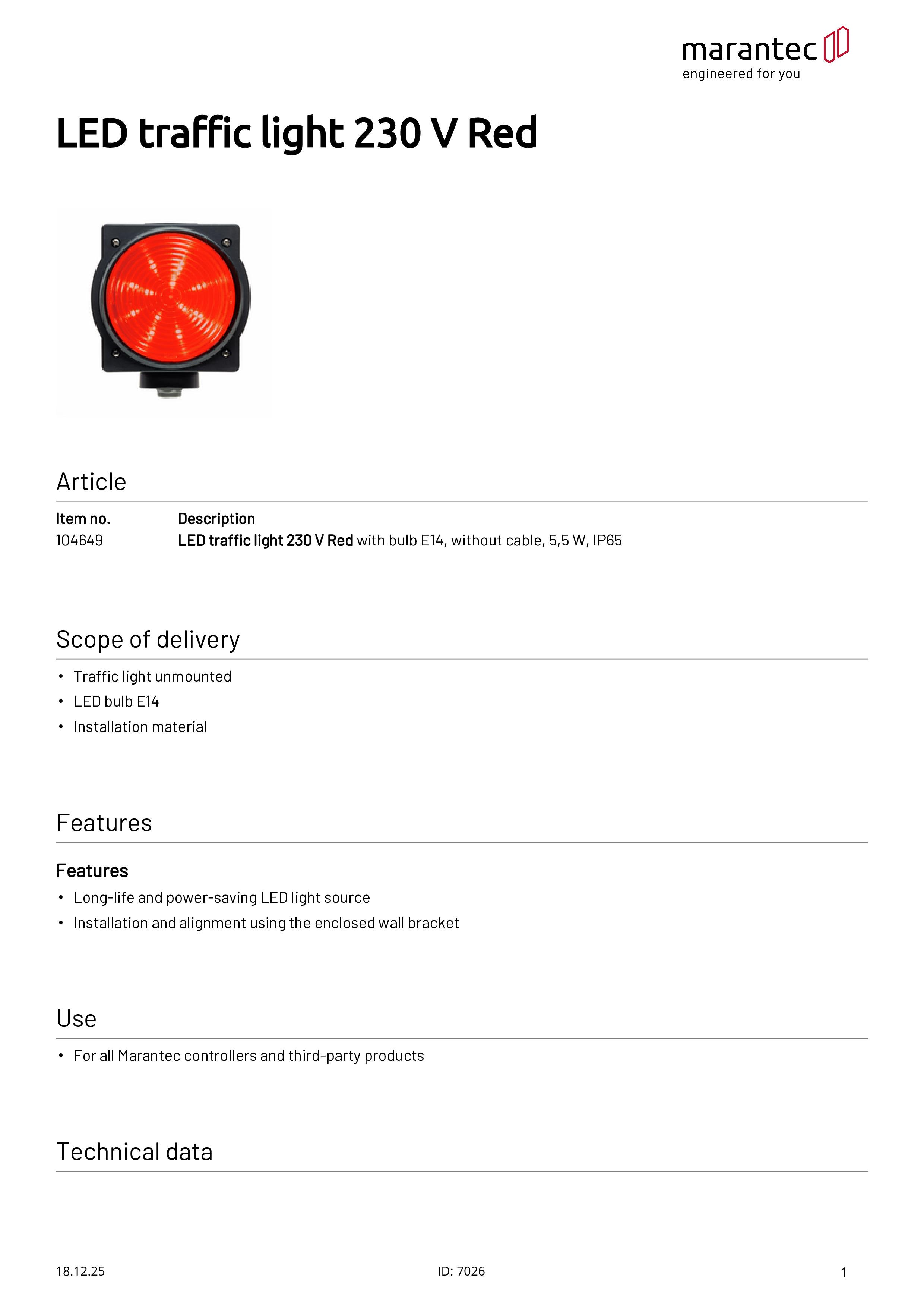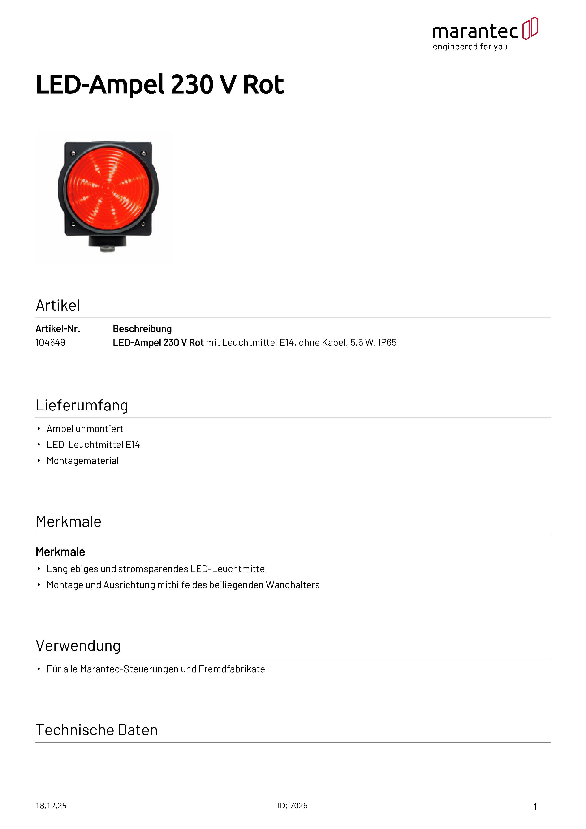 LED-Ampel 230 V Rot mit Leuchtmittel E14, ohne Kabel, 5,5 W, IP65