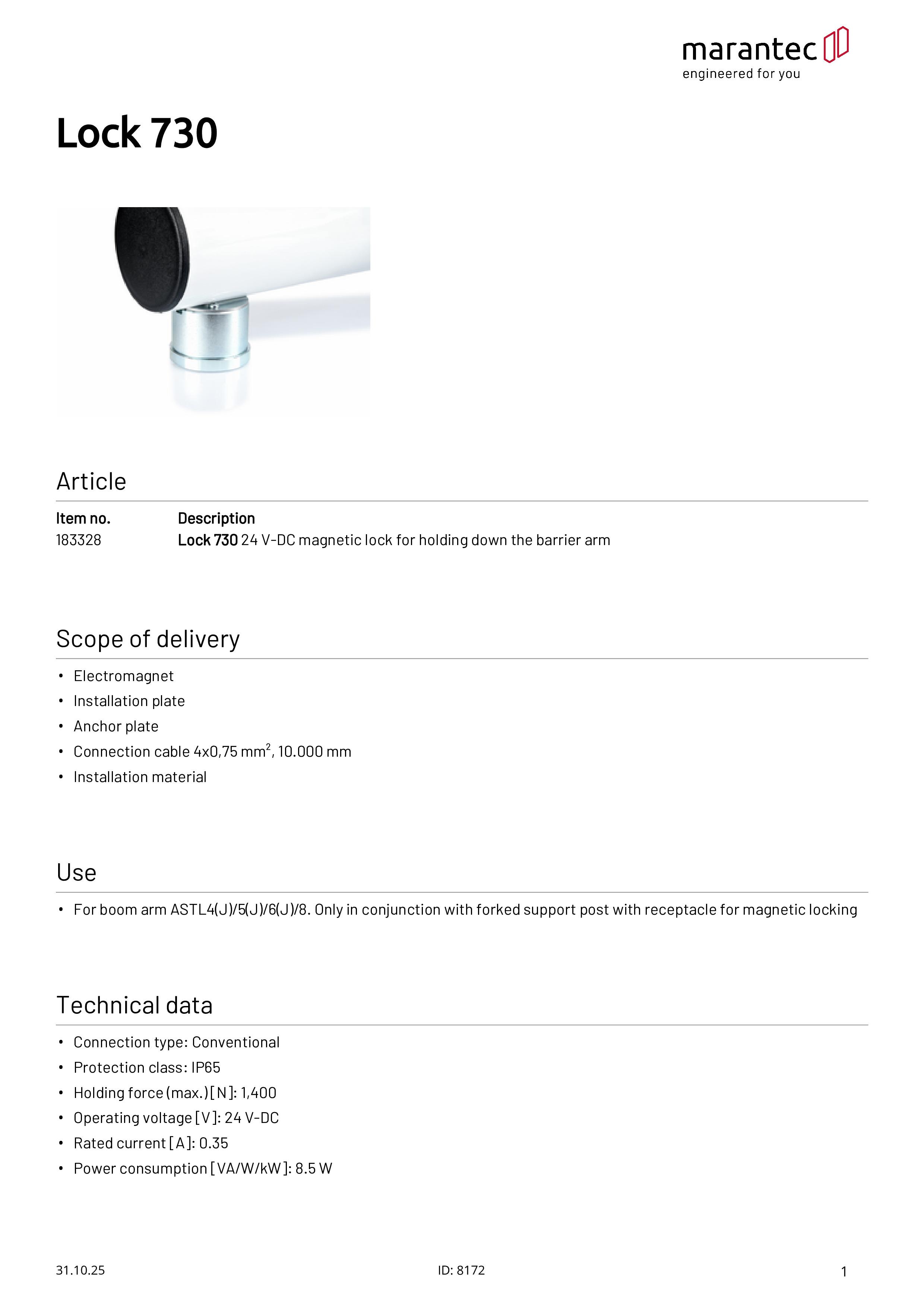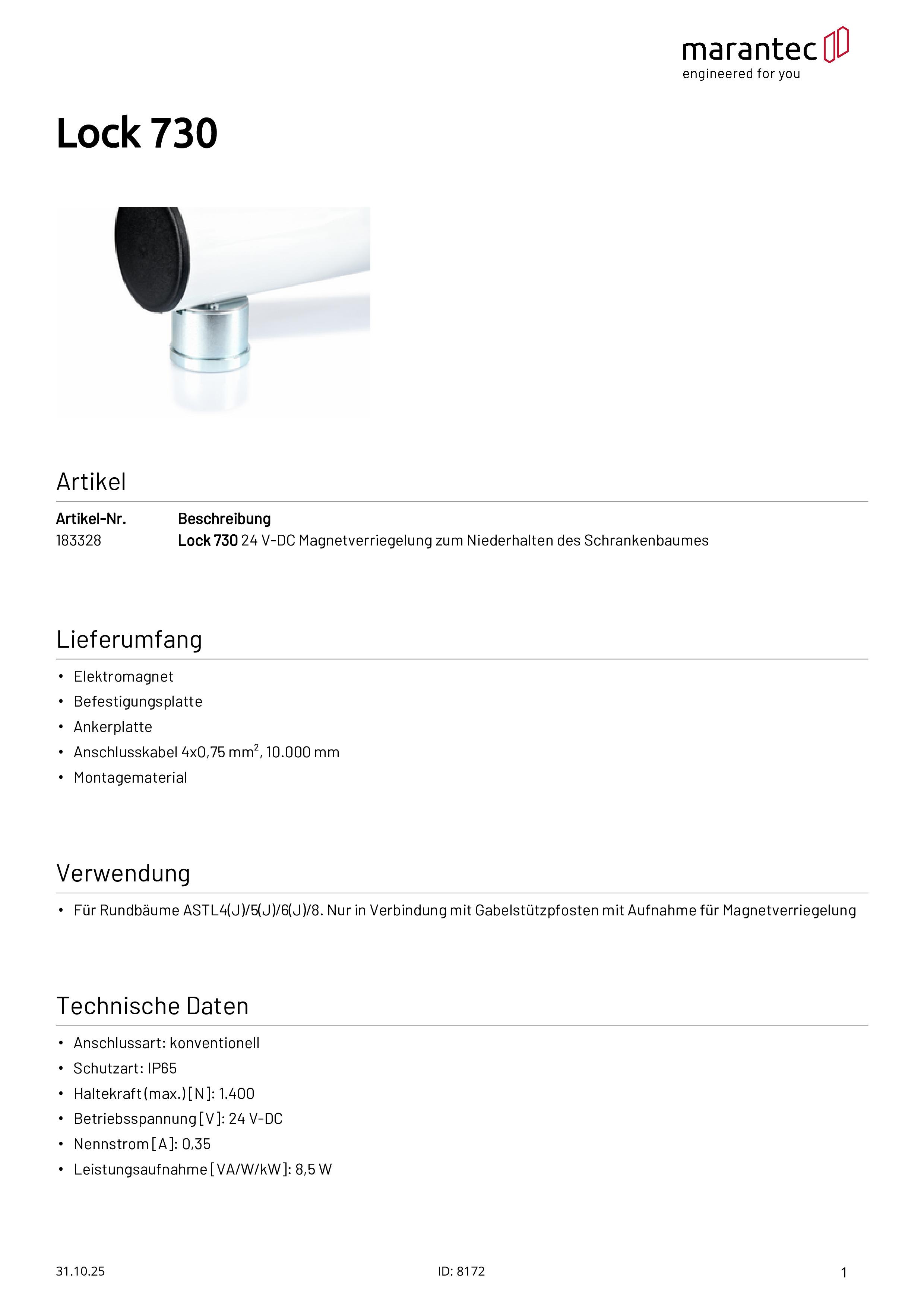 Lock 730 Magnetverriegelung für 90 mm Schrankenbäume
