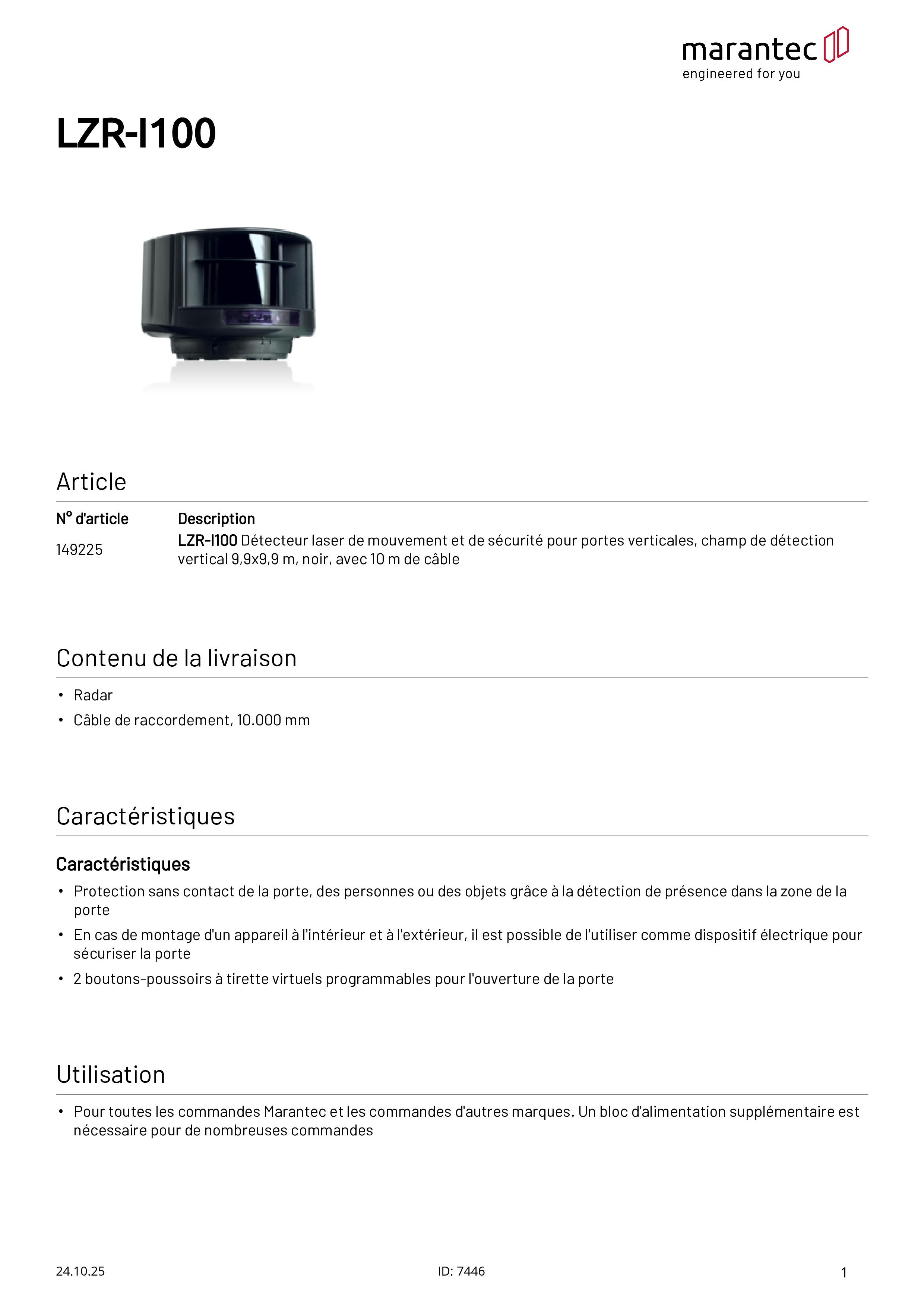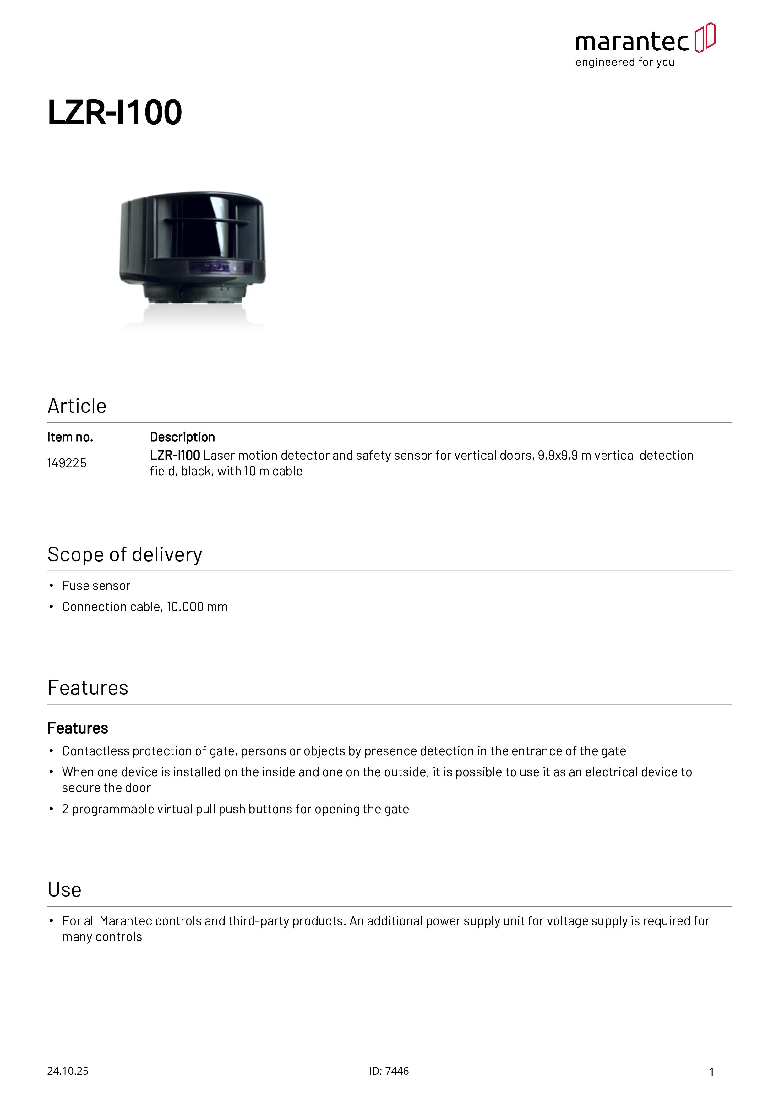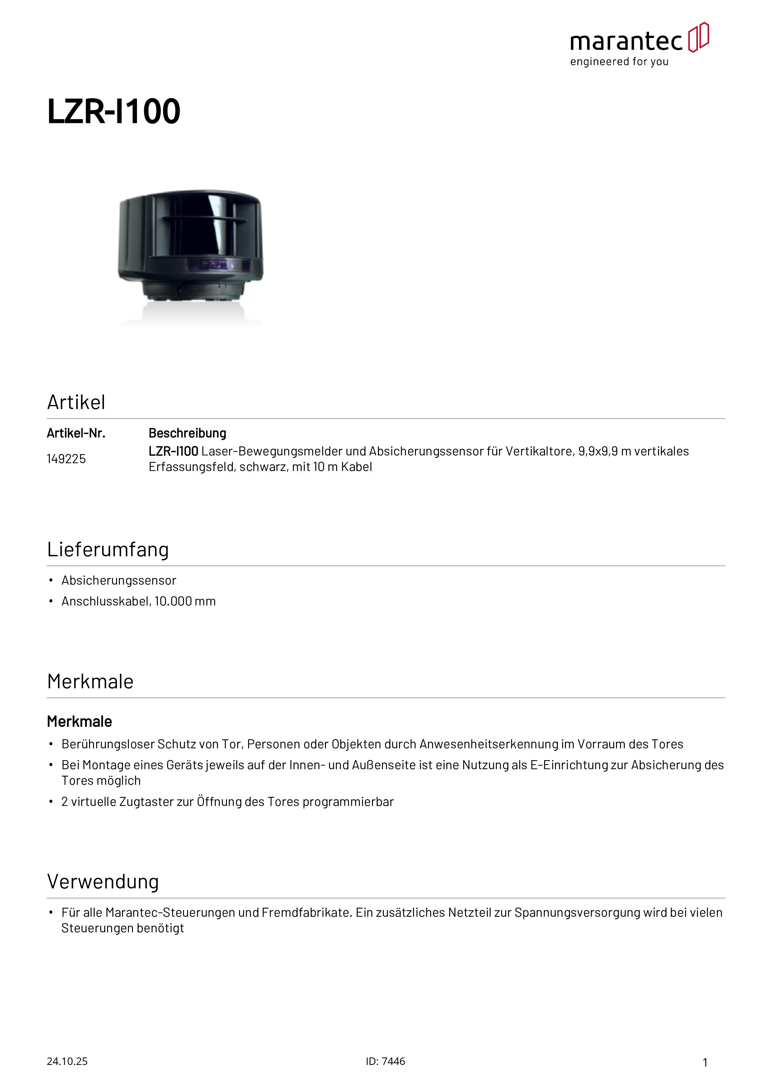 - Berührungsloser Schutz von Tor, Personen oder Objekten durch Anwesenheitserkennung im Vorraum des Tores