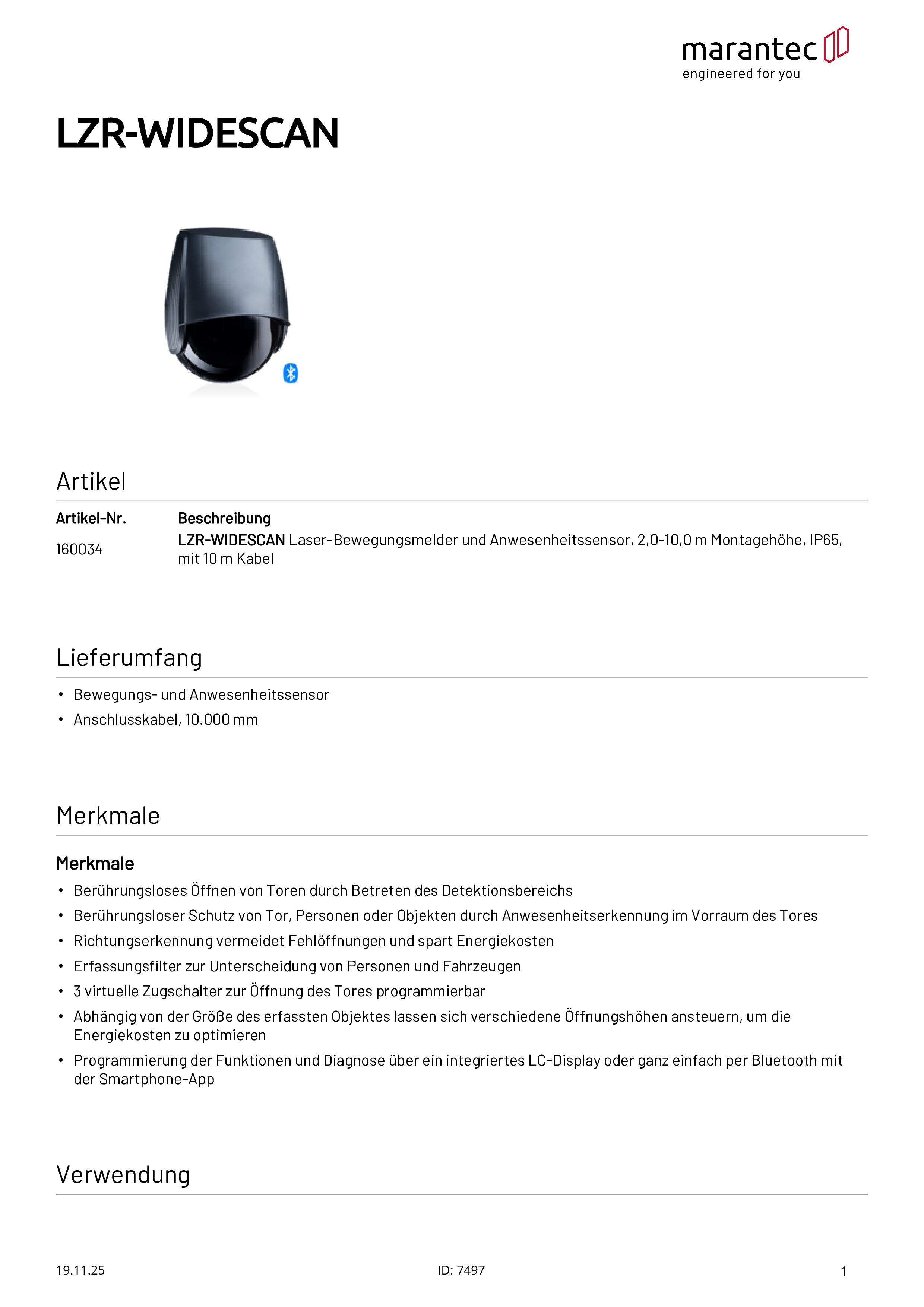 - Berührungsloser Schutz von Tor, Personen oder Objekten durch Anwesenheitserkennung im Vorraum des Tores