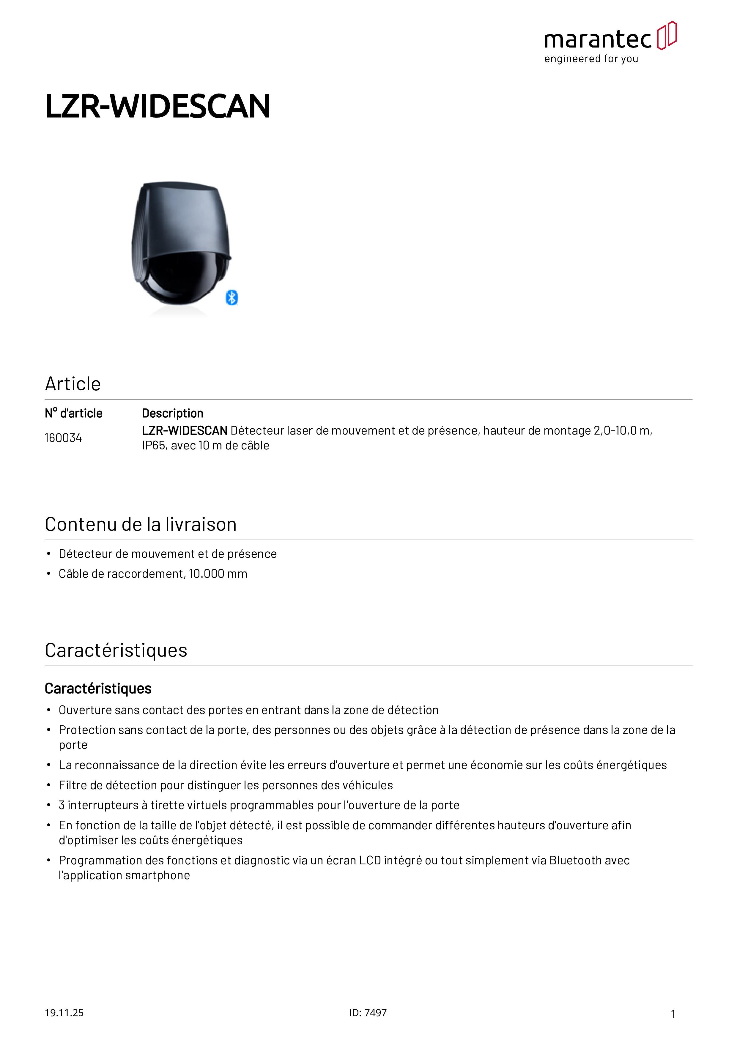 LZR-WIDESCAN Laserscanner für Vertikaltore, 2-10 m Montagehöhe