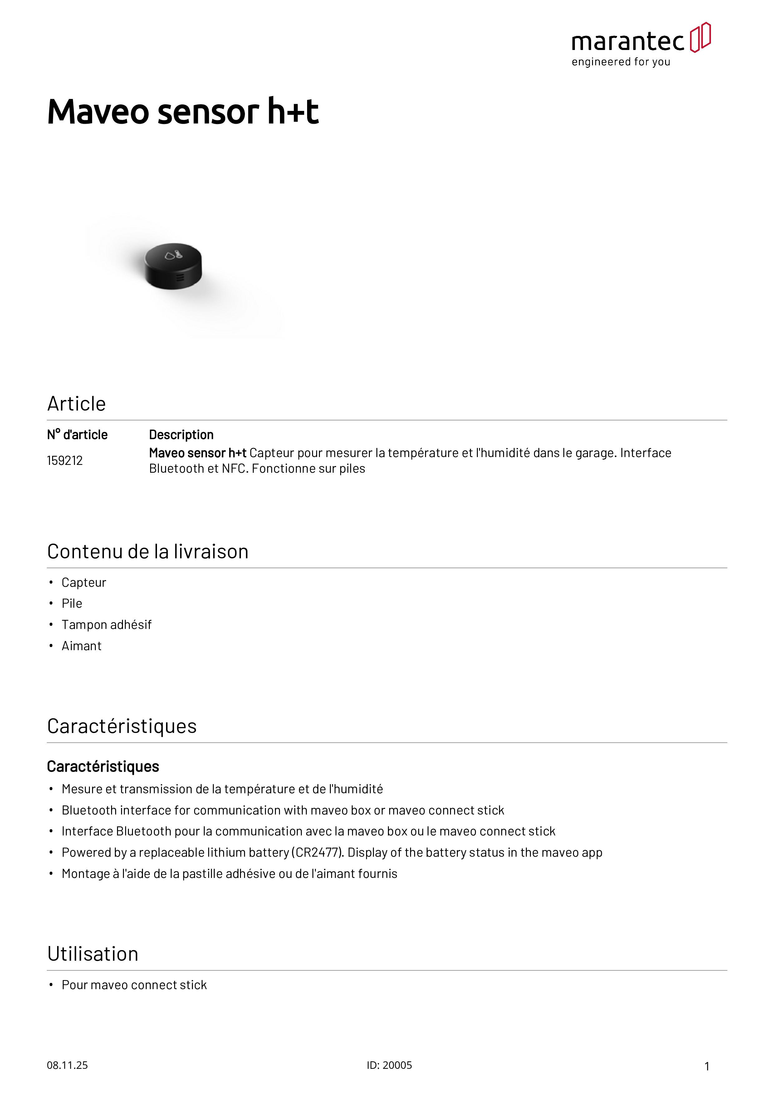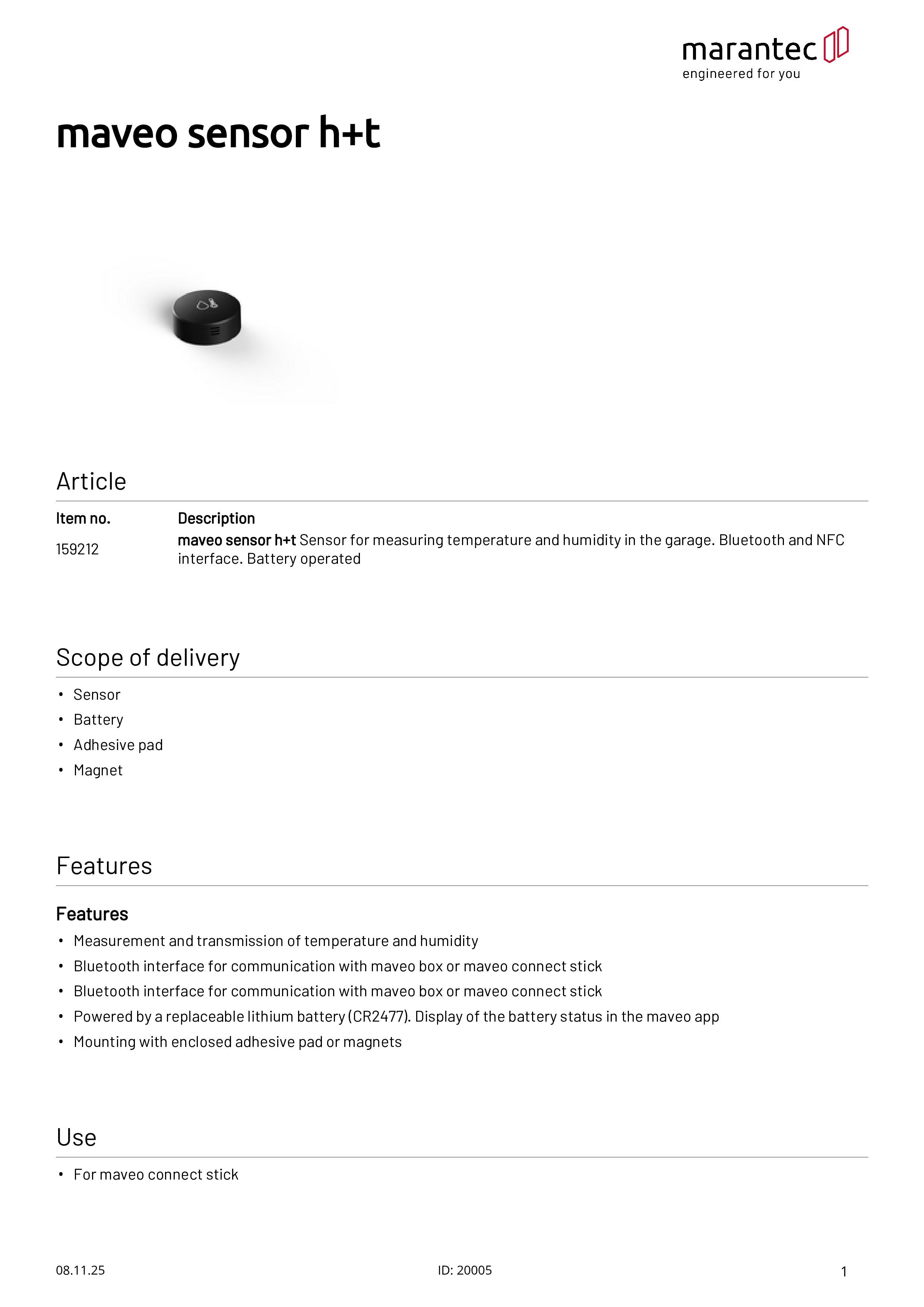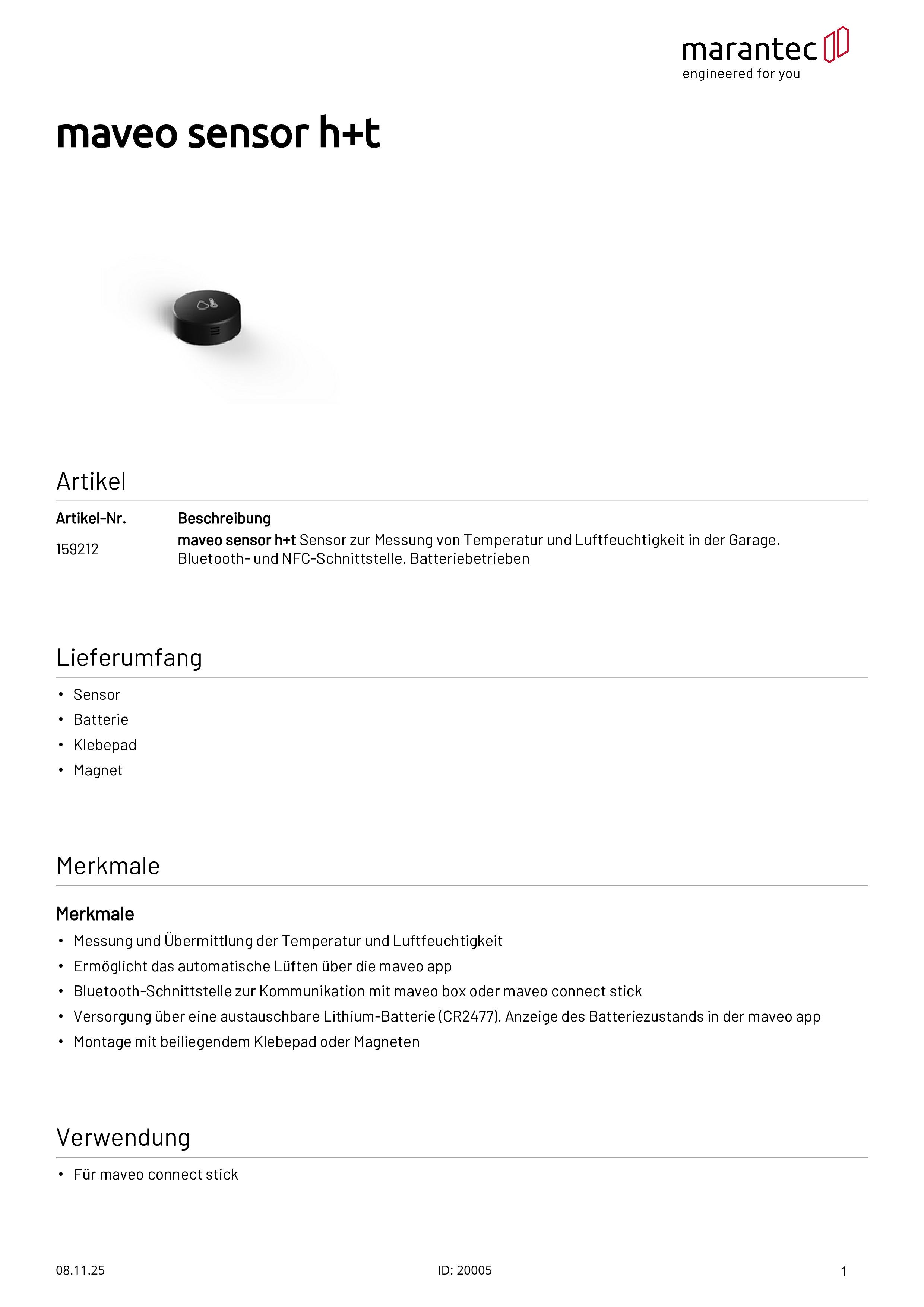 - Versorgung über eine austauschbare Lithium-Batterie (CR2477). Anzeige des Batteriezustands in der maveo app