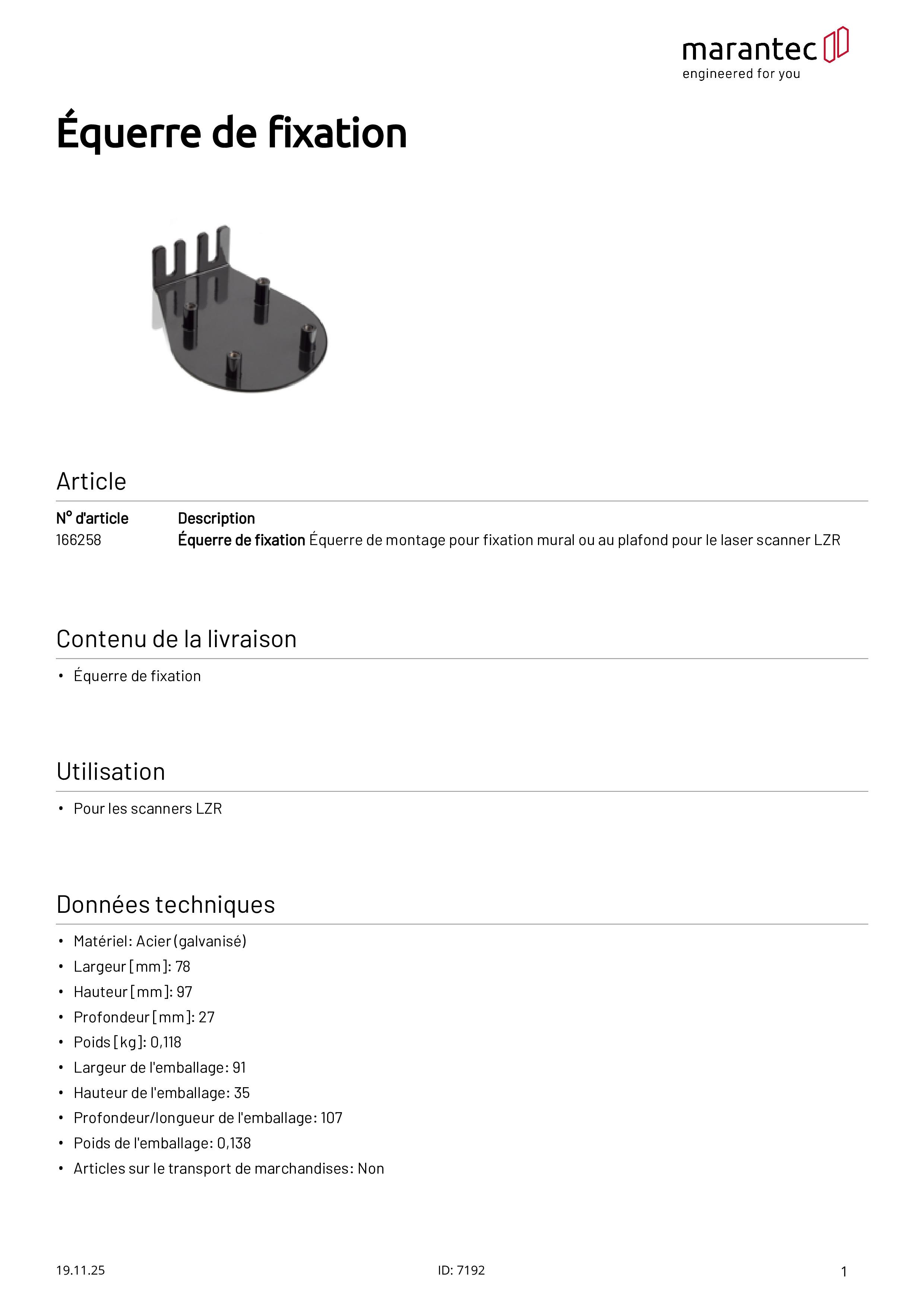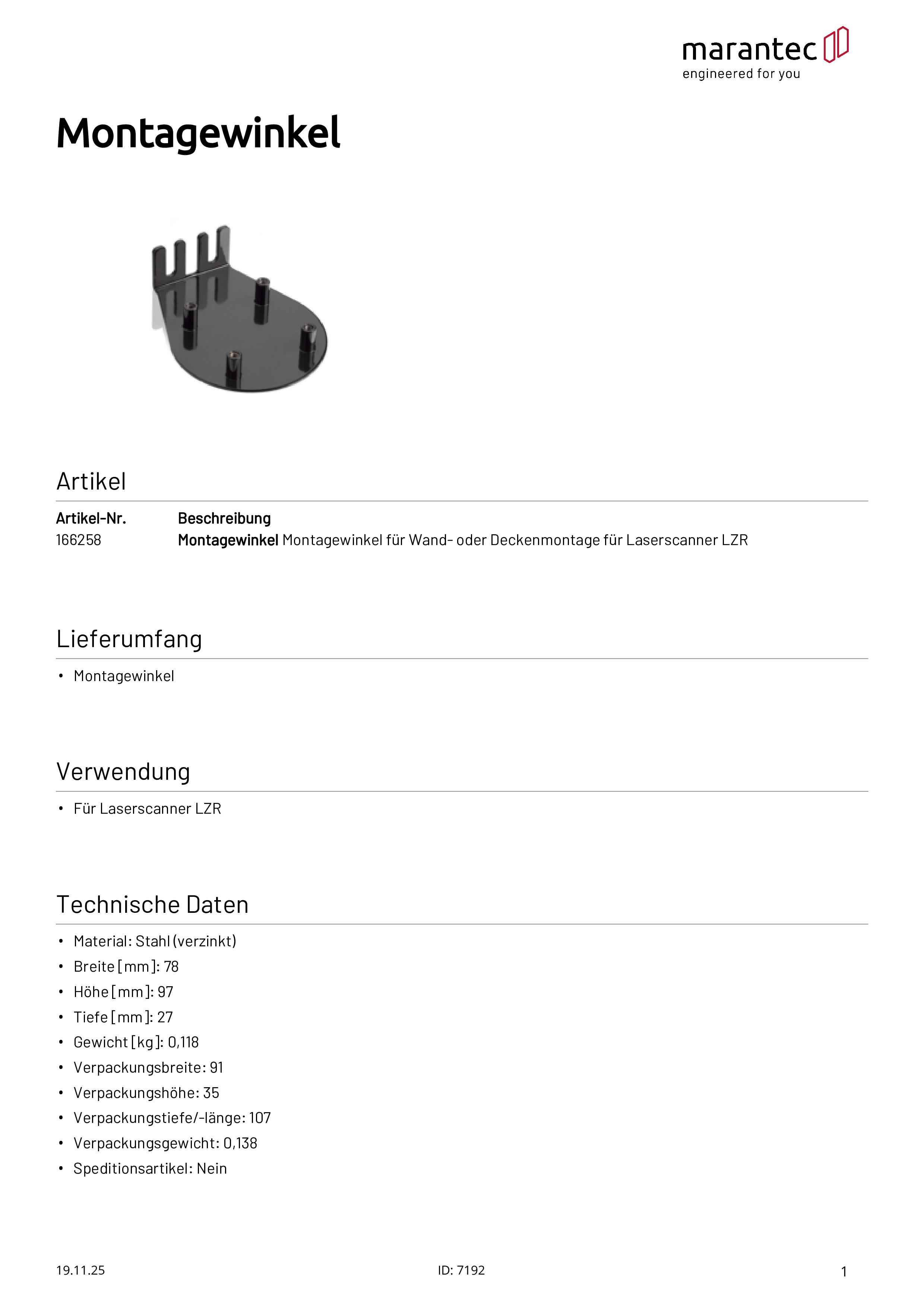 Montagewinkel für Wand- oder Deckenmontage für LZR-I100/-I110/-H100
