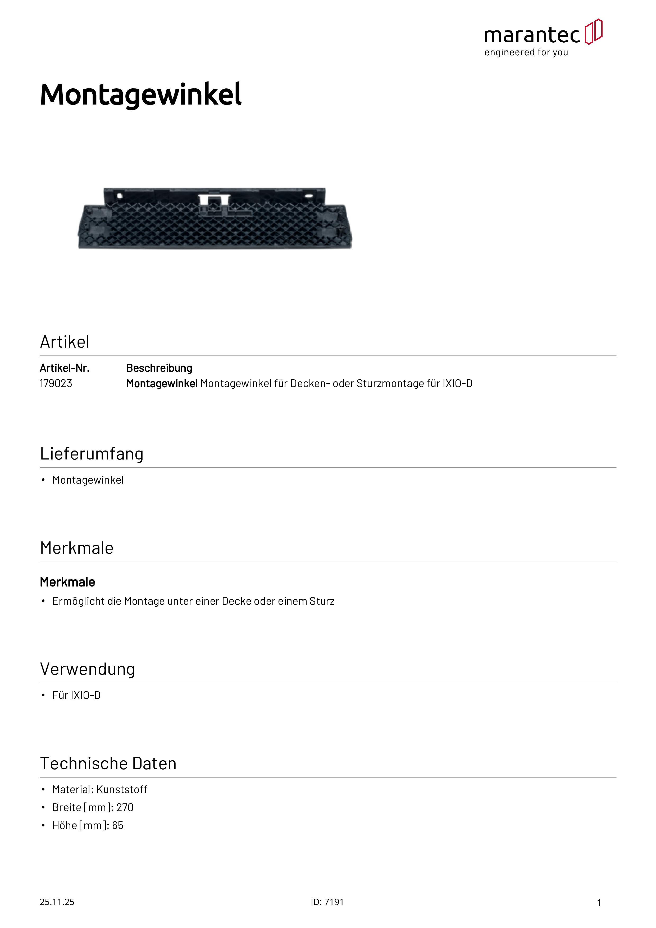 Montagewinkel für Decken- oder Sturzmontage für IXIO-D