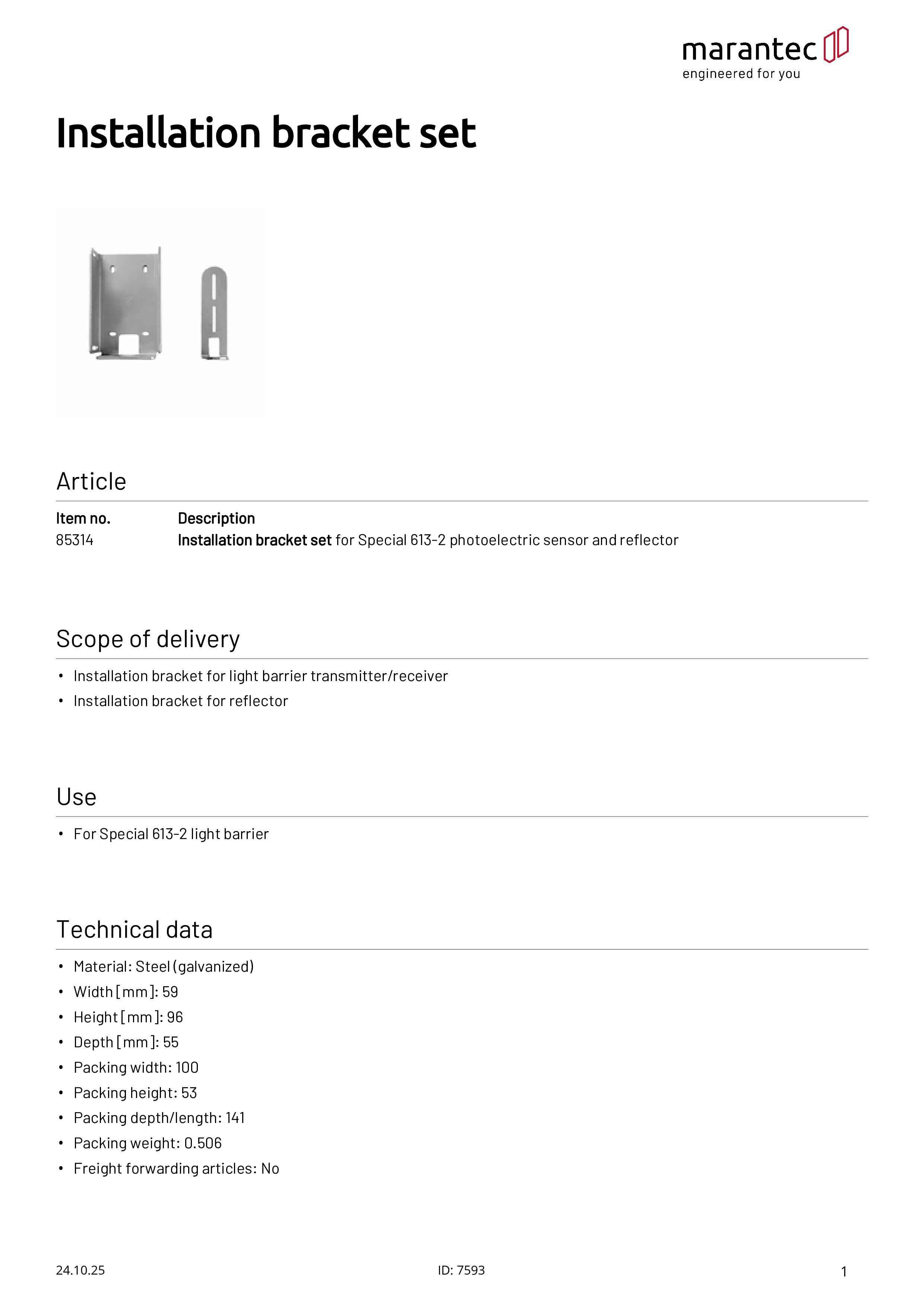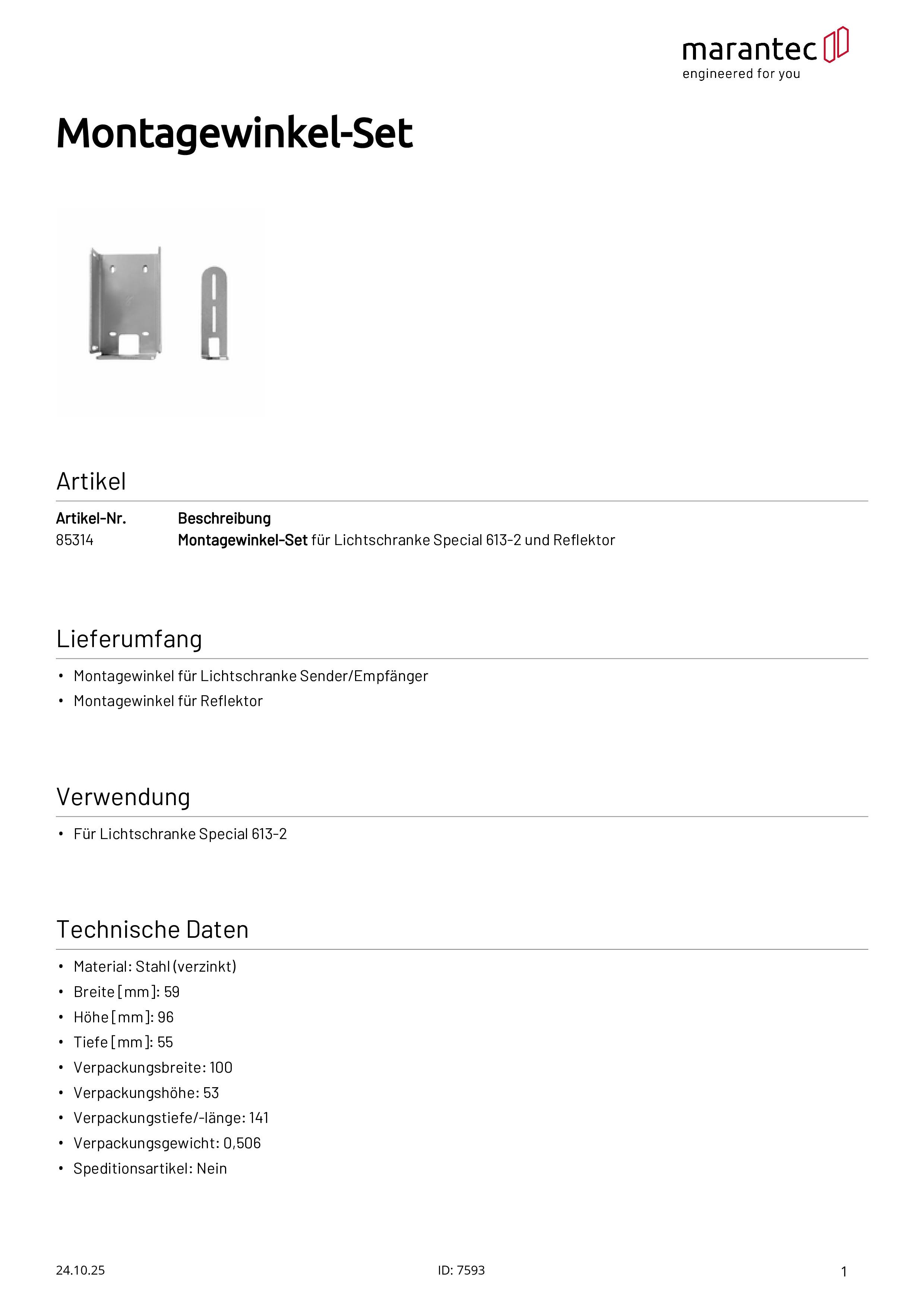 Montagewinkel-Set für Lichtschranke Special 613-2 und Reflektor