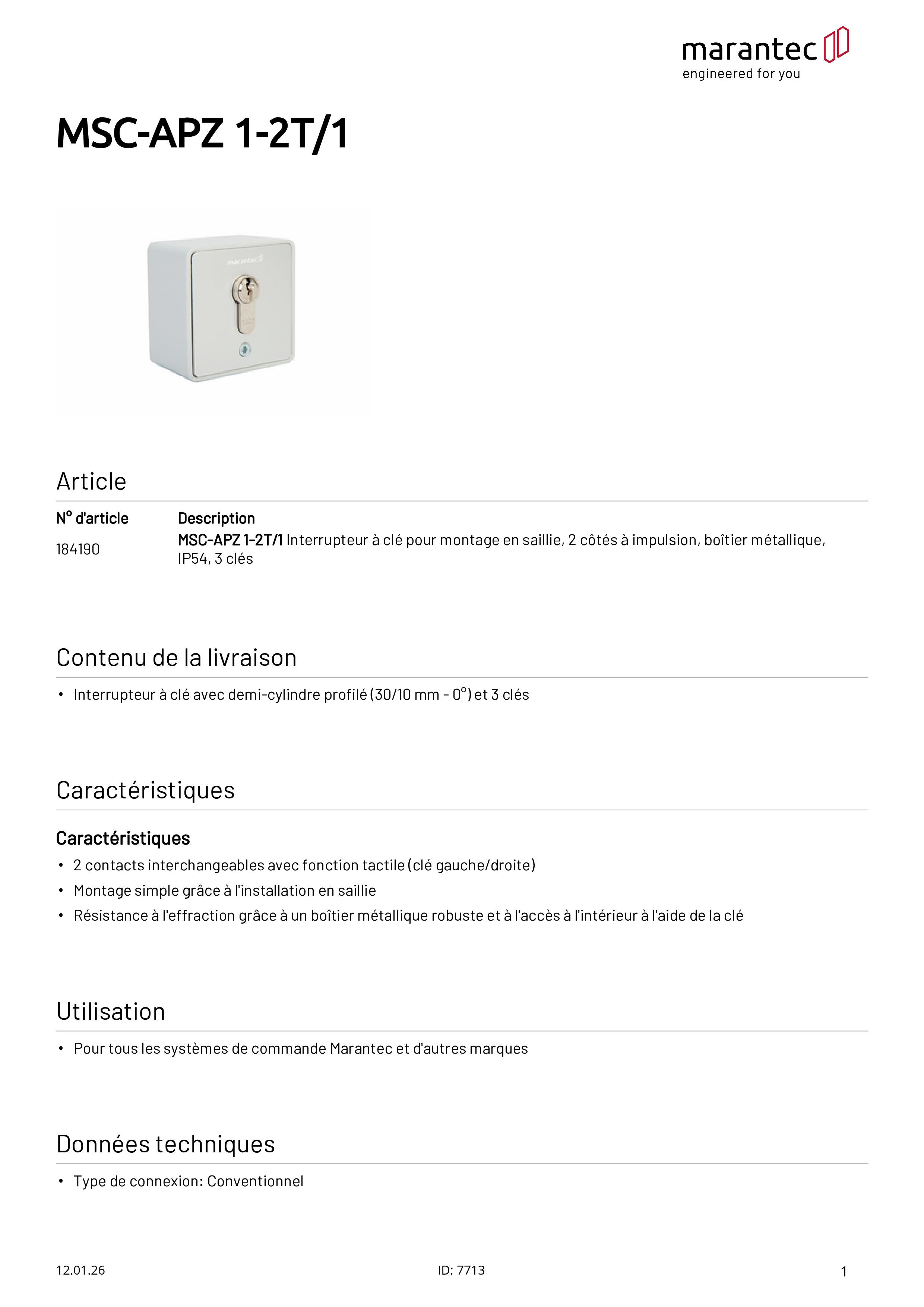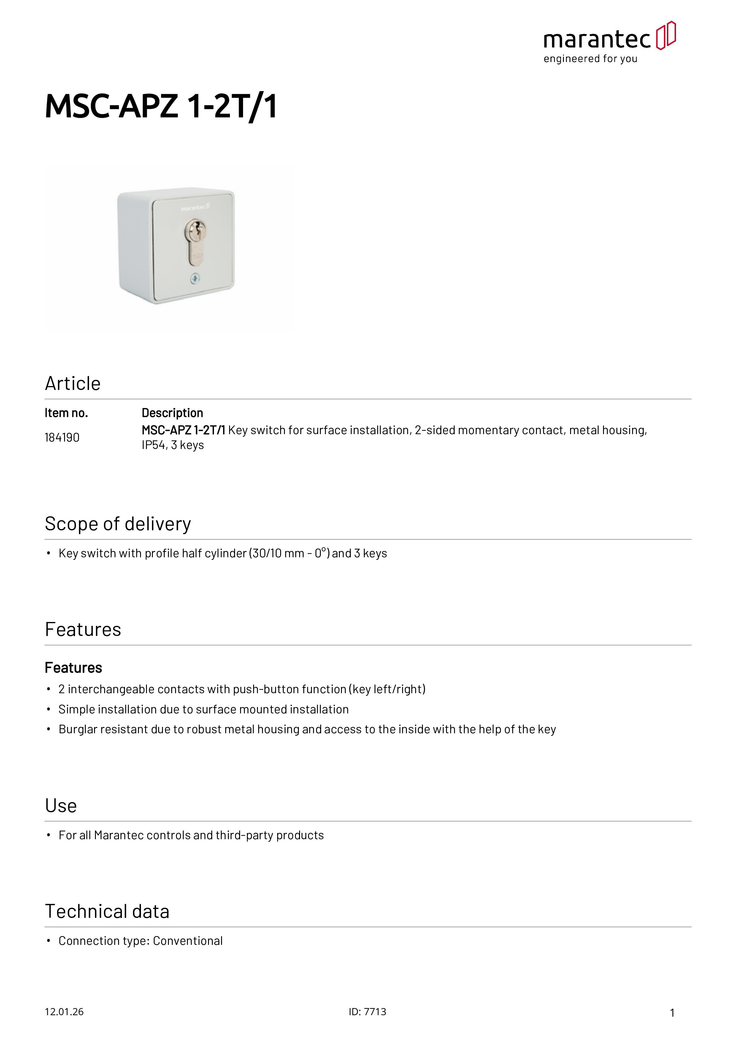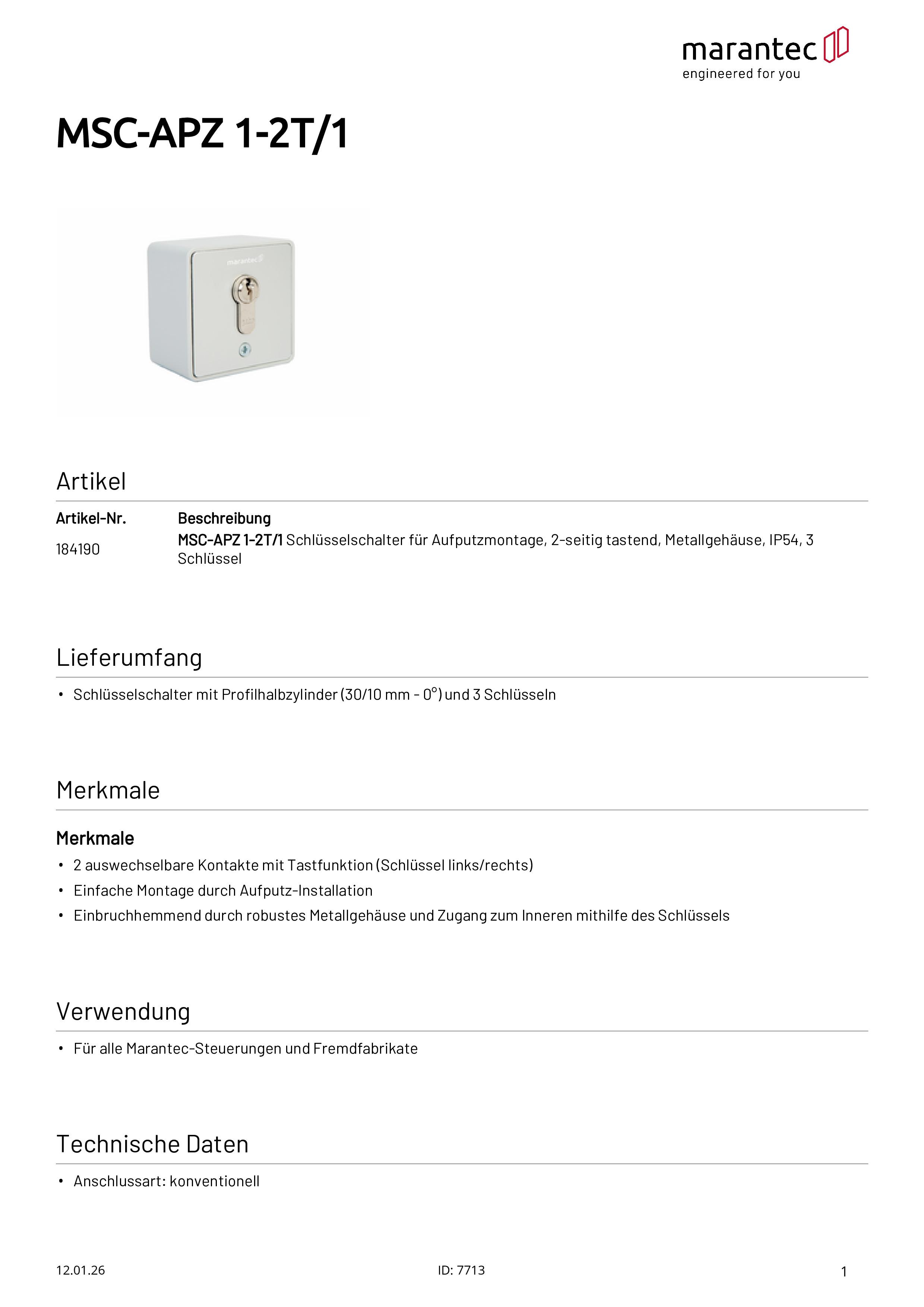 MSC-APZ 1-2T/1 Schlüsselschalter Aufputz 2-seitig tastend