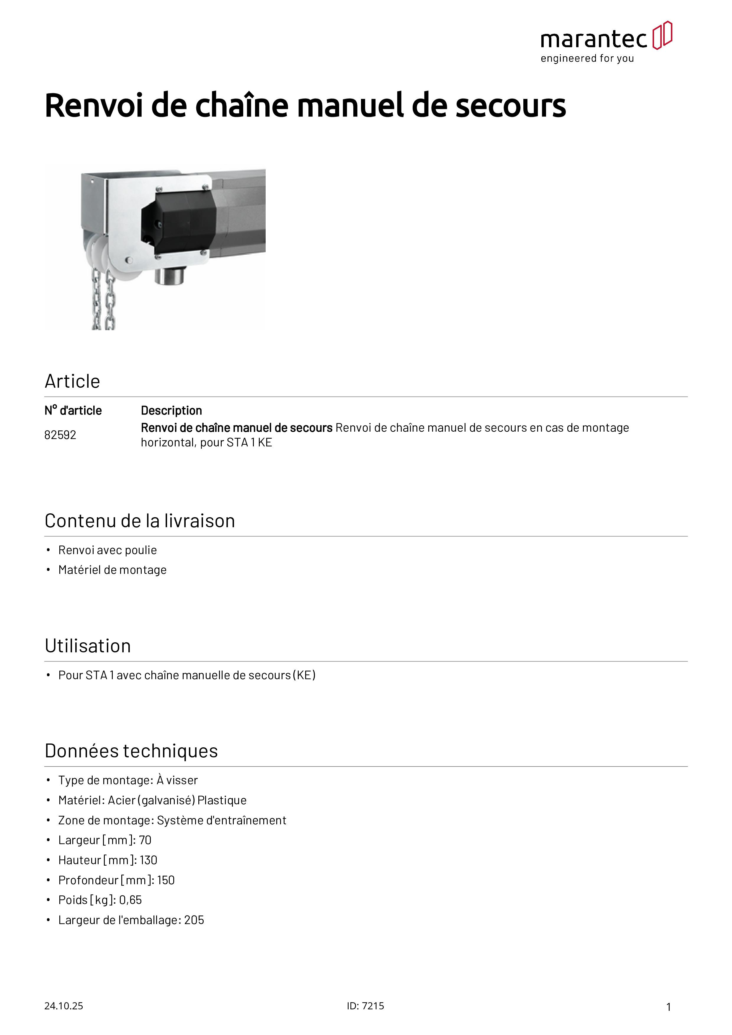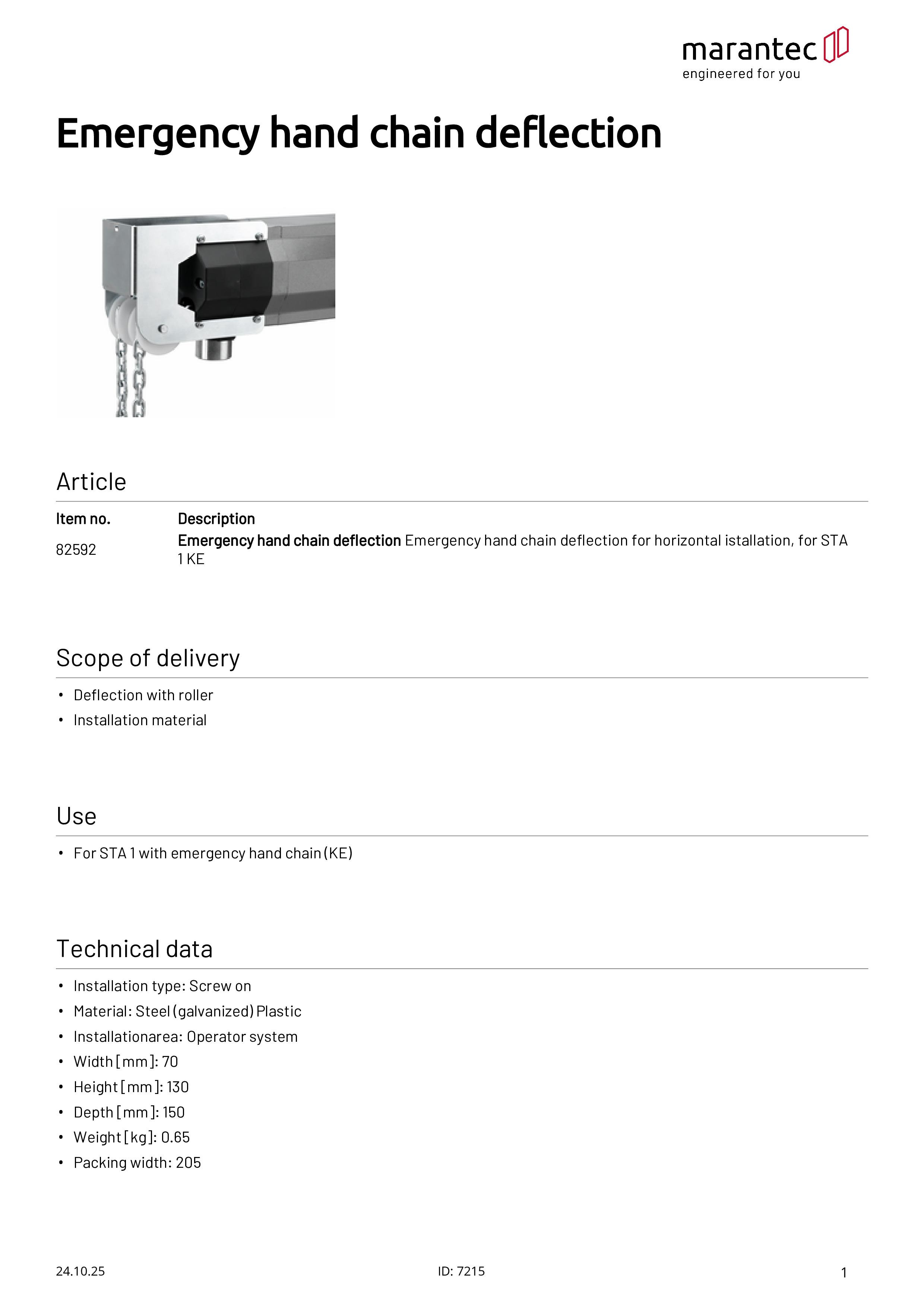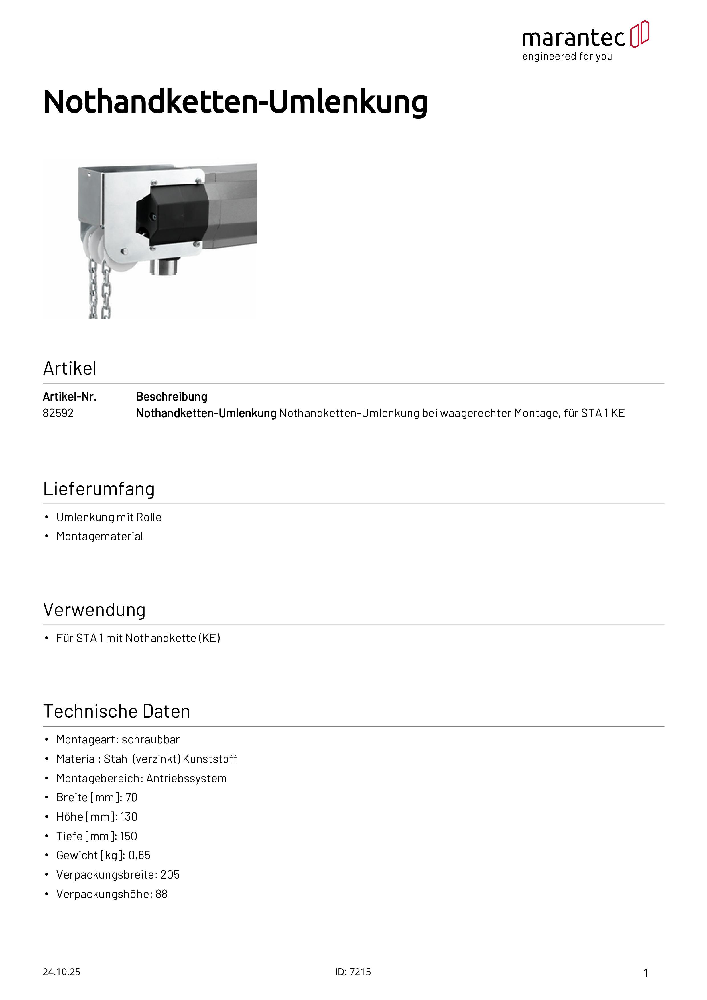 Nothandketten-Umlenkung bei waagerechter Montage für STA 1 KE