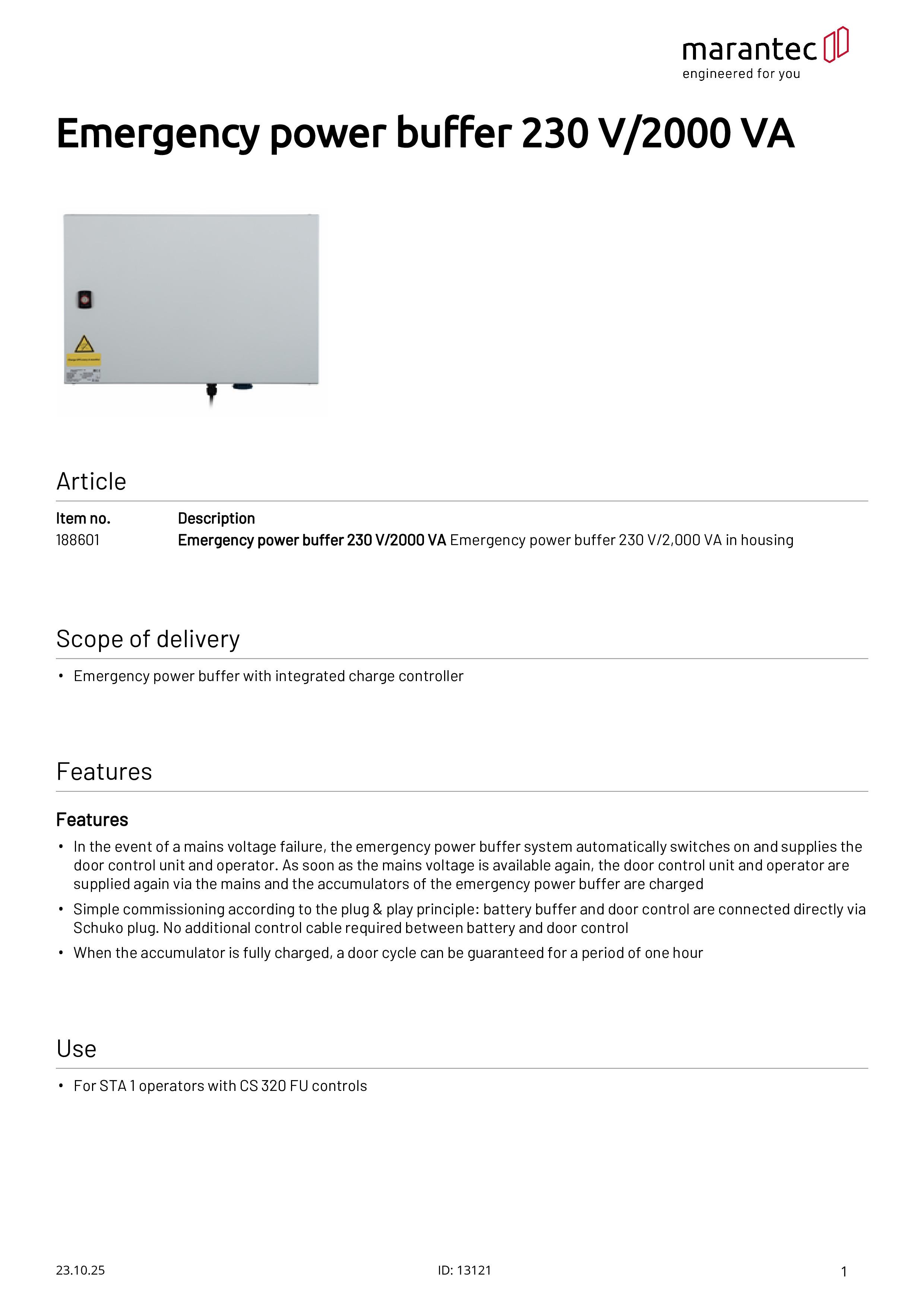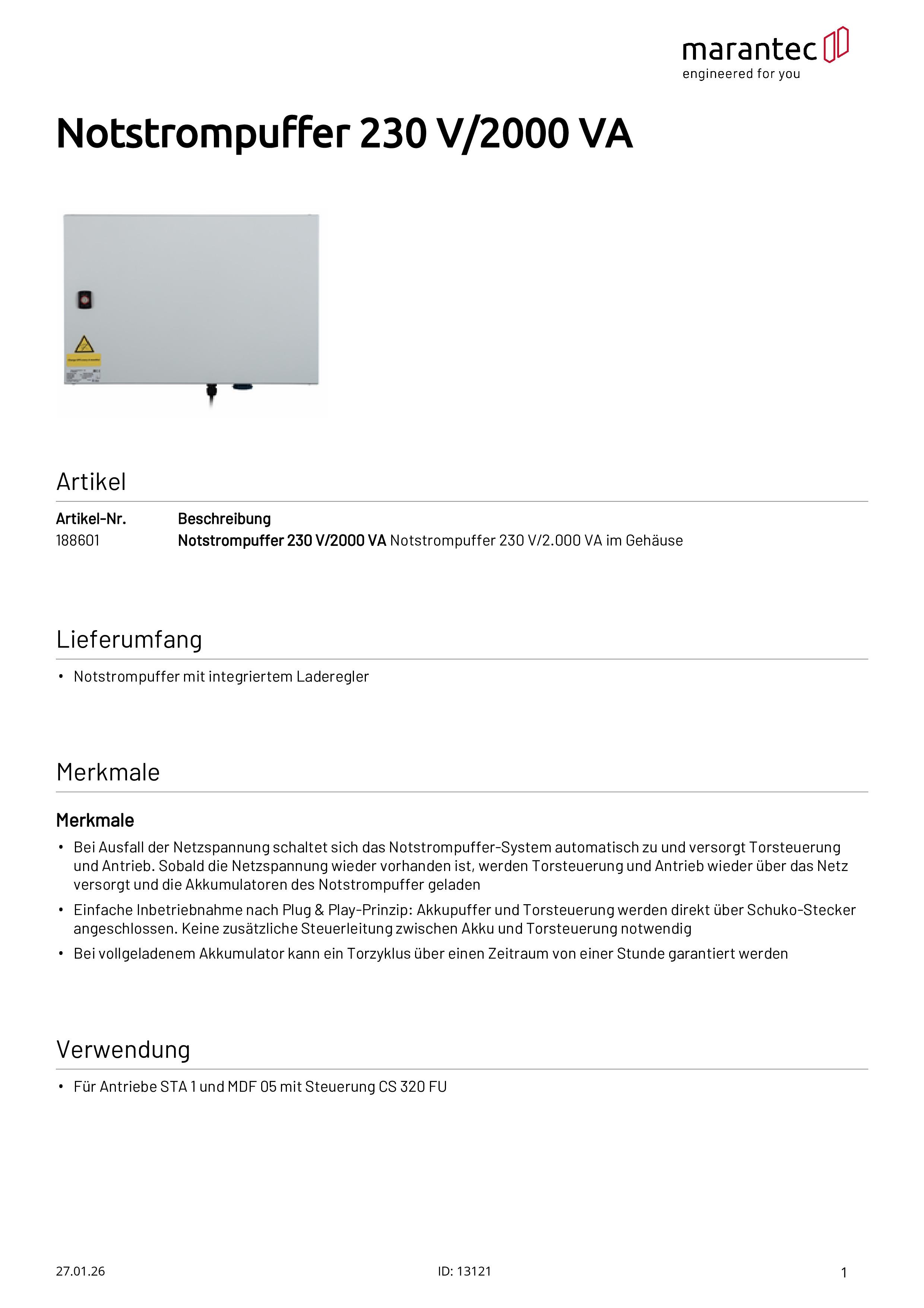 - Einfache Inbetriebnahme nach Plug & Play-Prinzip: Akkupuffer und Torsteuerung werden direkt über Schuko-Stecker angeschlossen. Keine zusätzliche Steuerleitung zwischen Akku und Torsteuerung notwendig