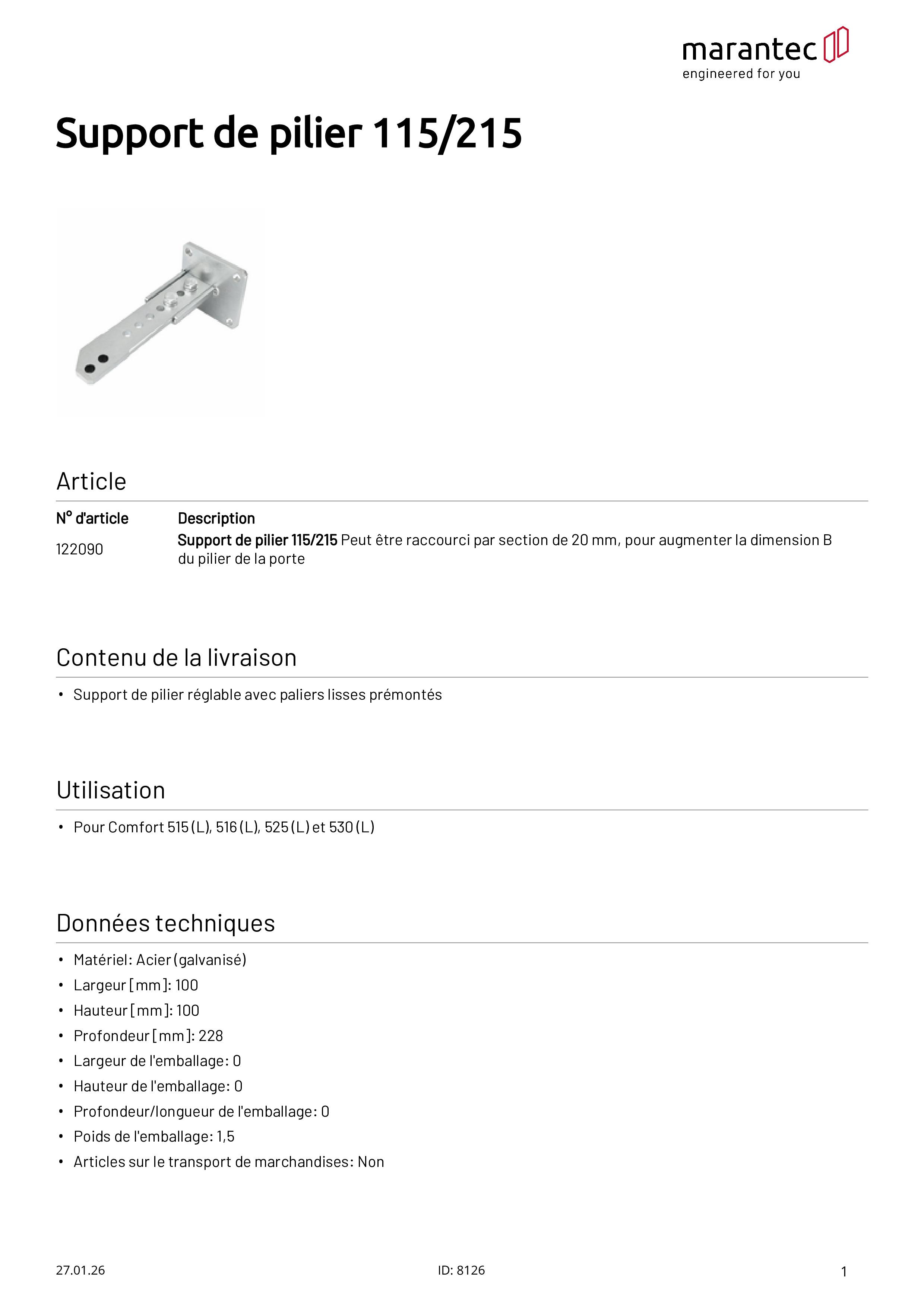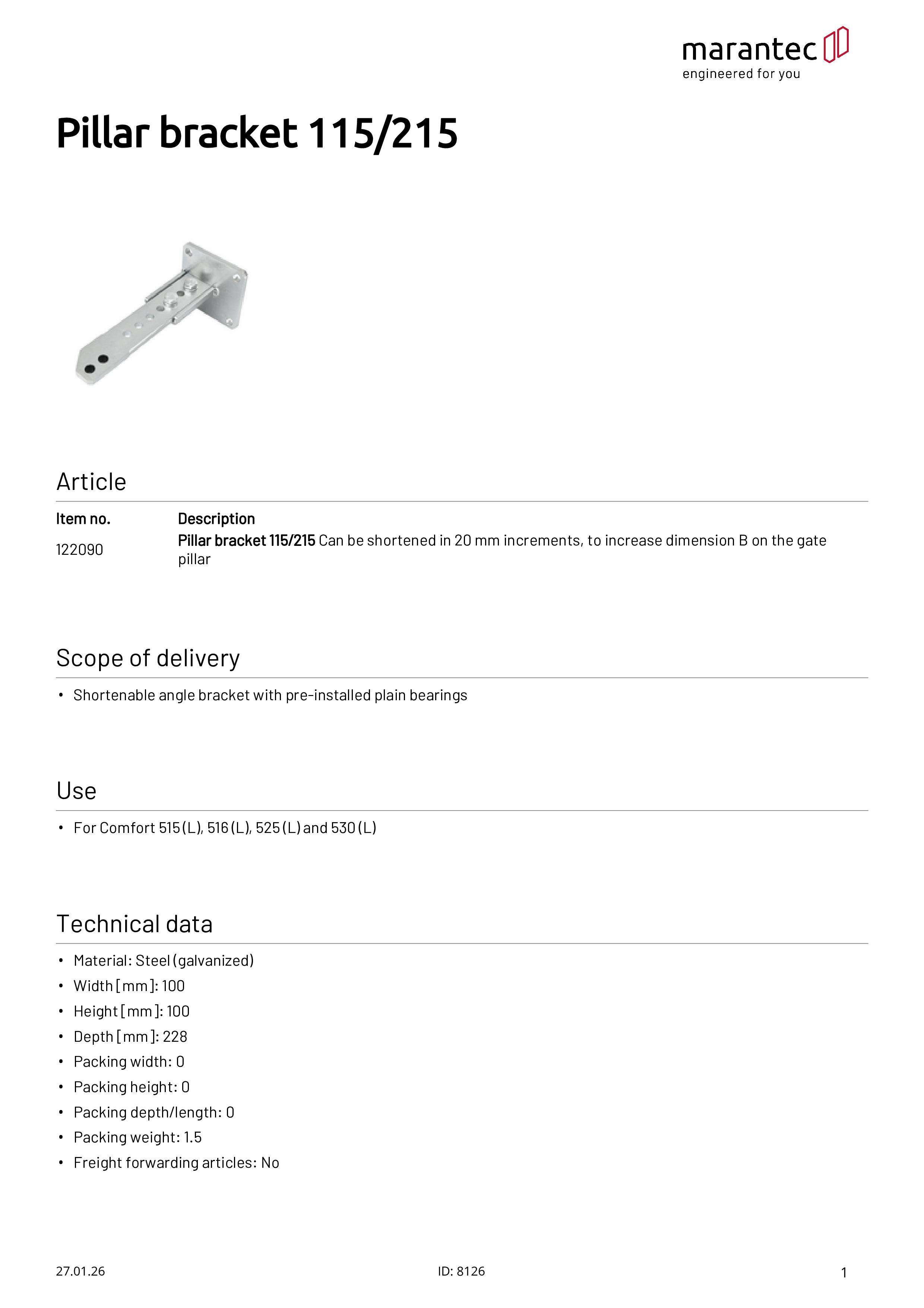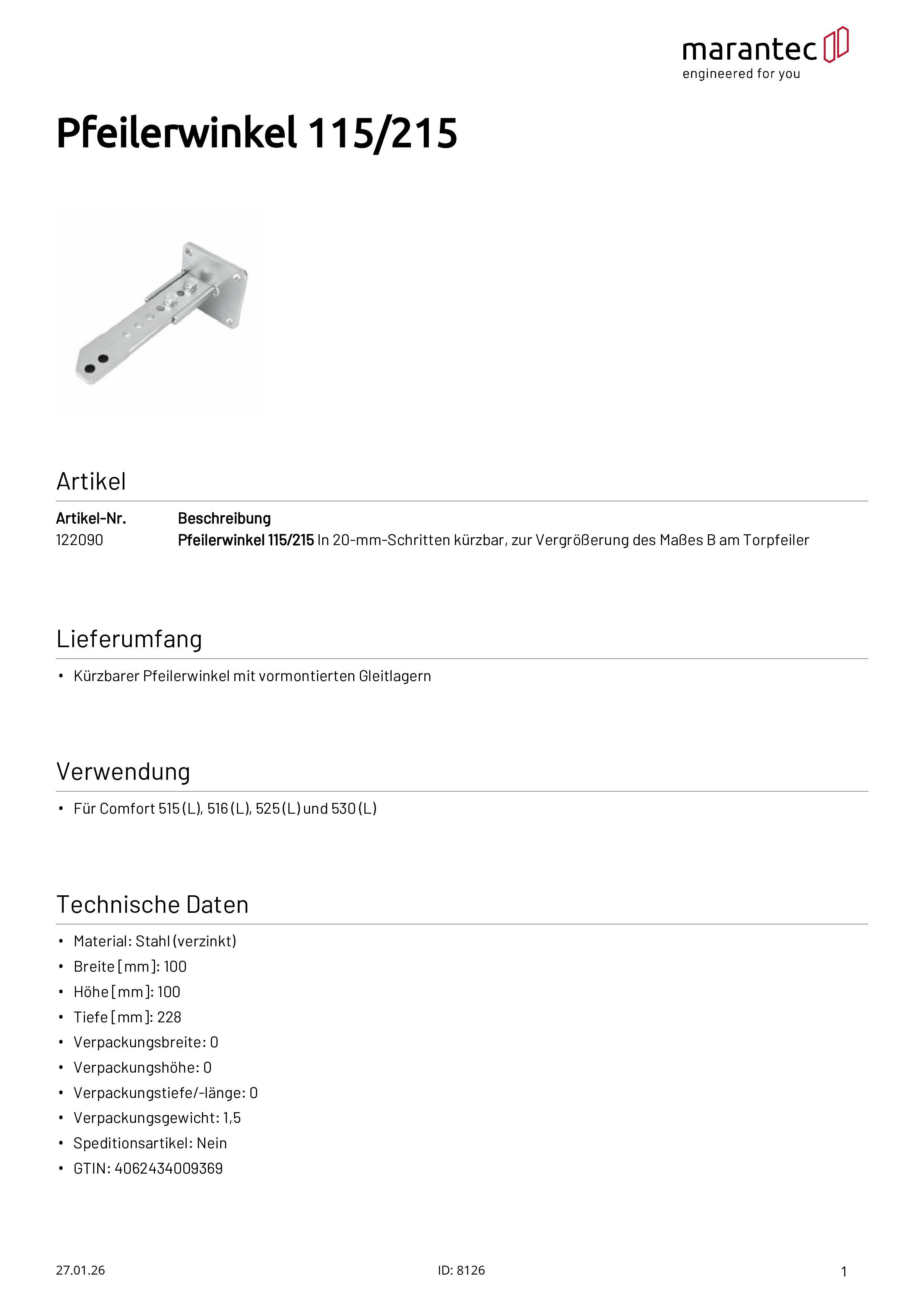 Pfeilerwinkel 115/215 In 20-mm-Schritten kürzbar