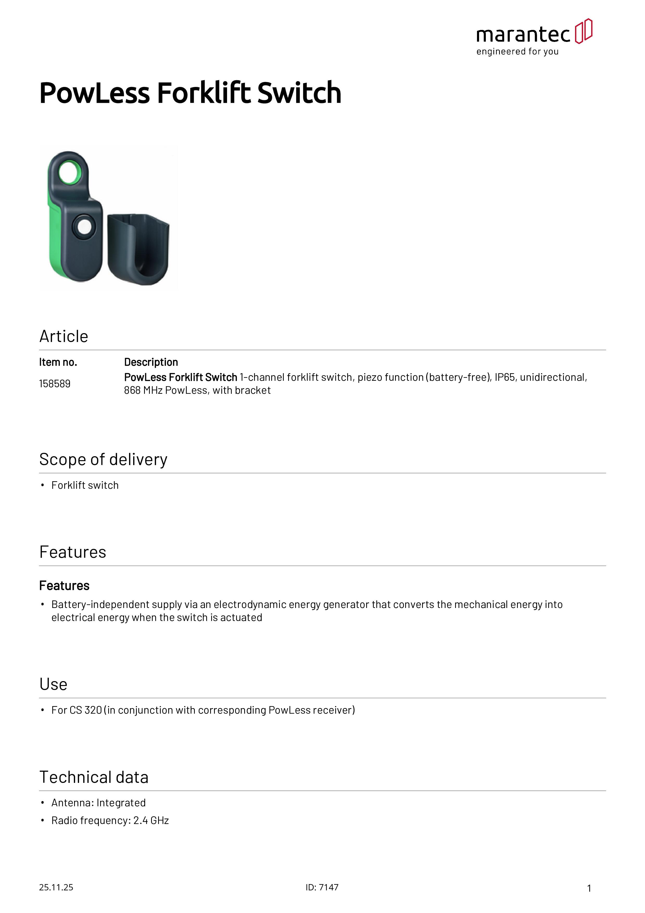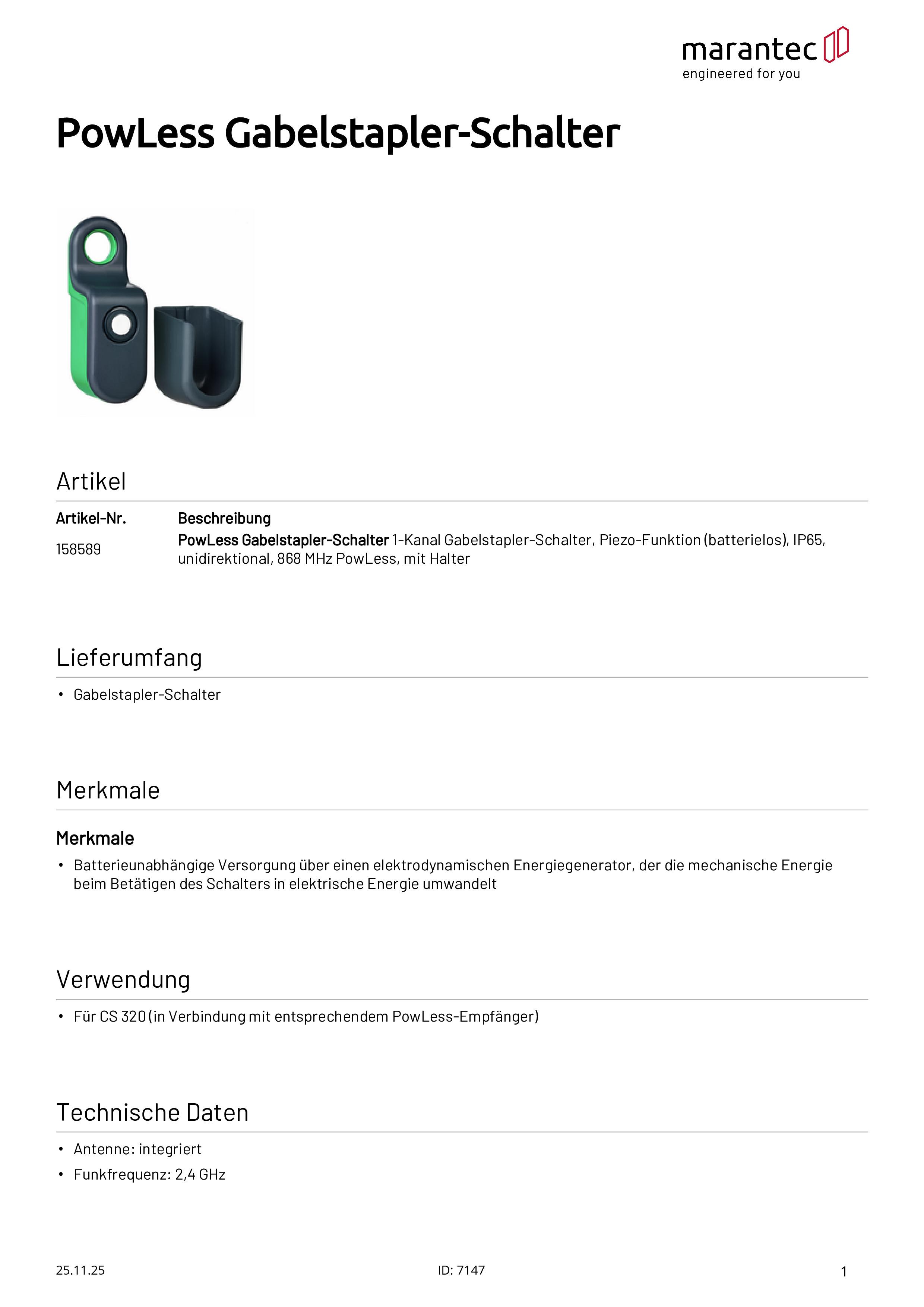 PowLess Gabelstapler-Schalter Piezo-Funktion (batterielos), IP65, 868 MHz PowLess