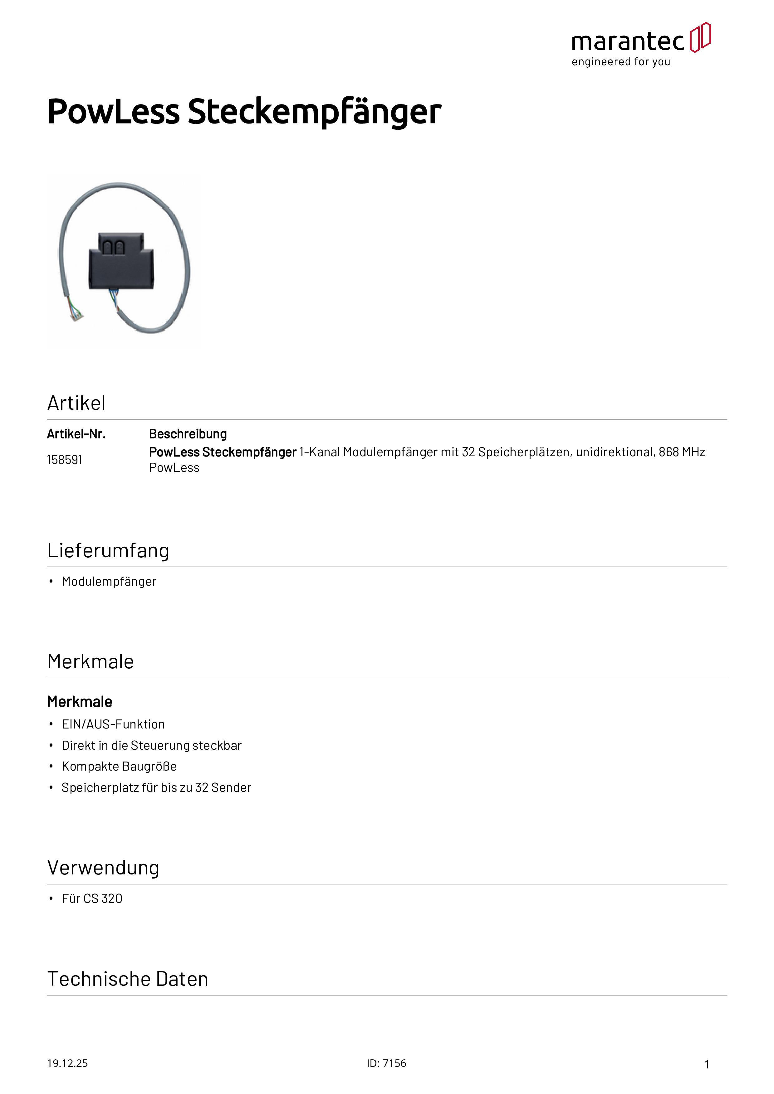 PowLess 1-Kanal Modulempfänger, 32 Speicherplätze, 868 MHz PowLess