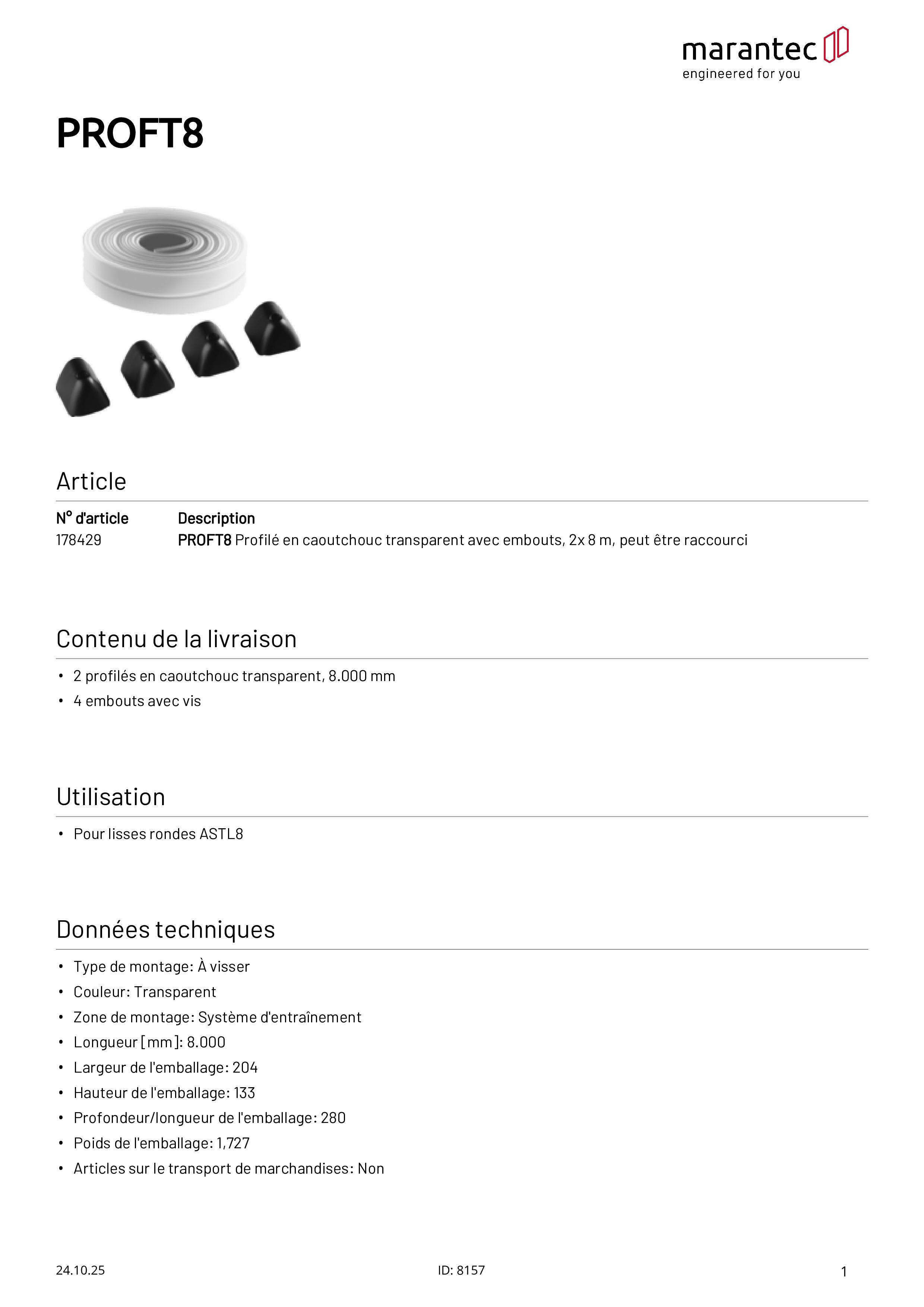 PROFT8 Transparentes Gummiprofil mit Endkappen, 2x 8 m, kürzbar
