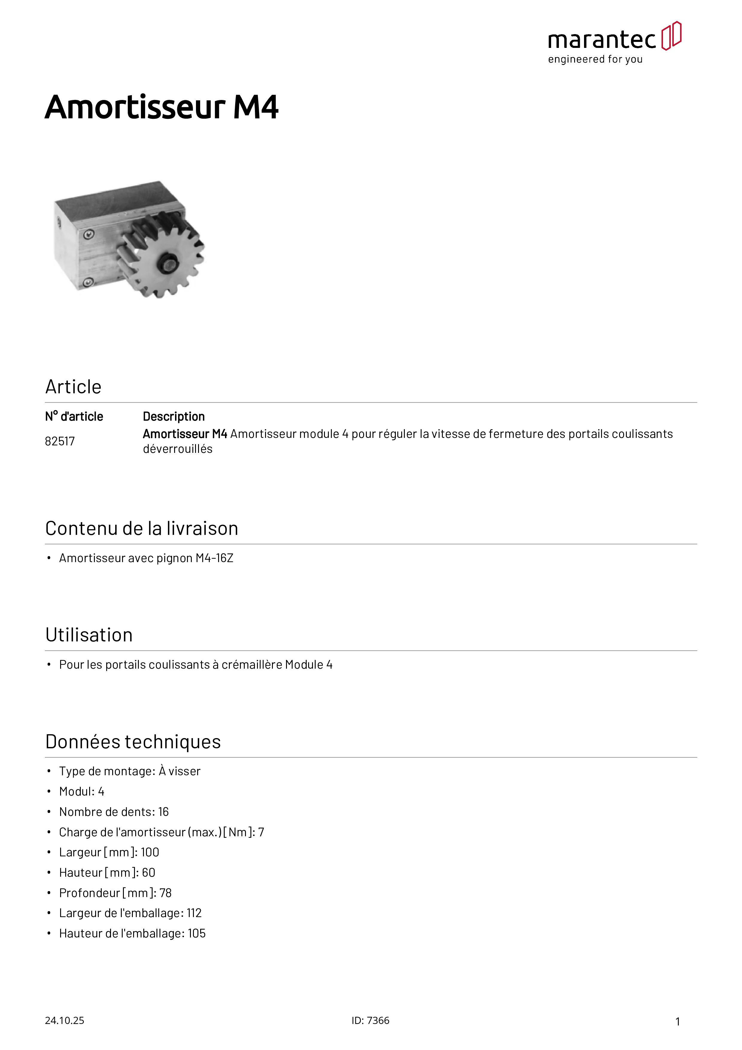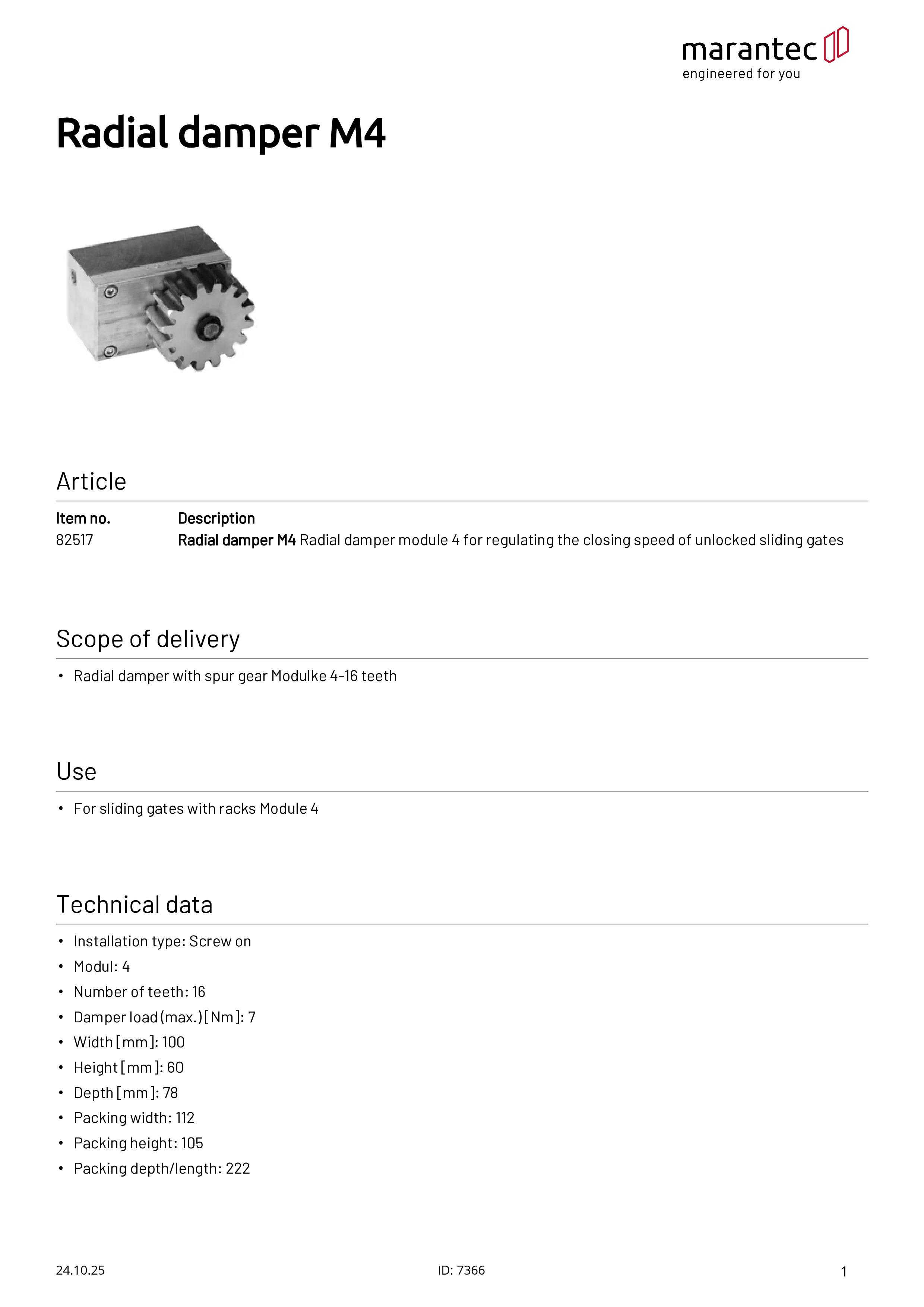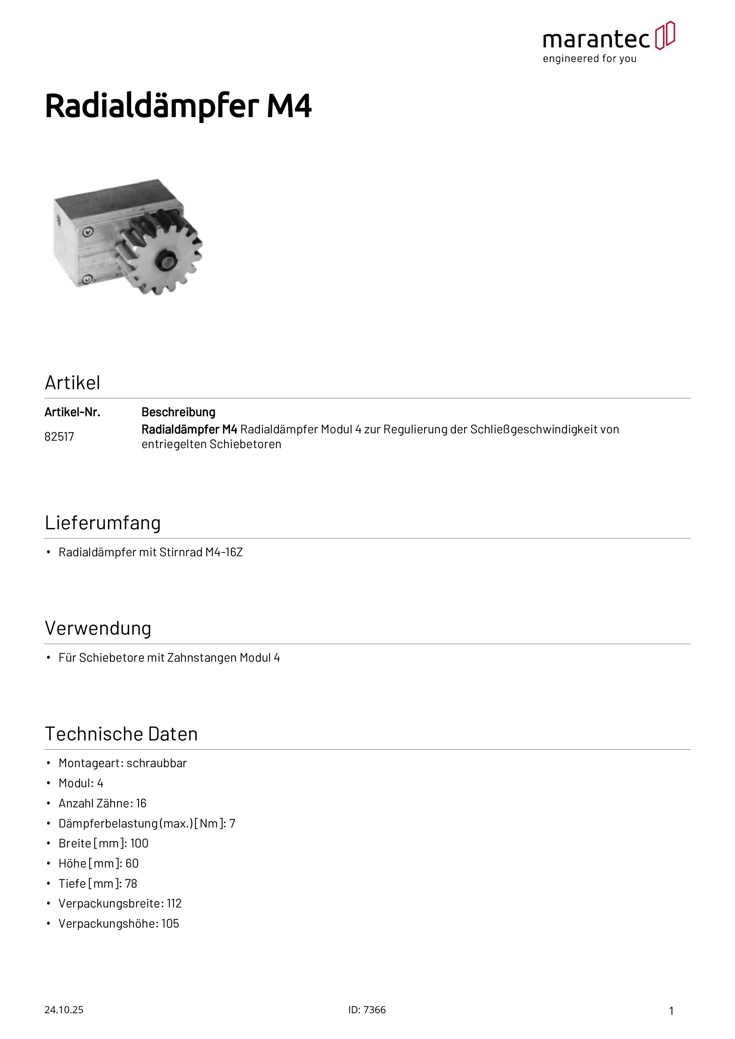 Radialdämpfer Modul 4 zur Regulierung der Schließgeschwindigkeit