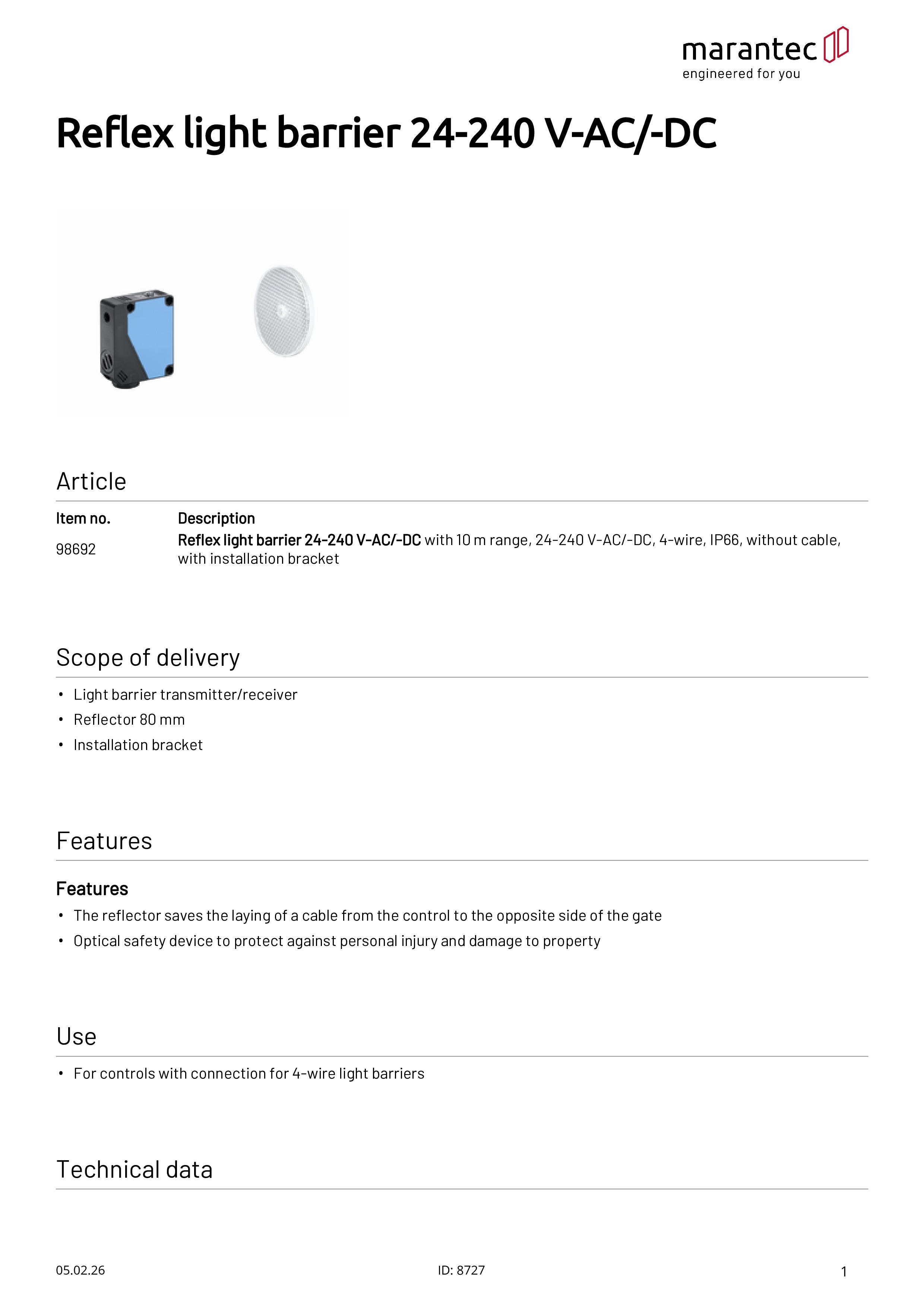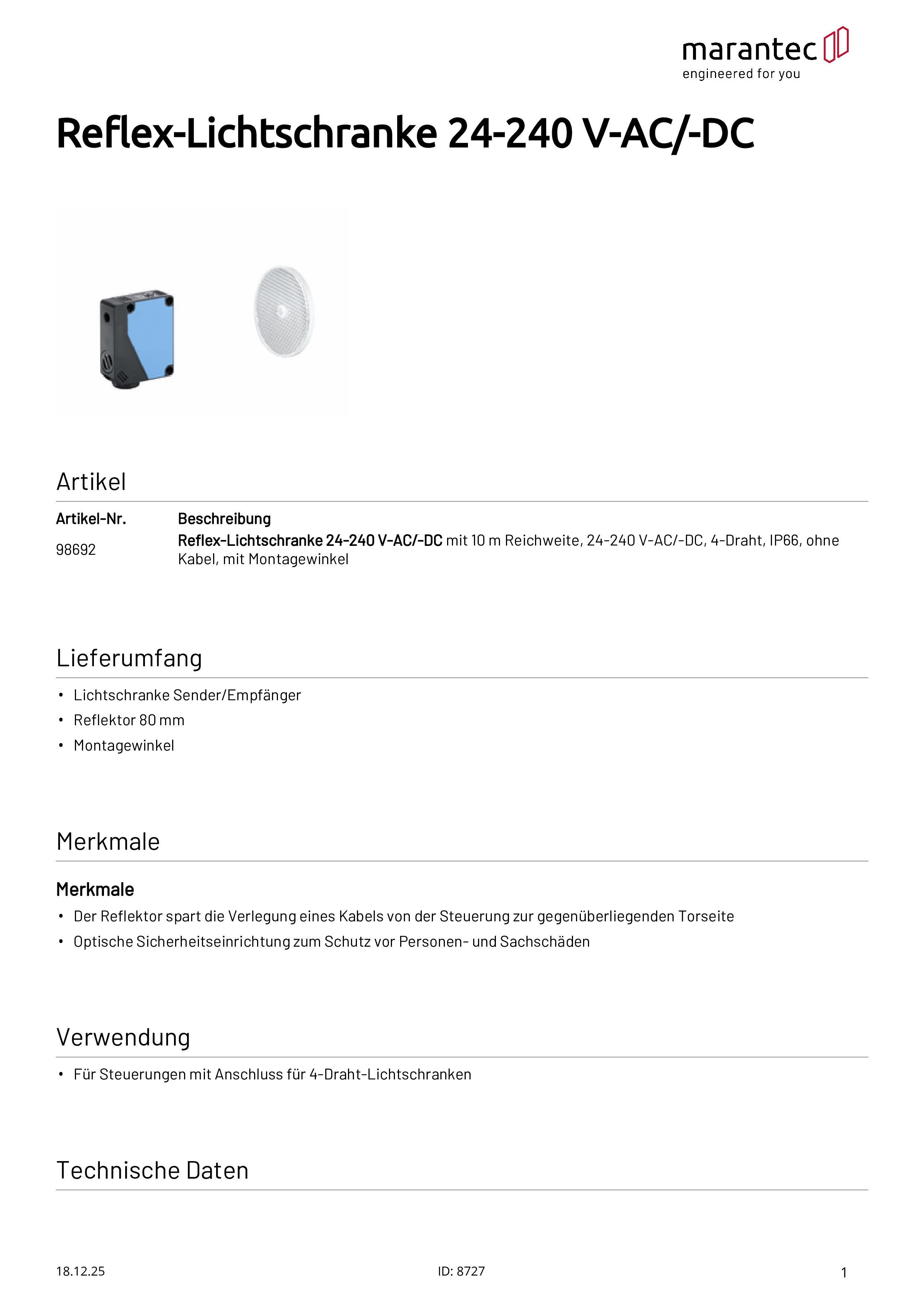 - Der Reflektor spart die Verlegung eines Kabels von der Steuerung zur gegenüberliegenden Torseite