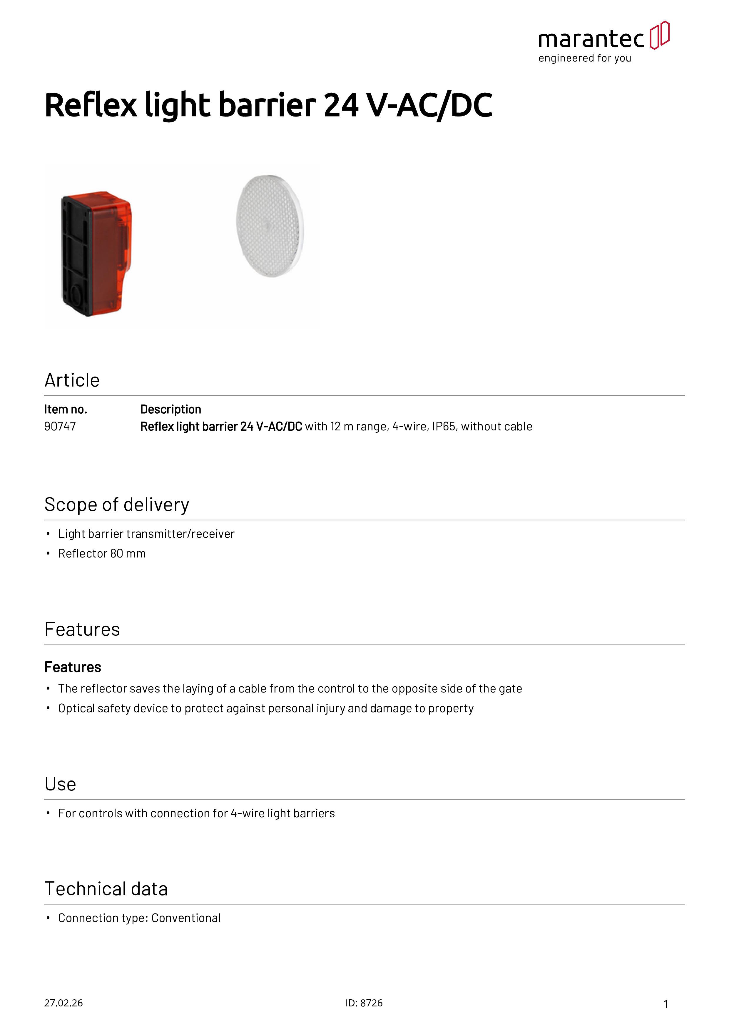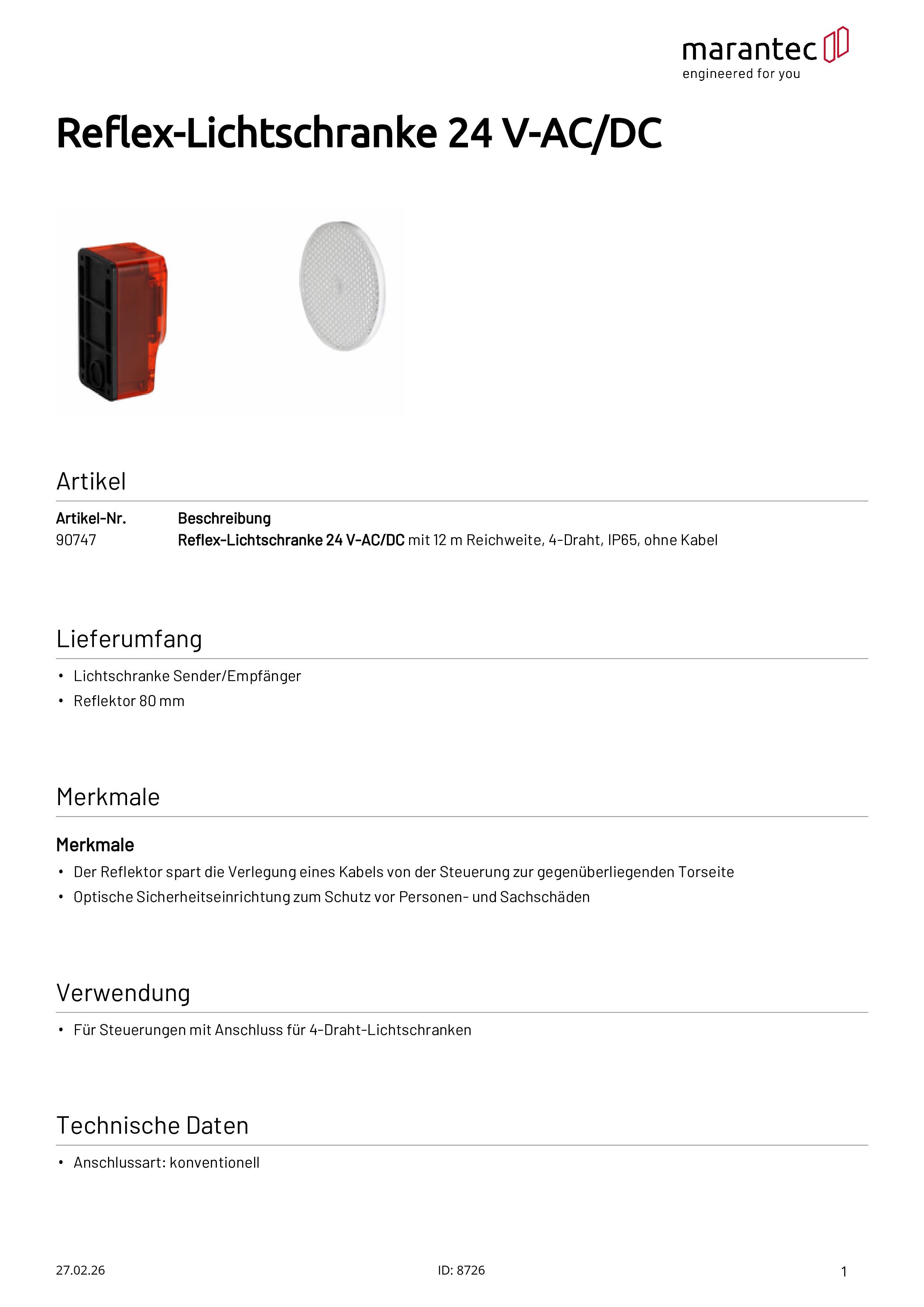 - Der Reflektor spart die Verlegung eines Kabels von der Steuerung zur gegenüberliegenden Torseite