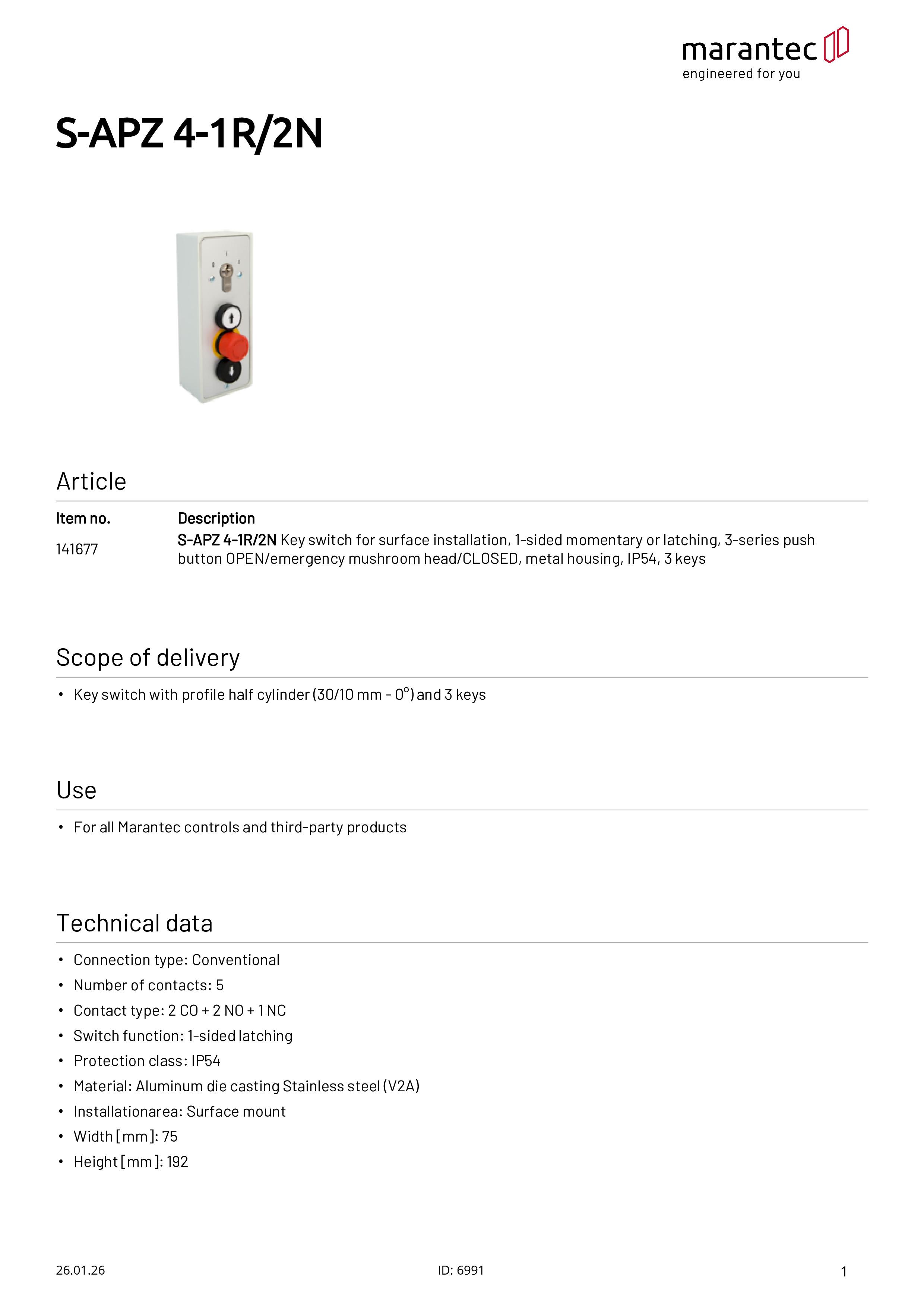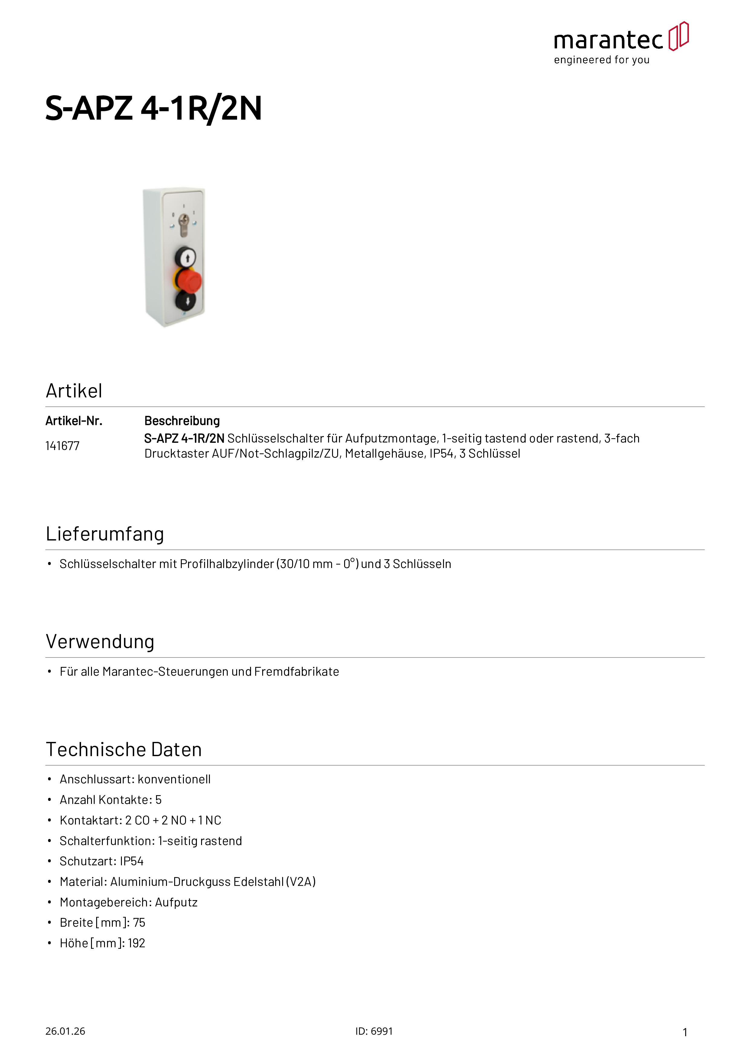 S-APZ 4-1R/2N Schlüsselschalter Aufputz 1-seitig tastend/rastend mit 3-fach Drucktaster AUF/Not/ZU