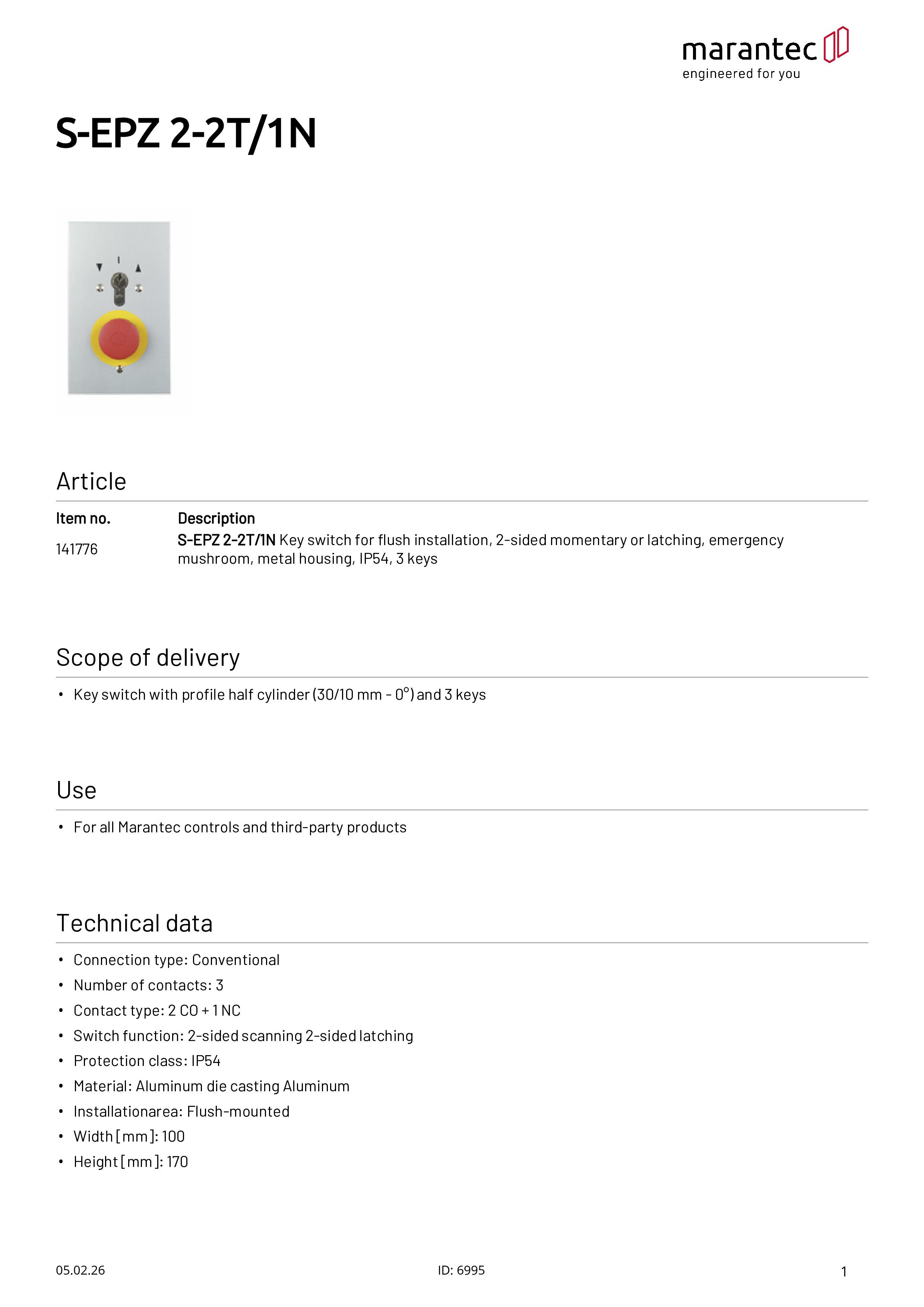 S-EPZ 2-2T/1N Schlüsselschalter Unterputz 2-seitig tastend/rastend mit Not-Schlagpilz