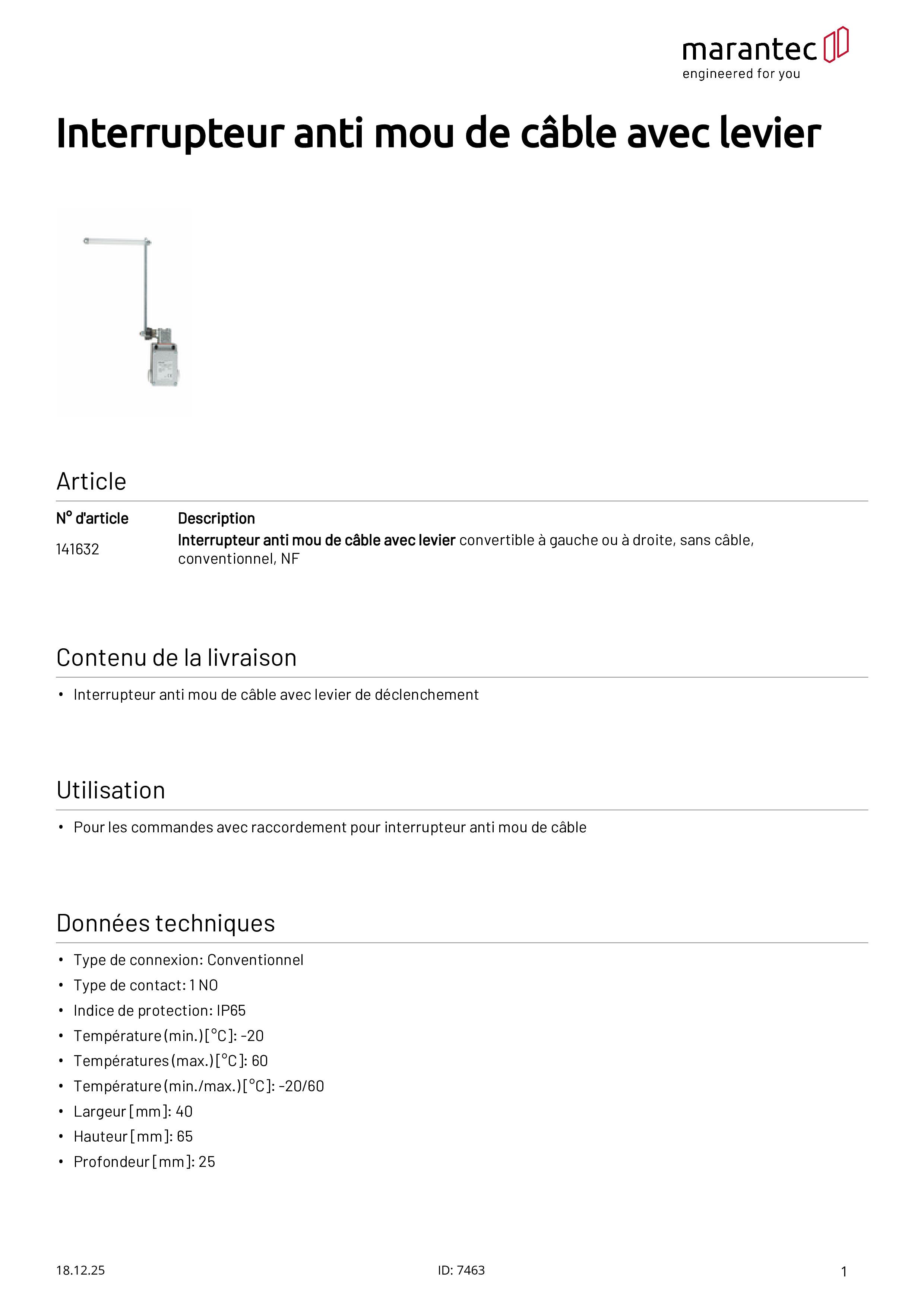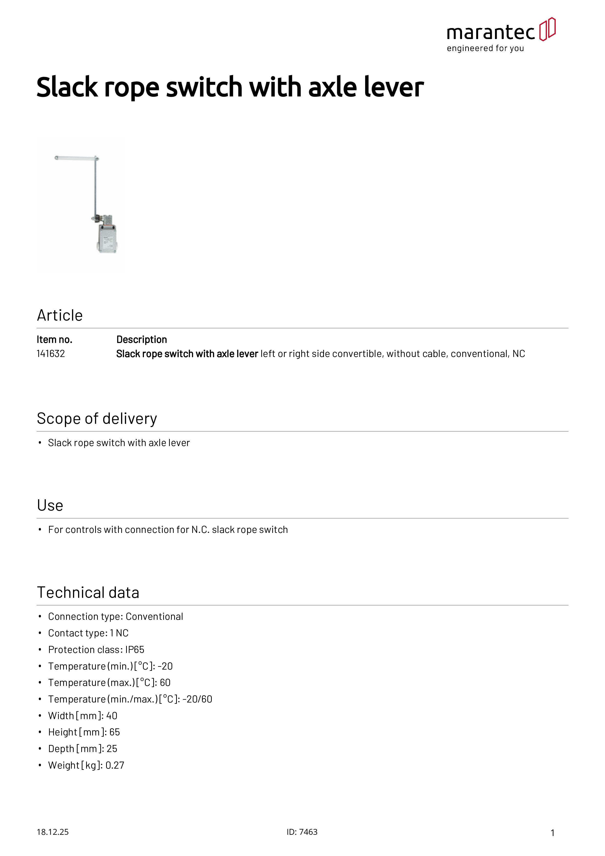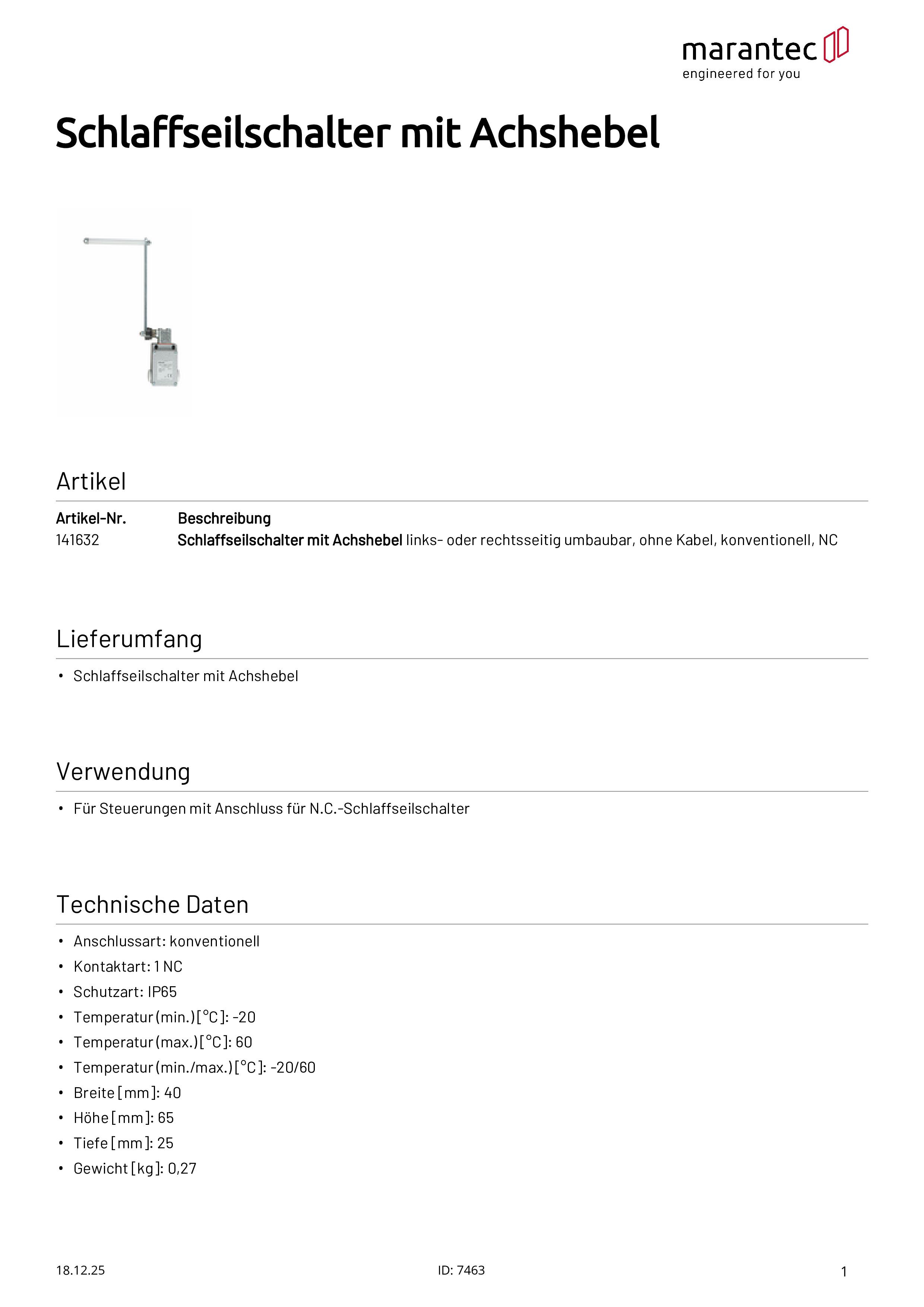 Schlaffseilschalter mit Achshebel, links- oder rechtsseitig umbaubar