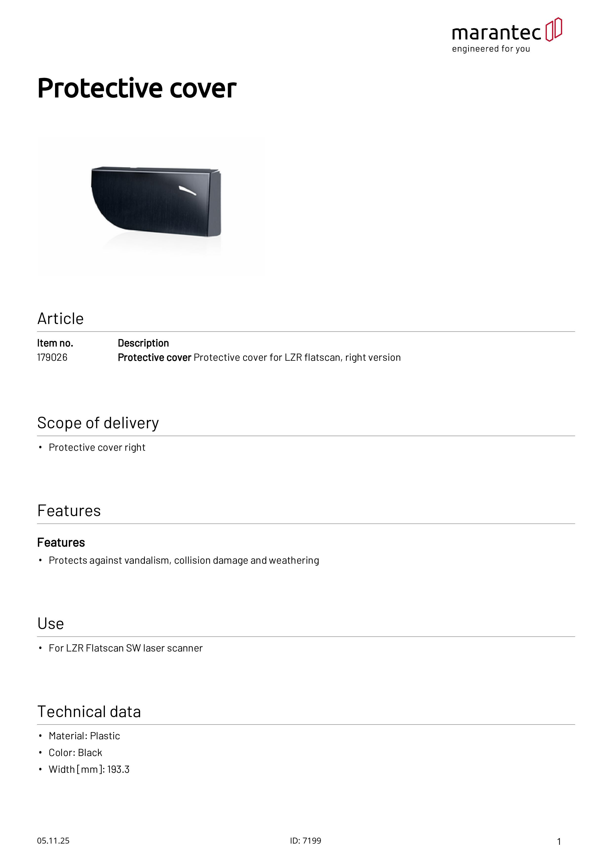 Schutzabdeckung für LZR-Flatscan, Ausführung rechts