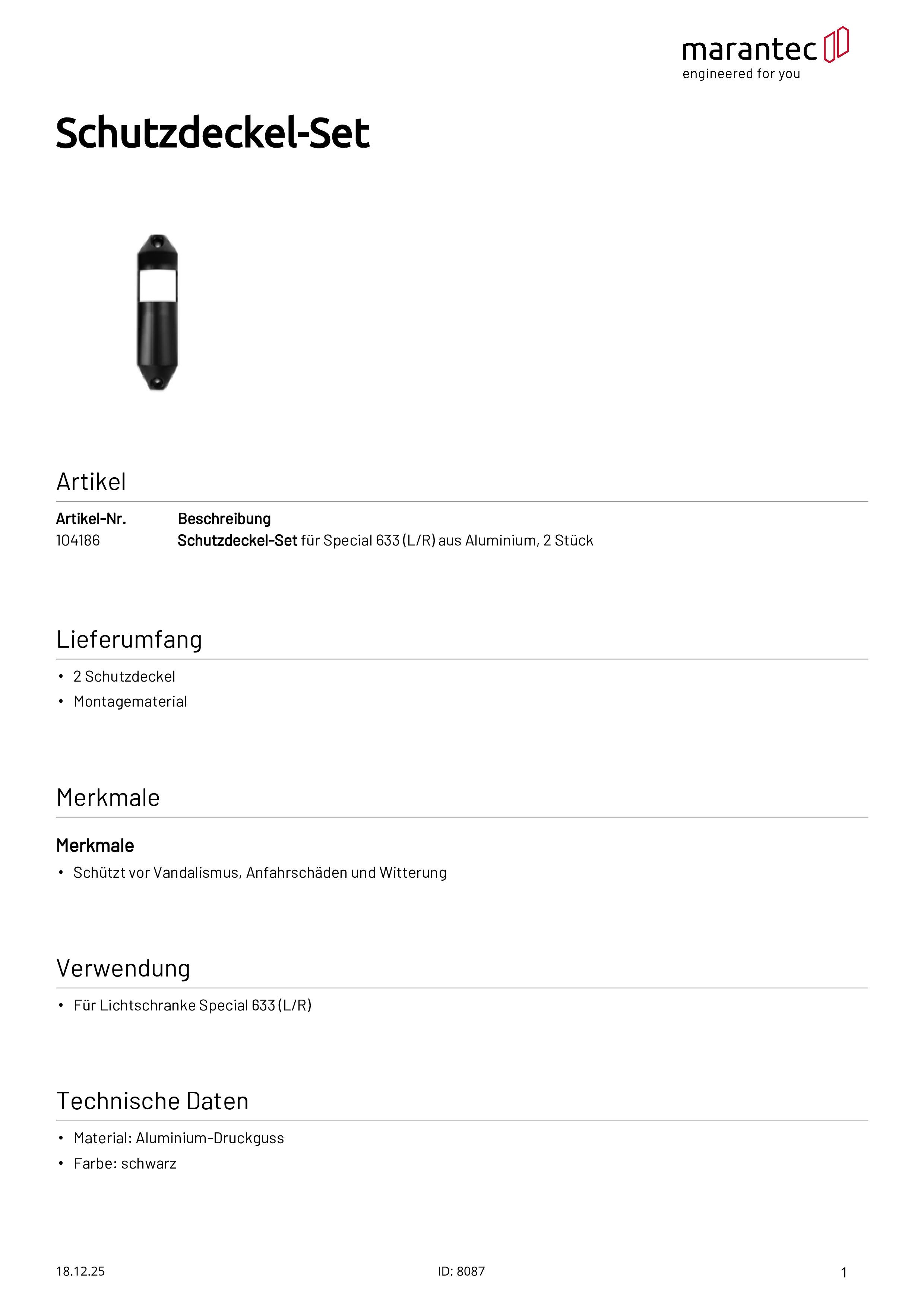 Schutzdeckel-Set für Special 633 (L/R) aus Aluminium, 2er-Set