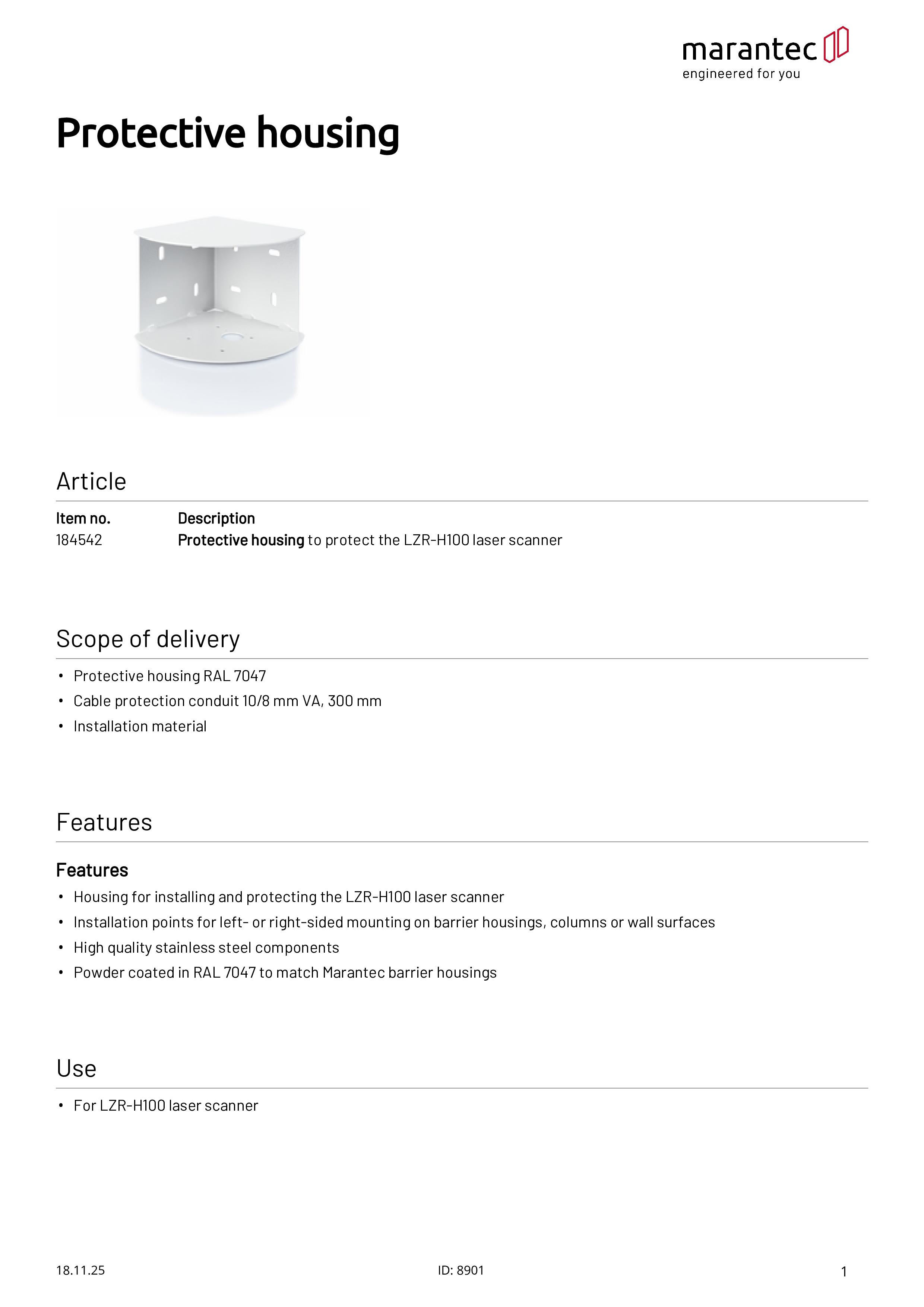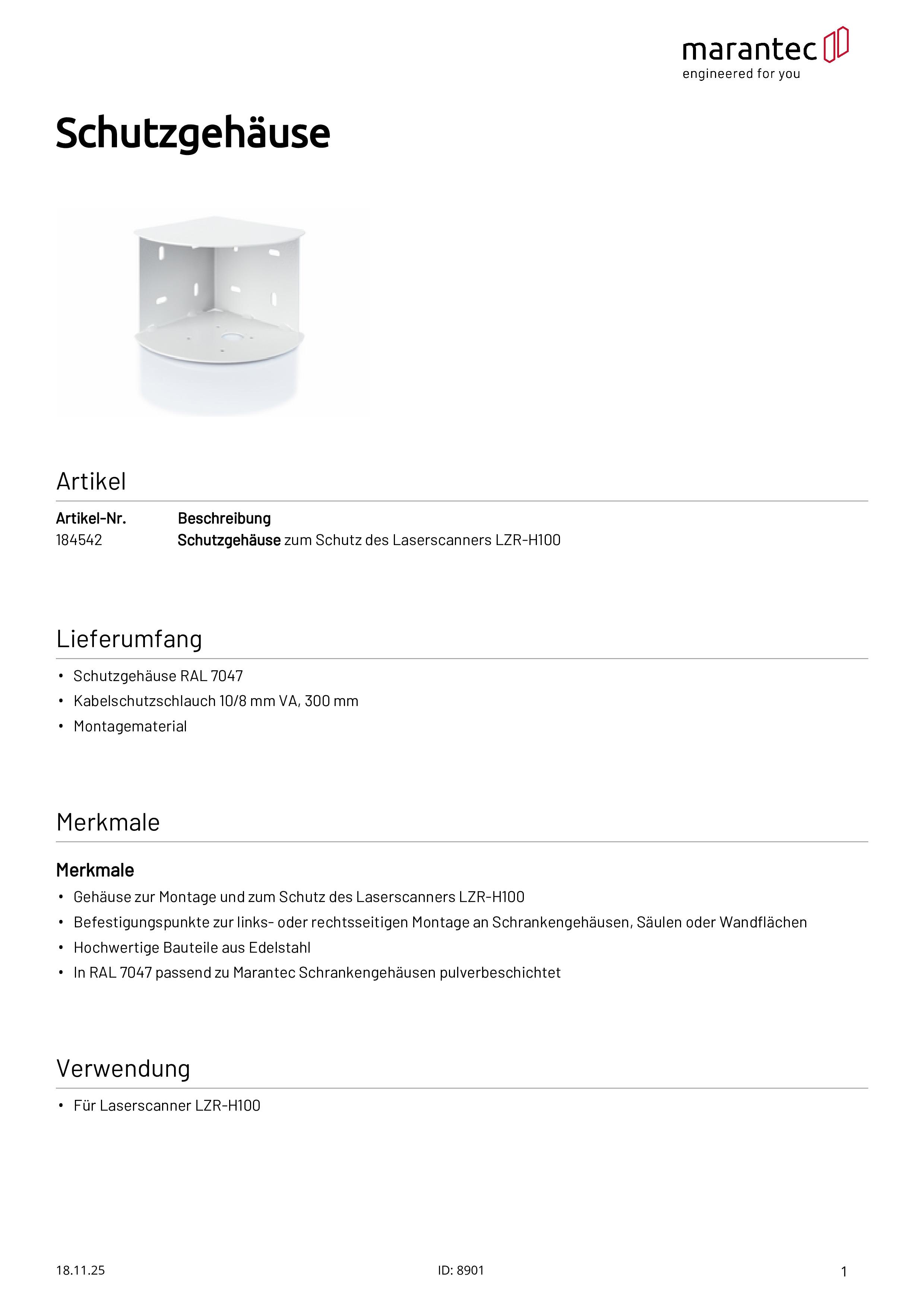 - Gehäuse zur Montage und zum Schutz des Laserscanners LZR-H100