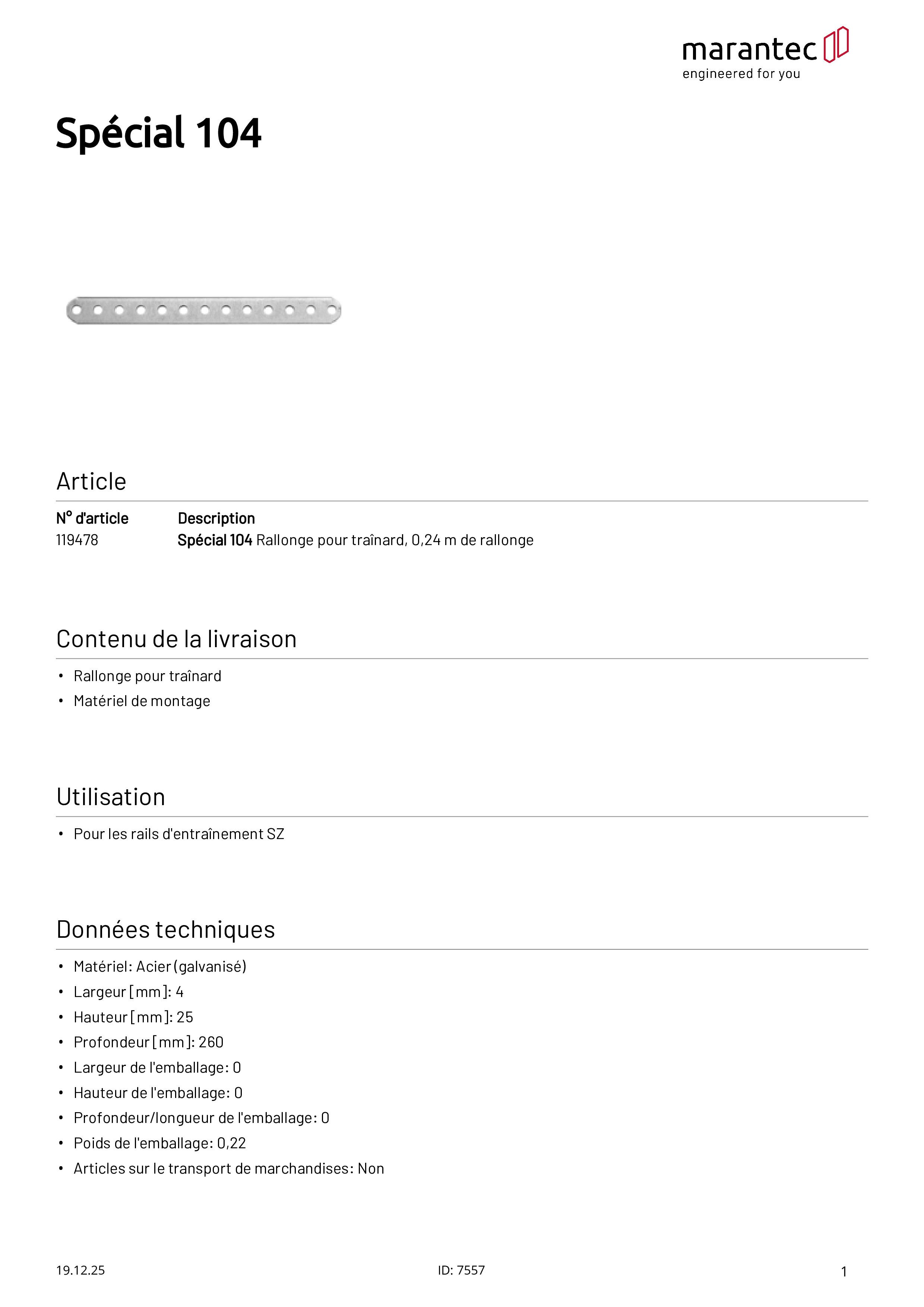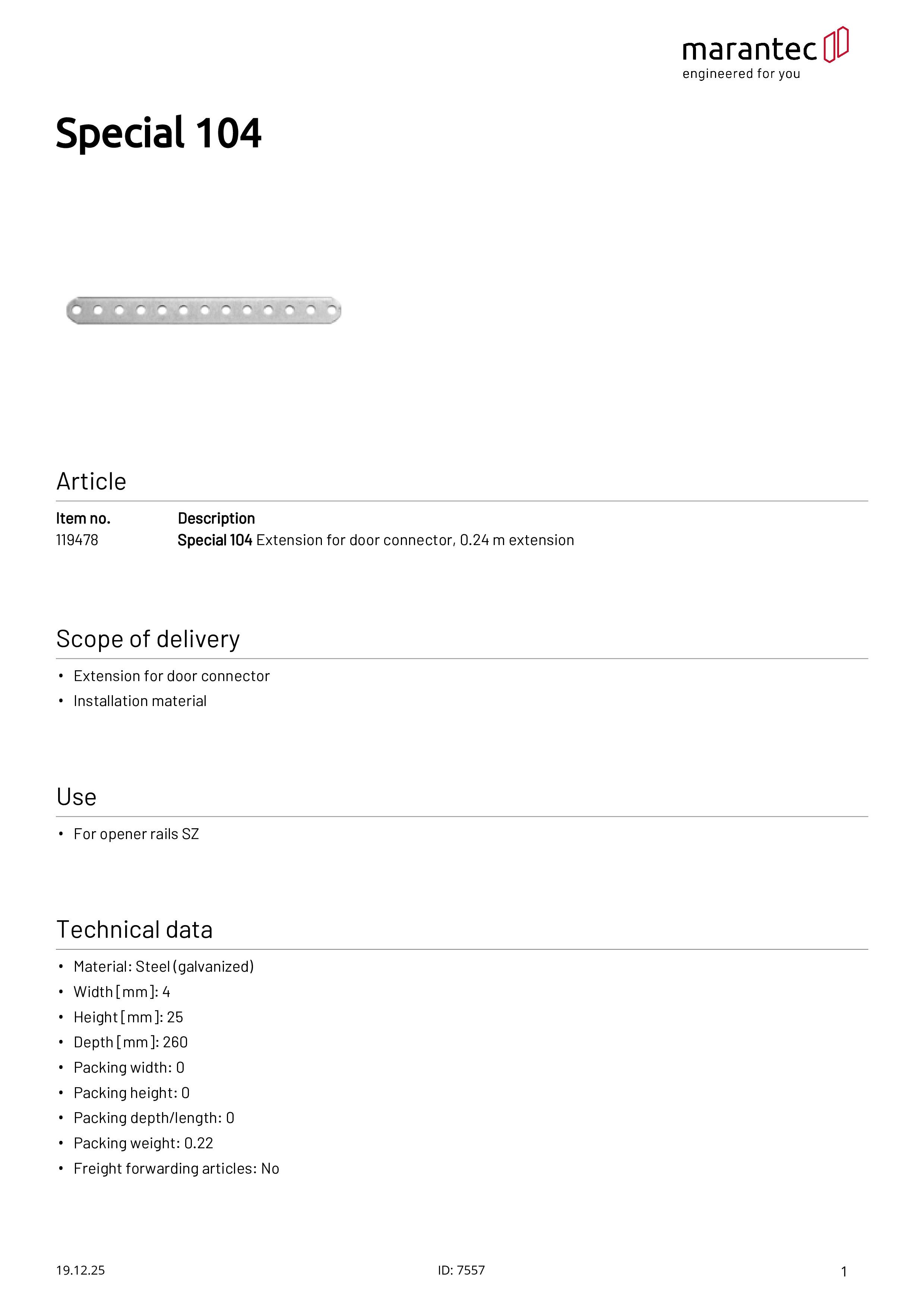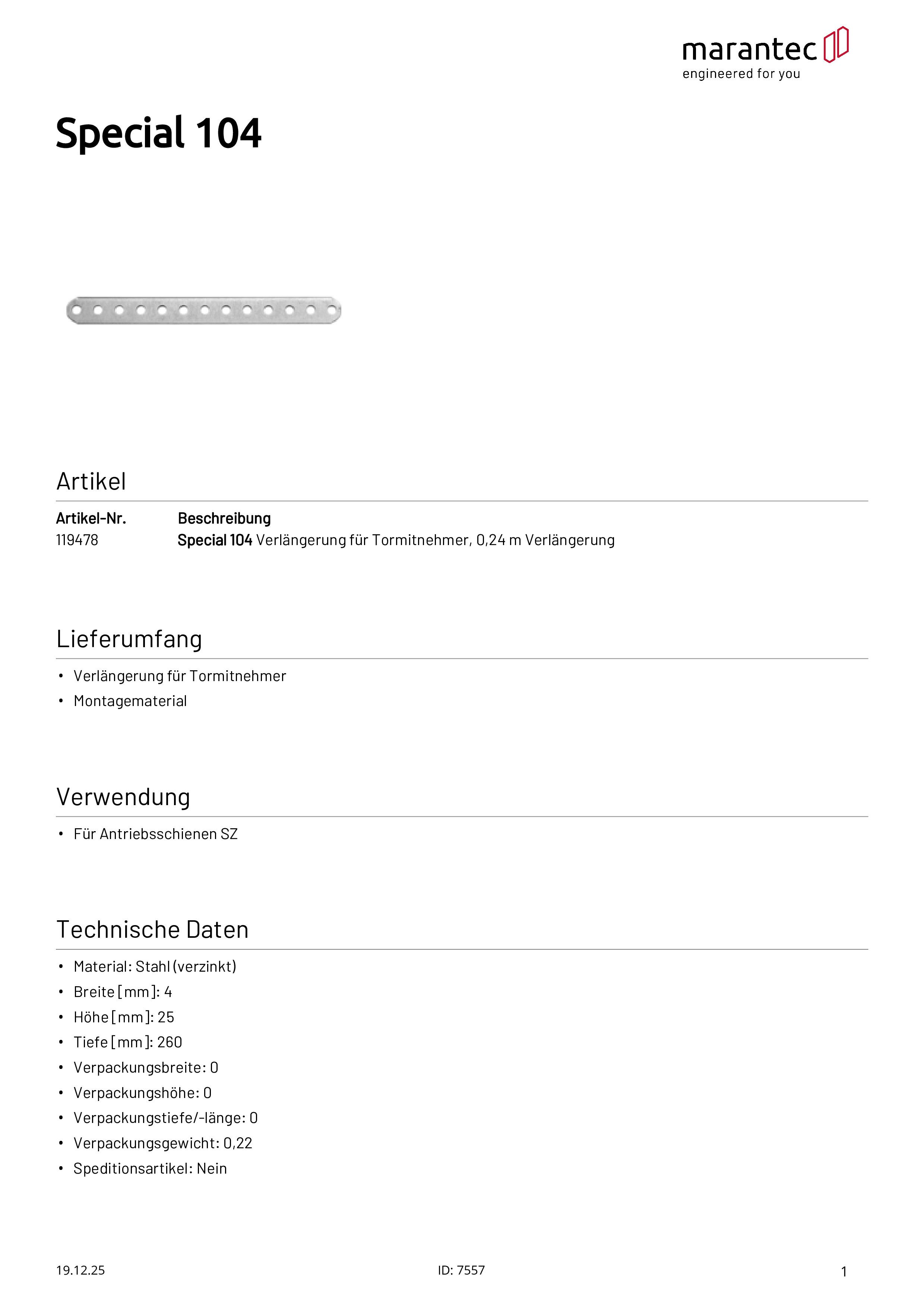 Special 104 Verlängerung für Tormitnehmer, 0,24 m Verlängerung