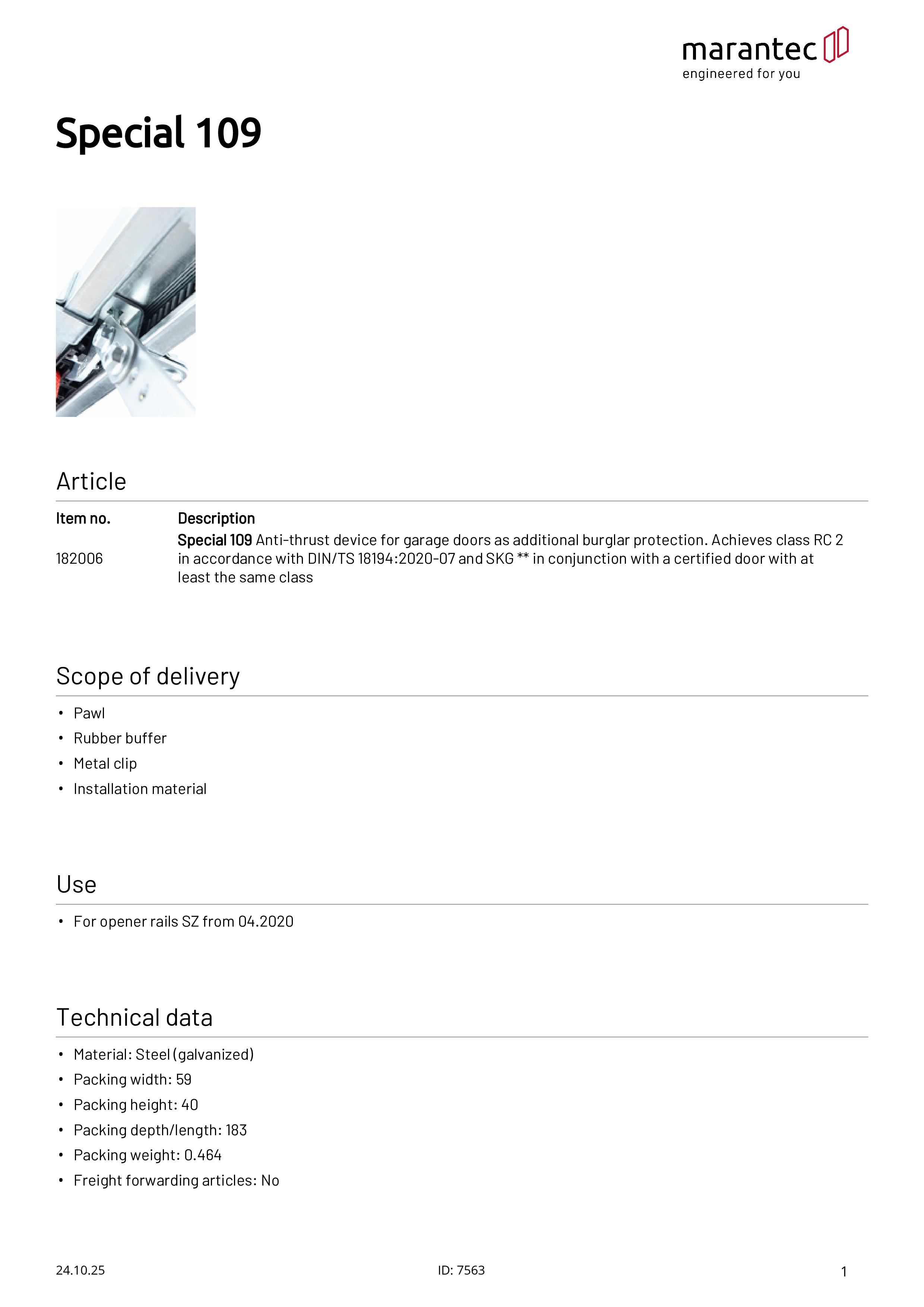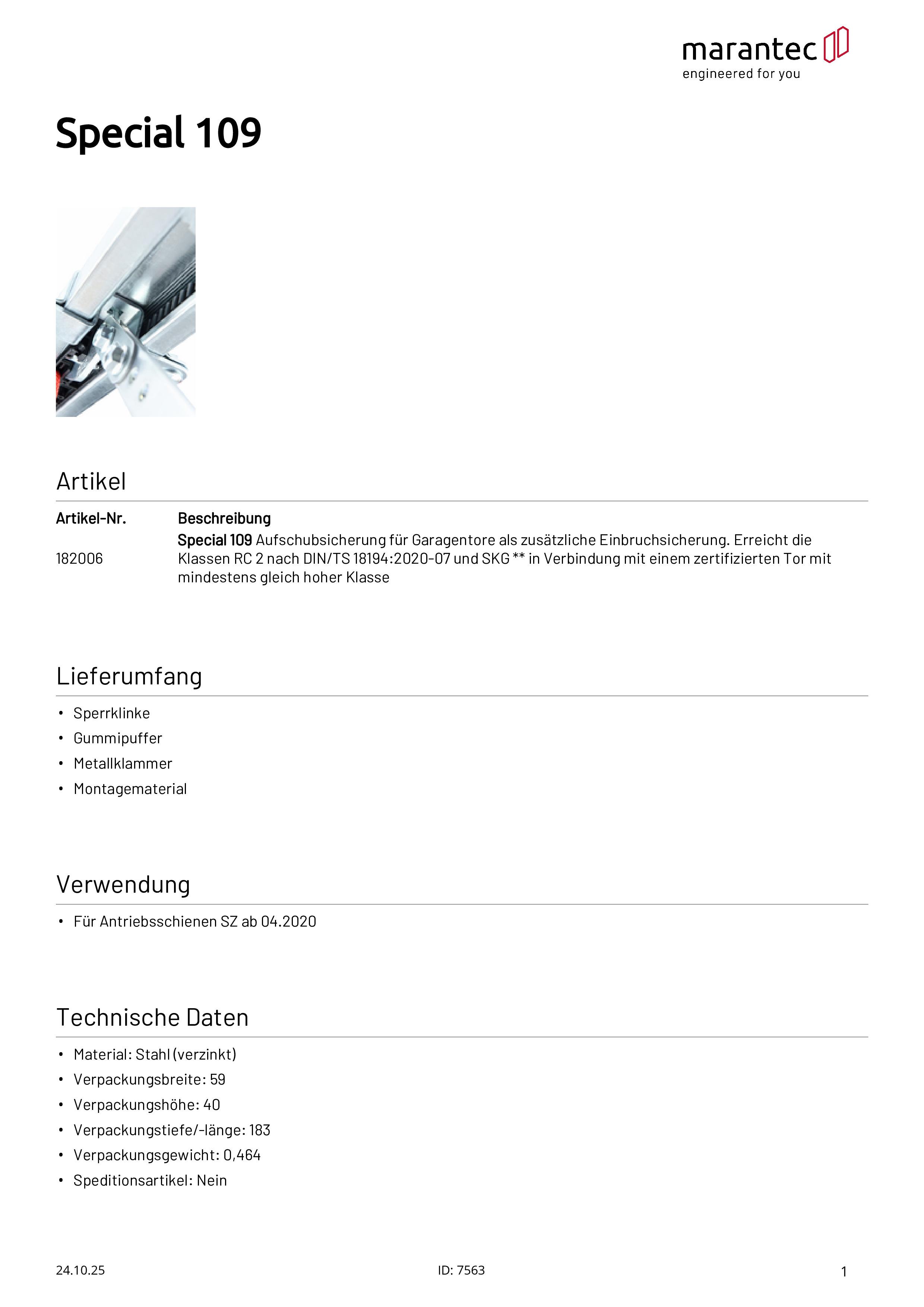 Special 109 Aufschubsicherung für Garagentore als Einbruchsicherung (RC 2/SKG)