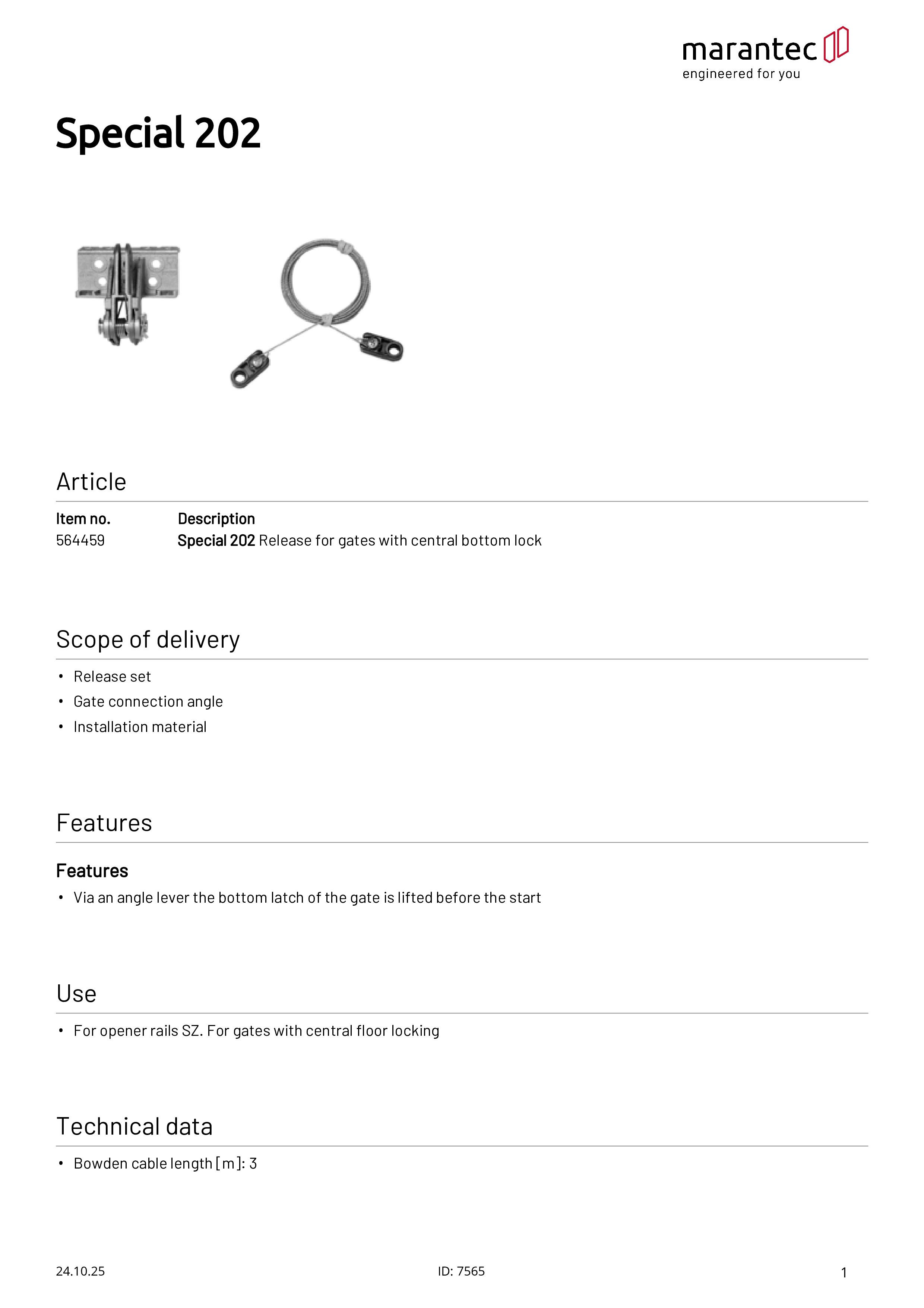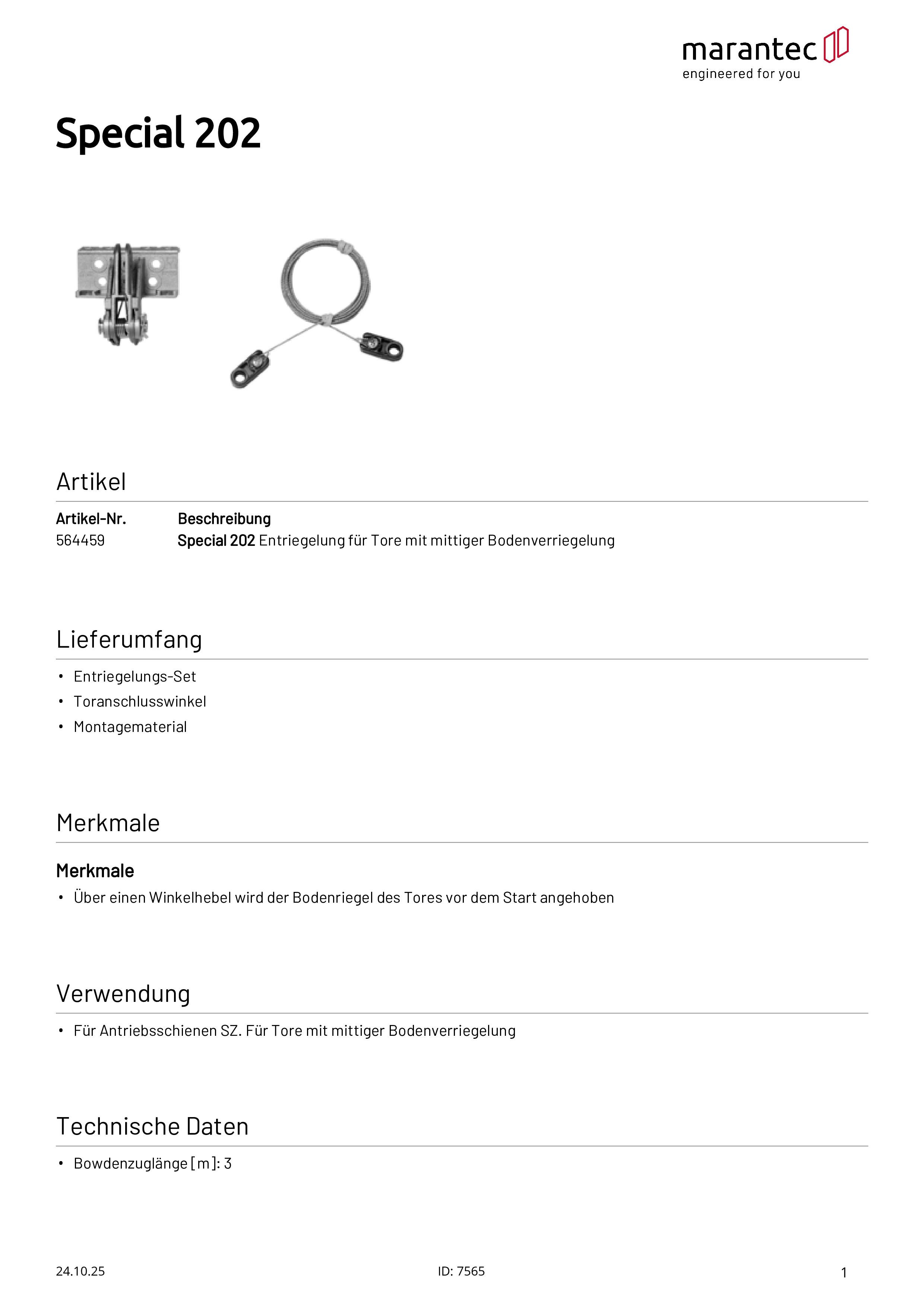 Special 202 Entriegelung für Tore mit mittiger Bodenverriegelung