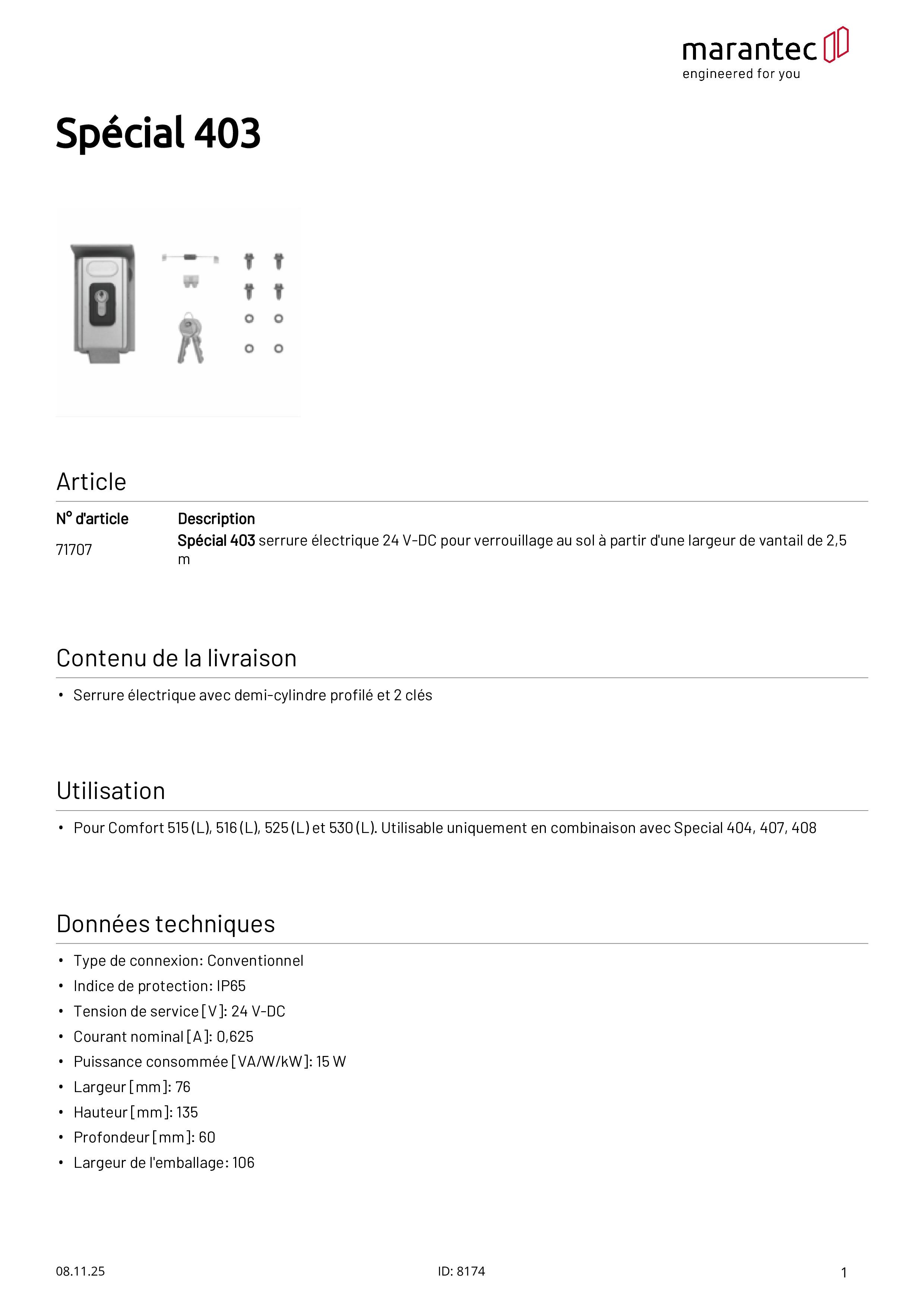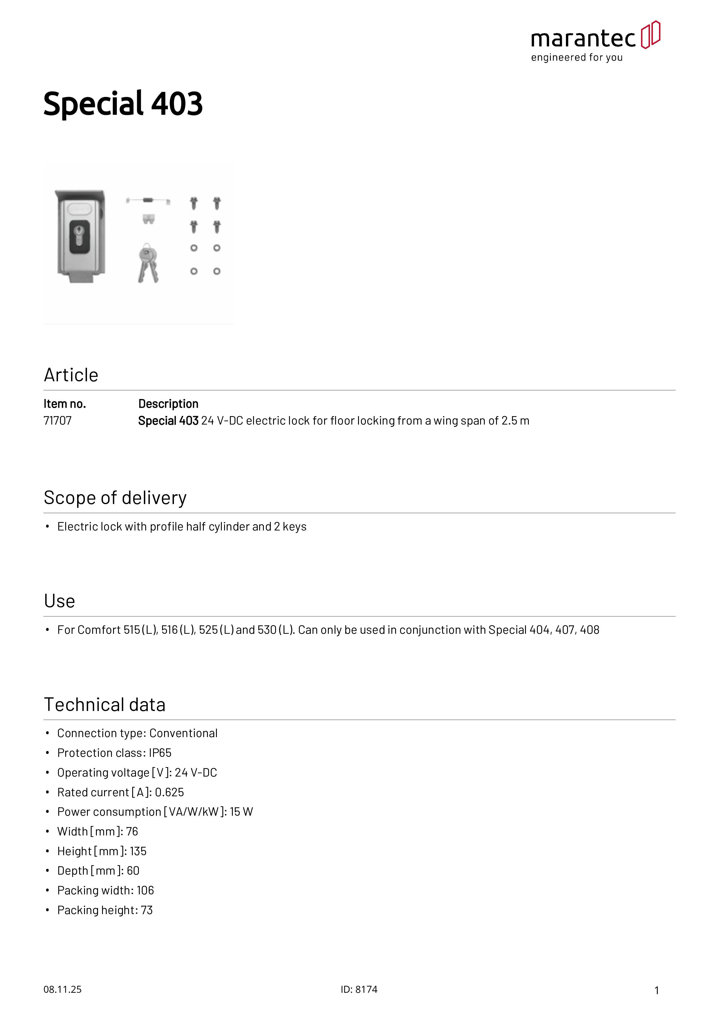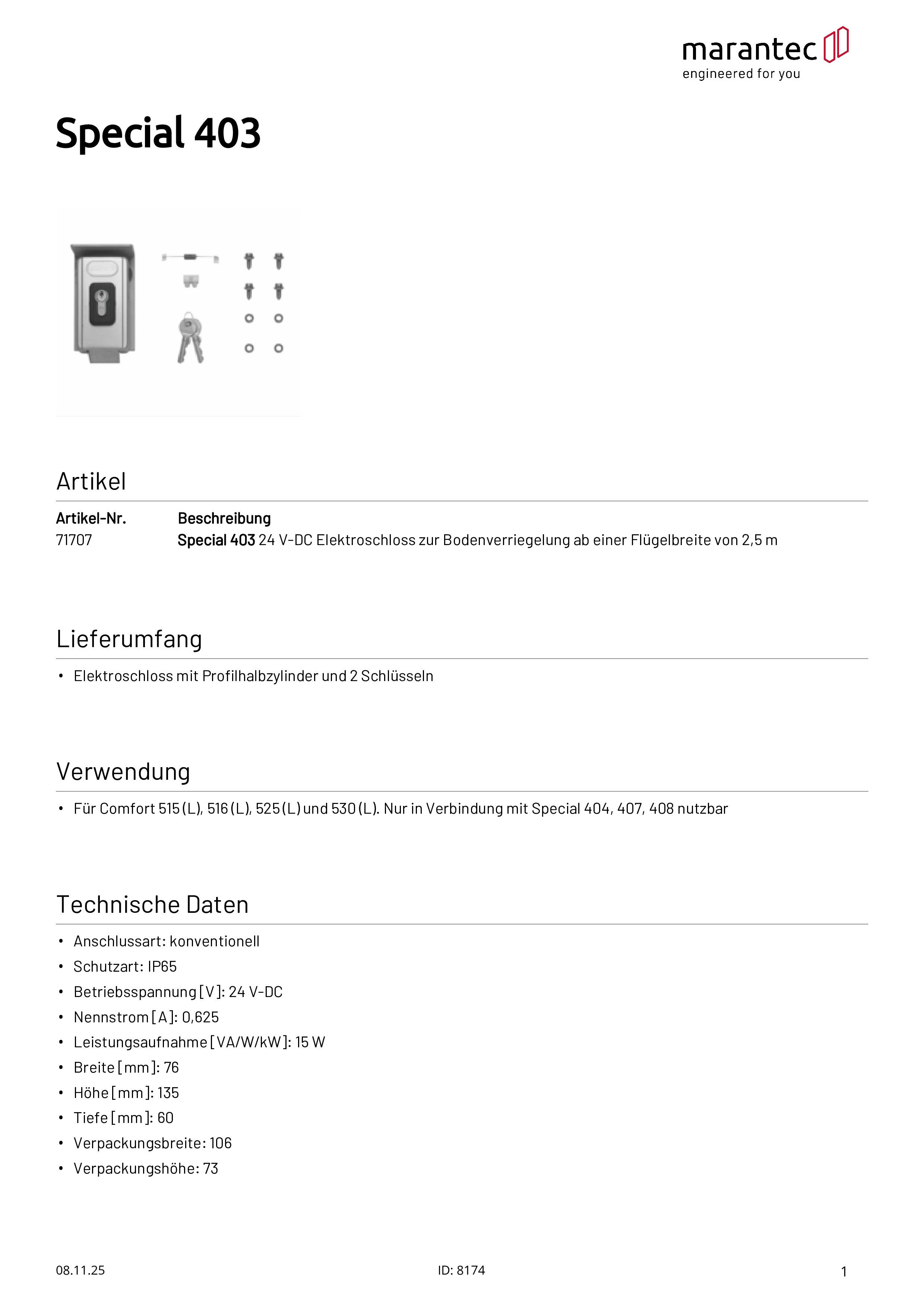 Special 403 Elektroschloss 24 V-DC, Bodenverriegelung