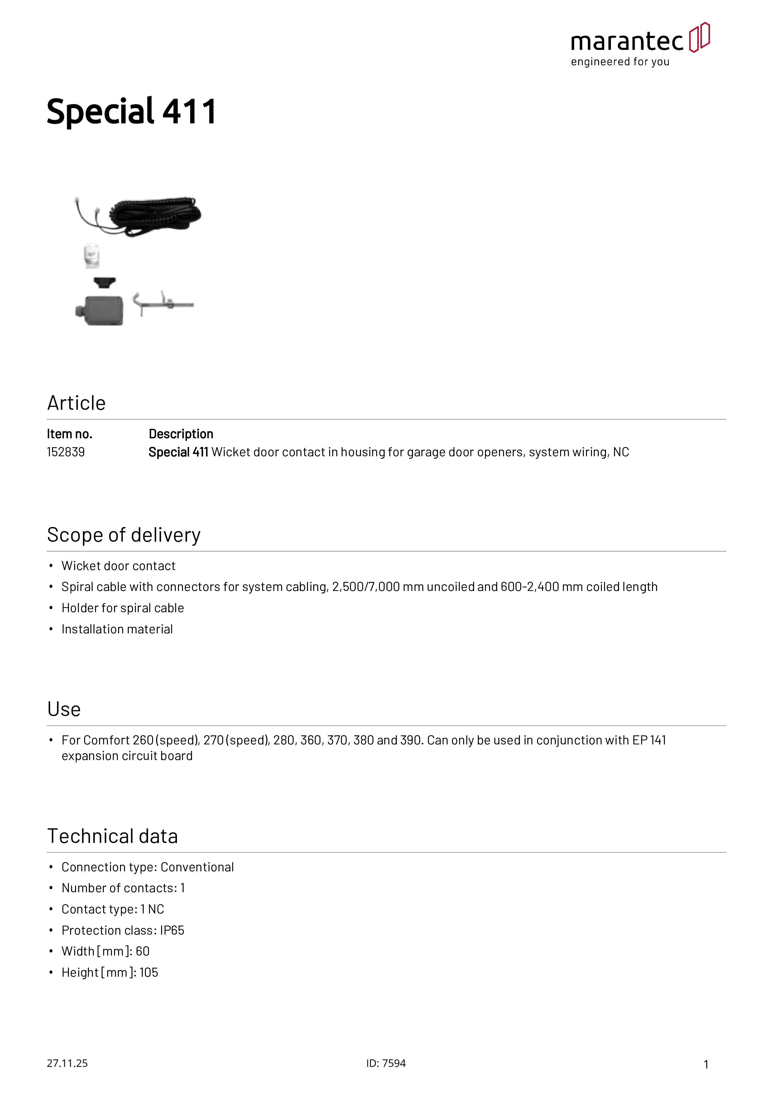 Special 411 Schlupftürkontakt im Gehäuse für Garagentorantriebe