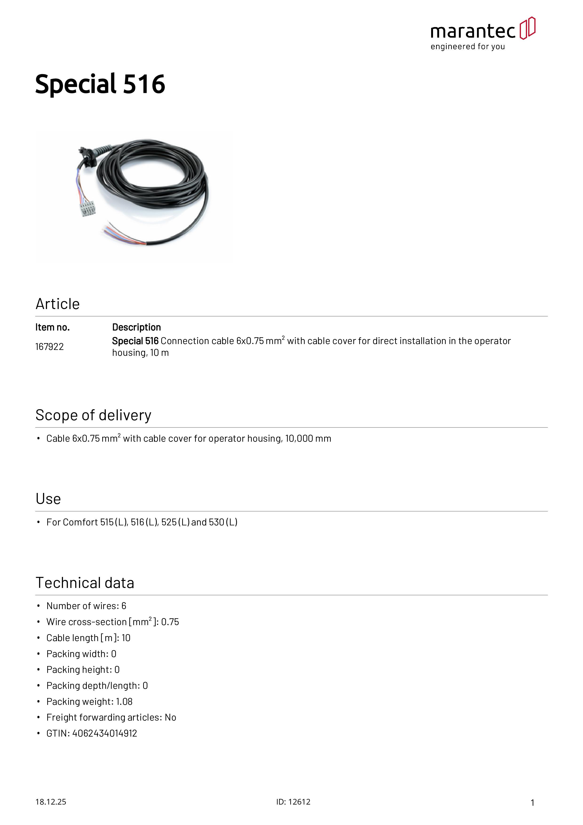 - Kabel 6x0,75 mm² mit Kabelblende für Antriebsgehäuse, 10.000 mm