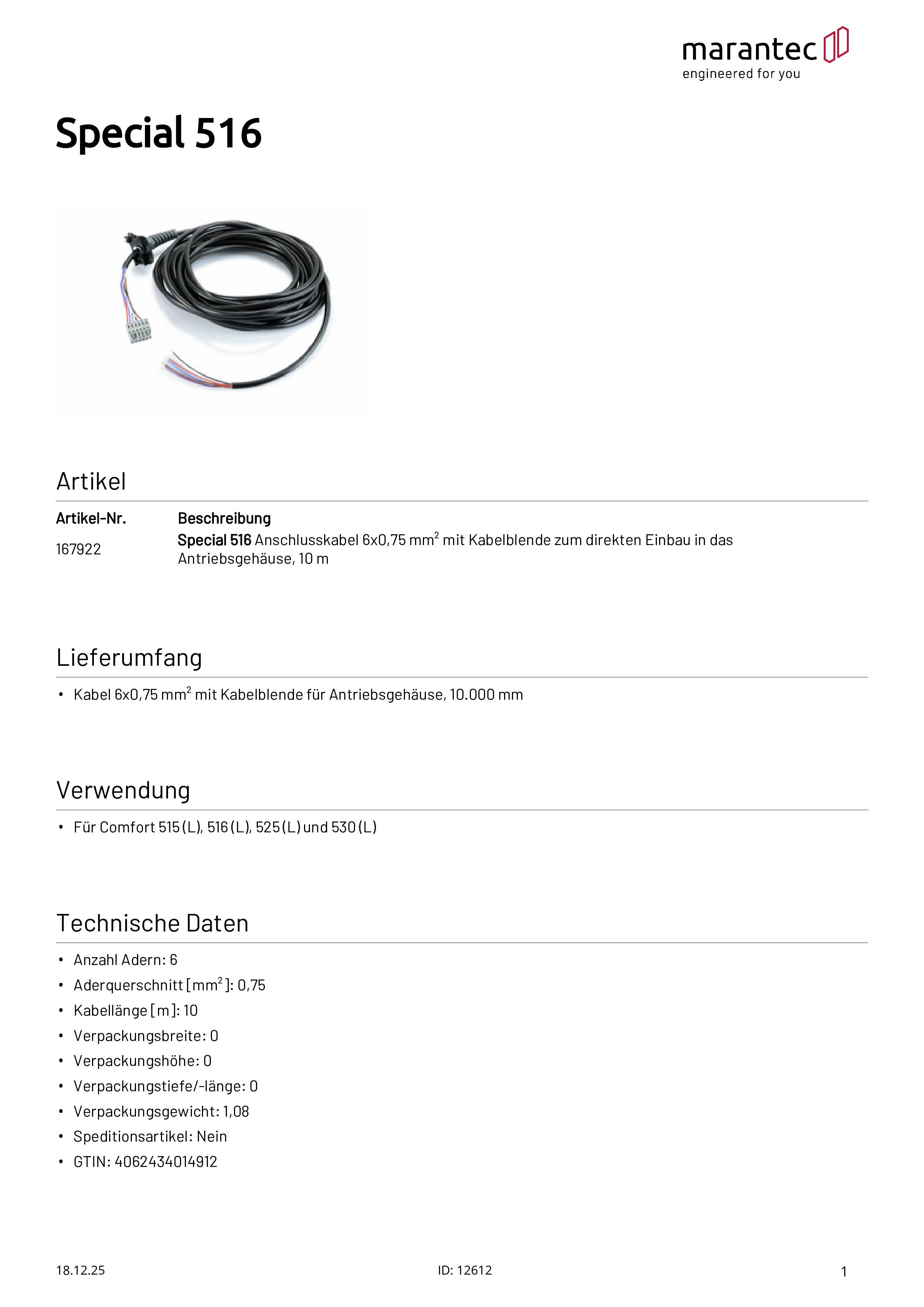 Special 516 Anschlusskabel 6x0,75 mm² mit Kabelblende, 10 m