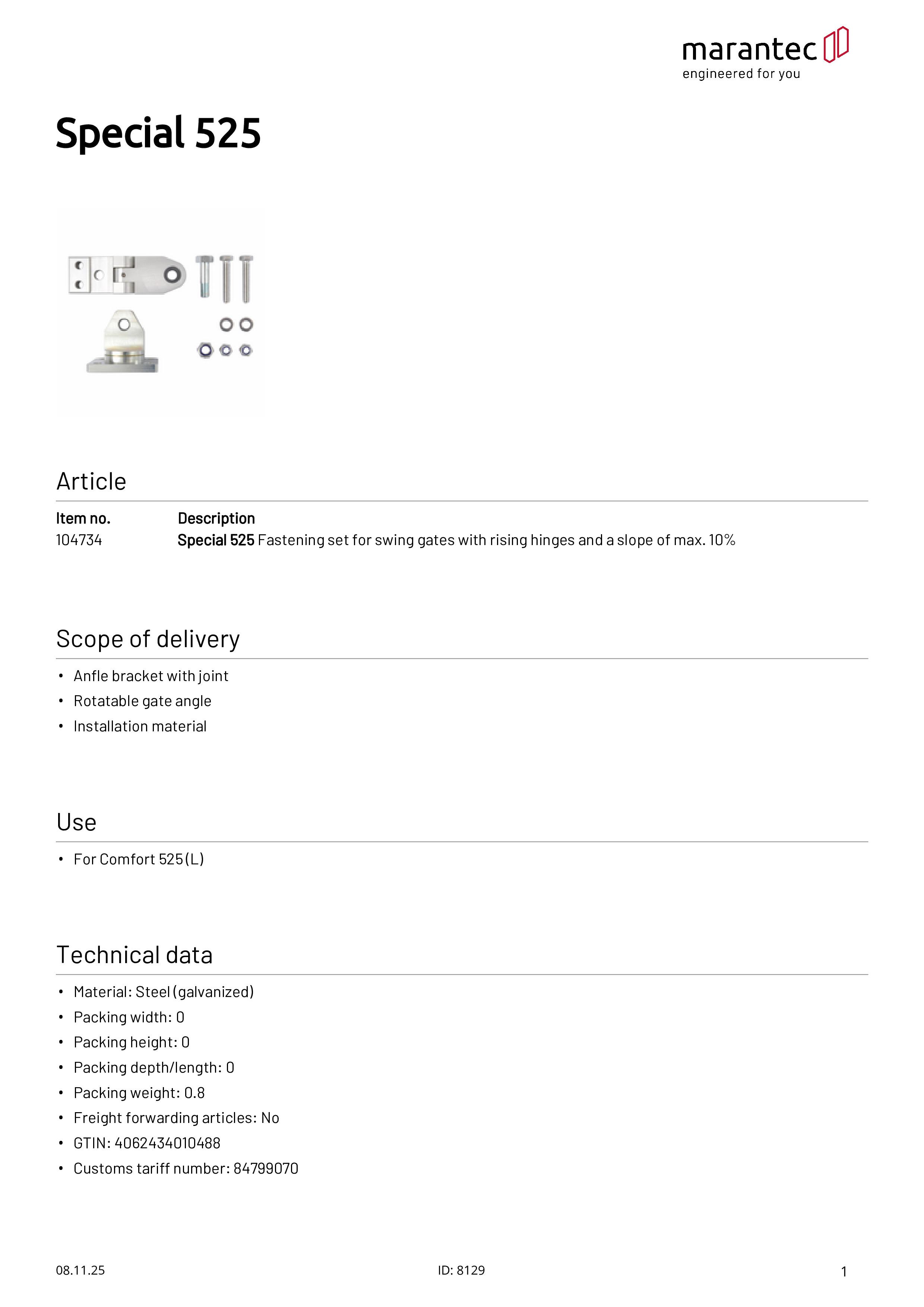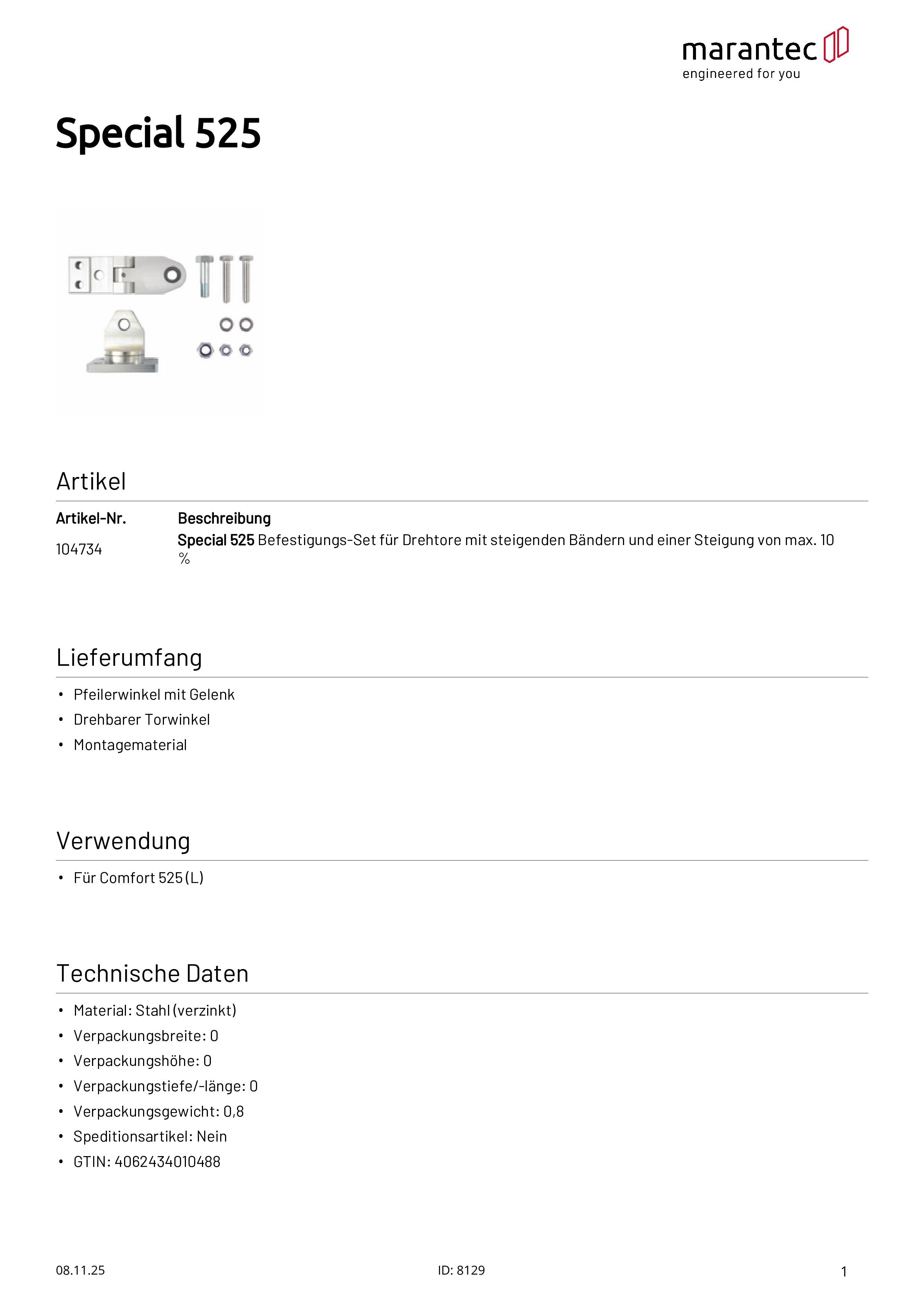 Special 525 Pfeilerbeschlag für Drehtore mit steigenden Bändern