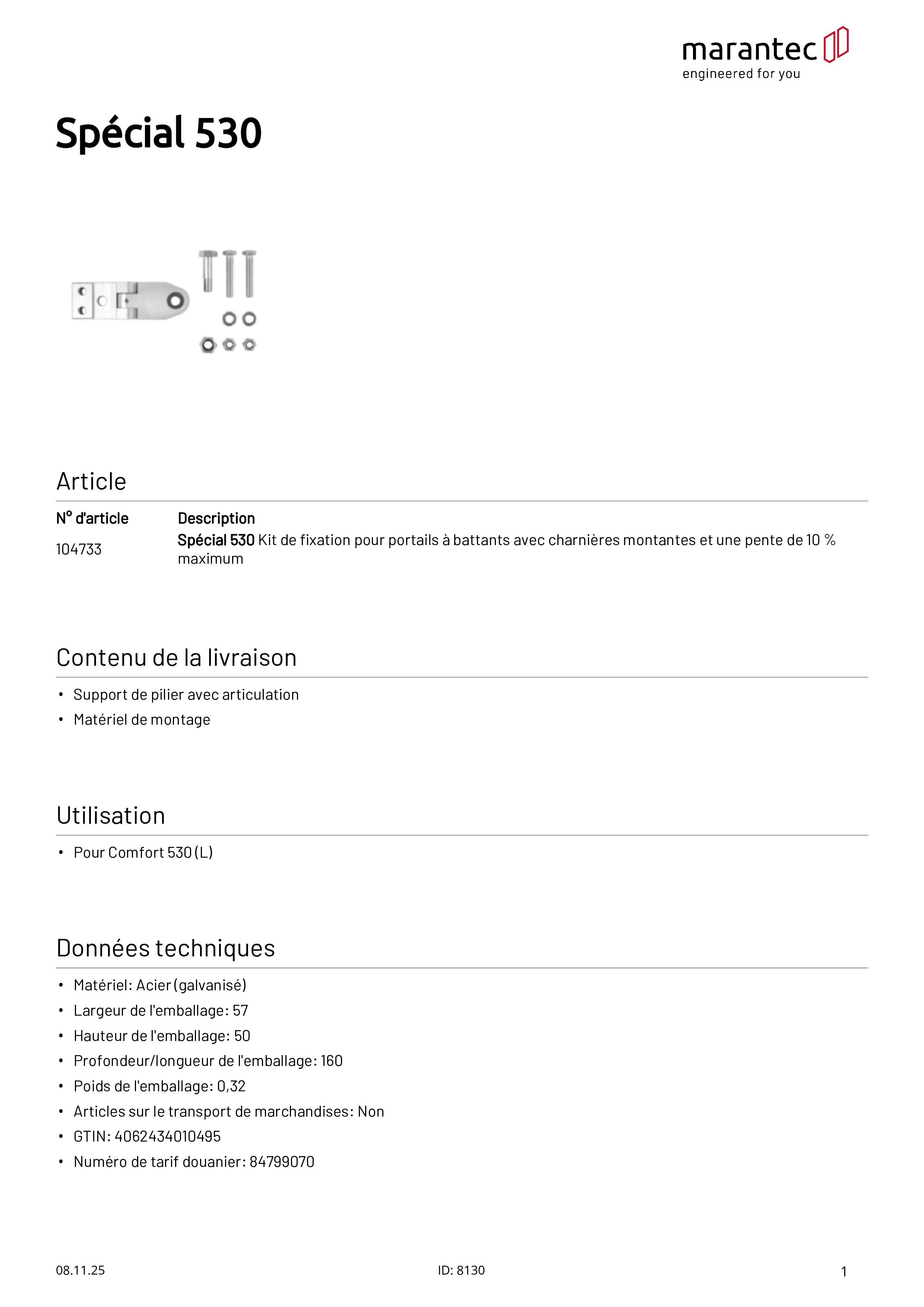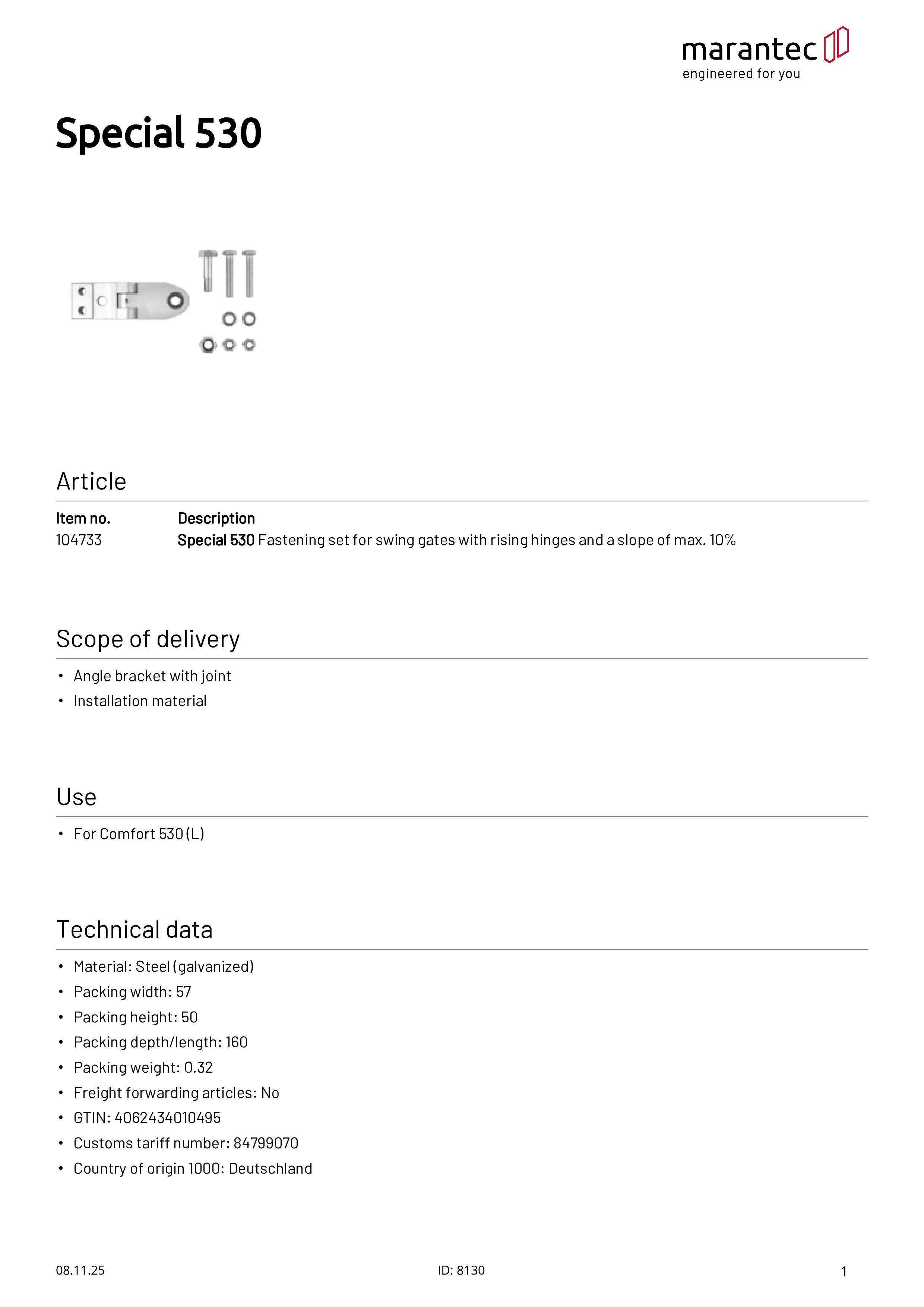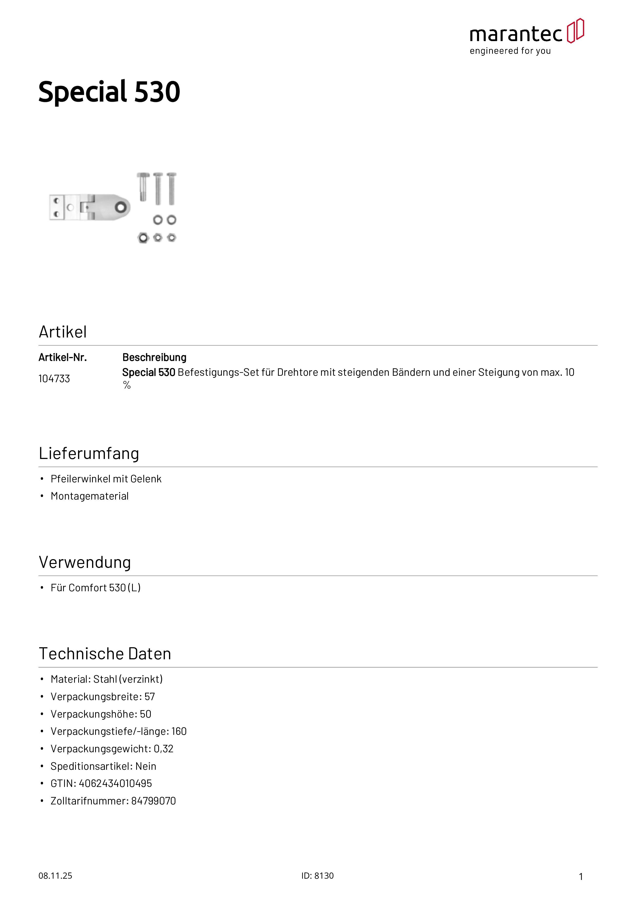 Special 530 Pfeilerbeschlag für Drehtore mit steigenden Bändern