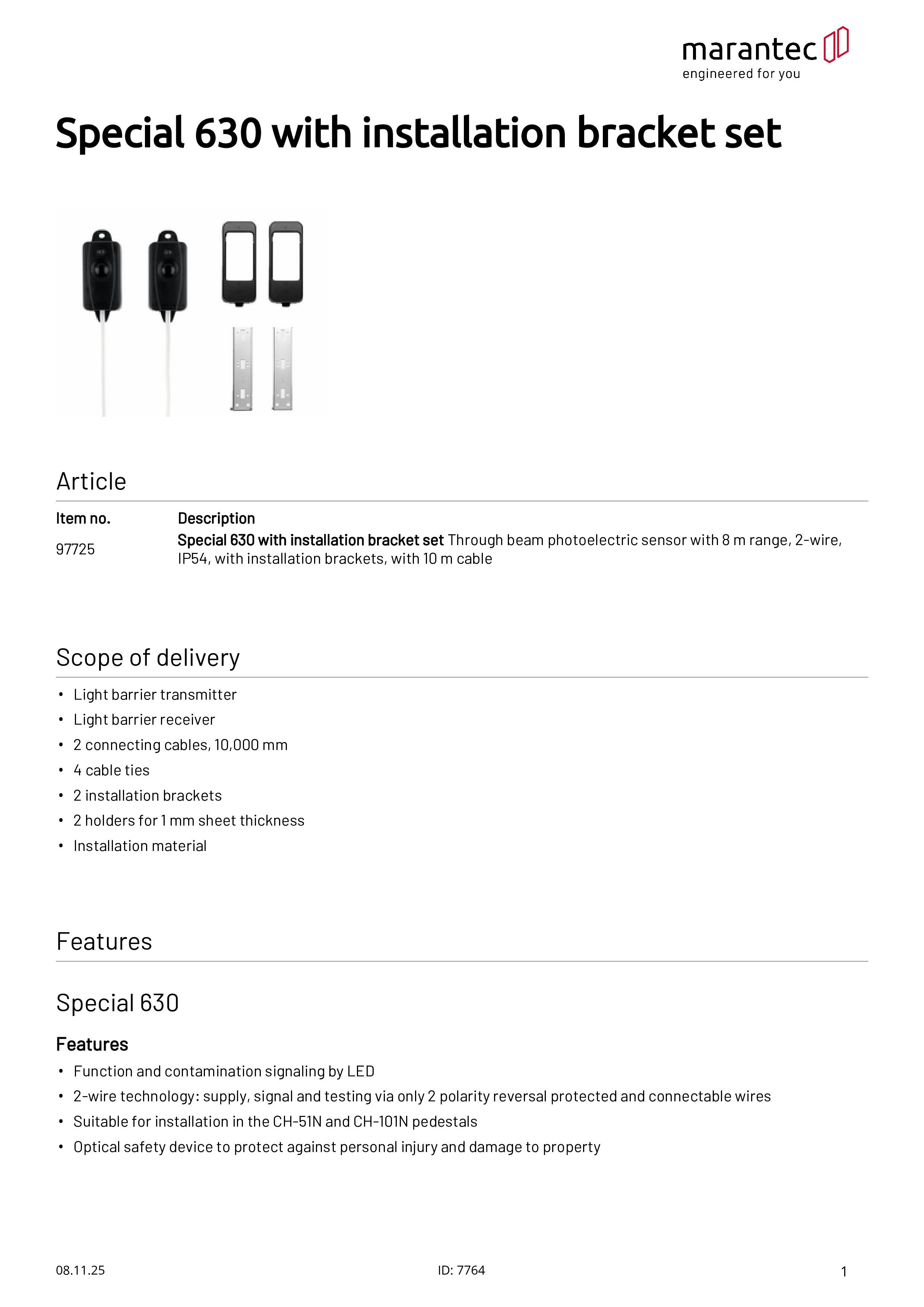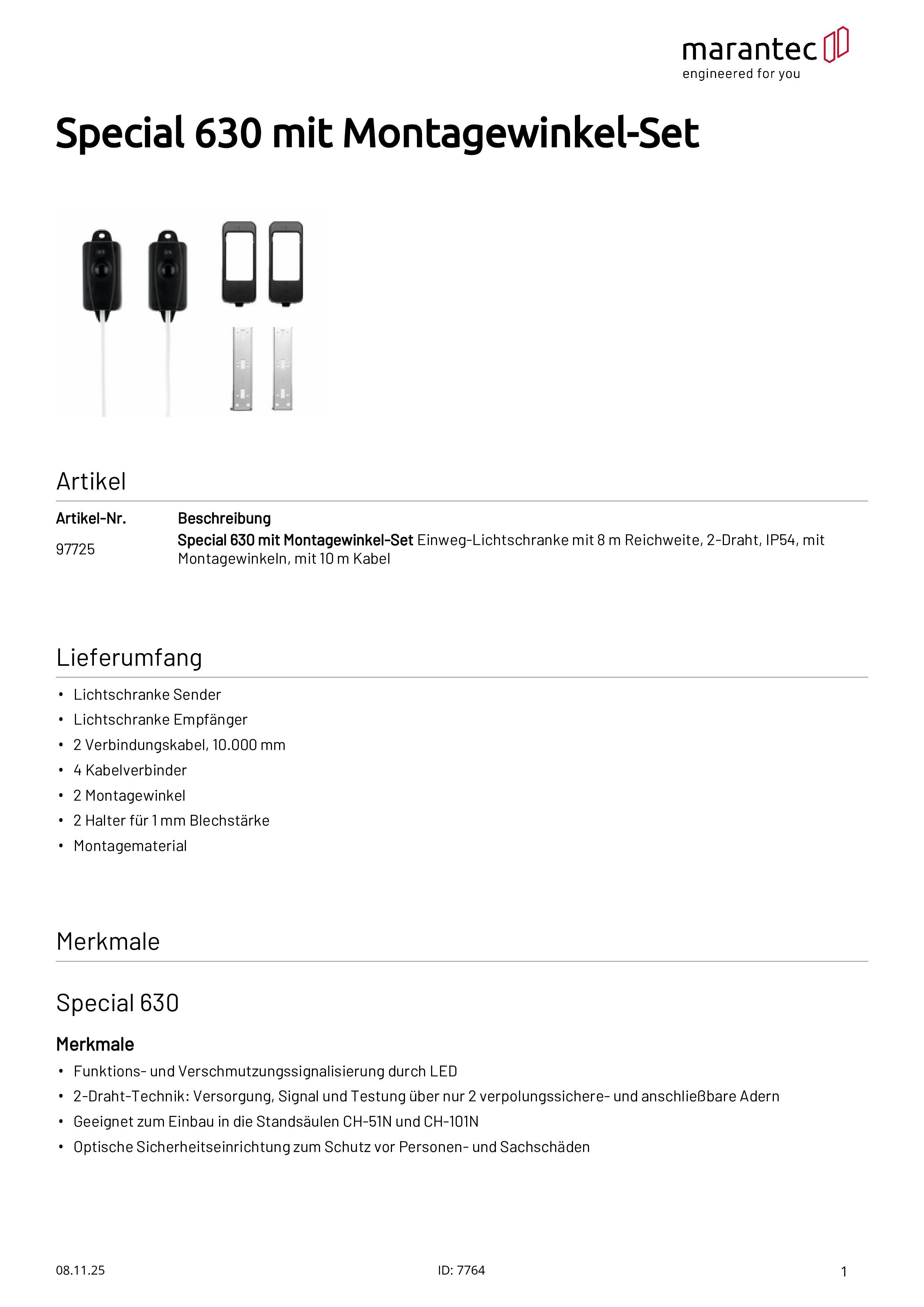 Special 630 Einweg-Lichtschranke mit 8 m Reichweite, mit Montagewinkel