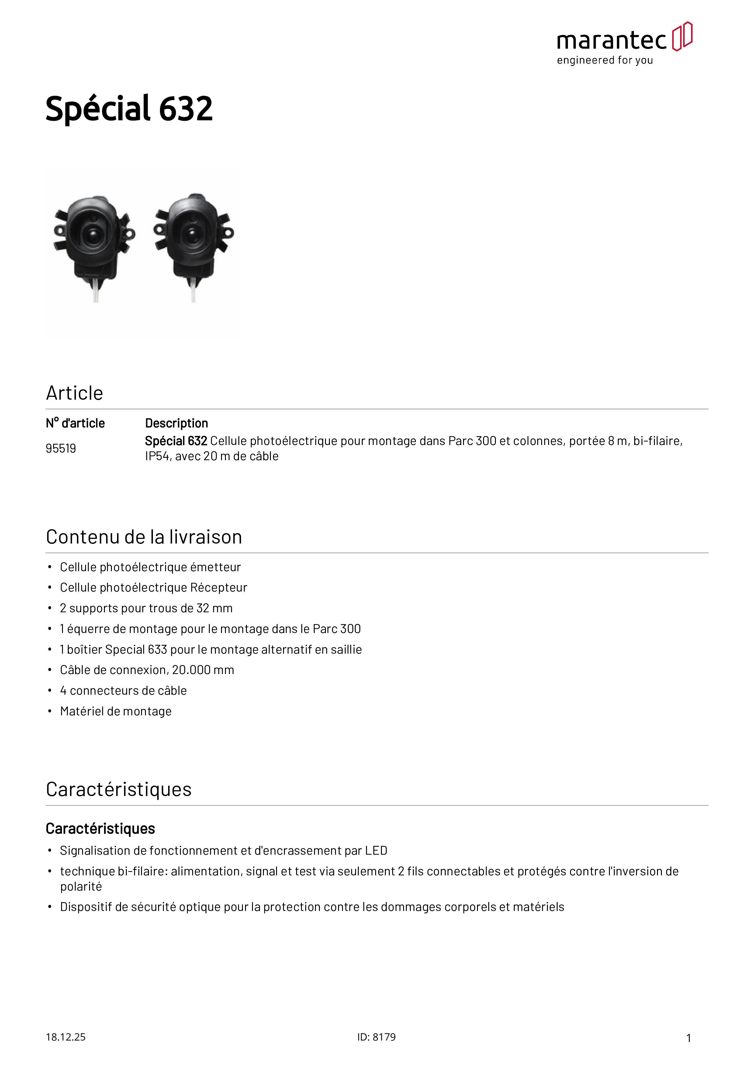 Special 632 Einweg-Lichtschranke für Parc 300 ohne Säule Reichweite 8 m