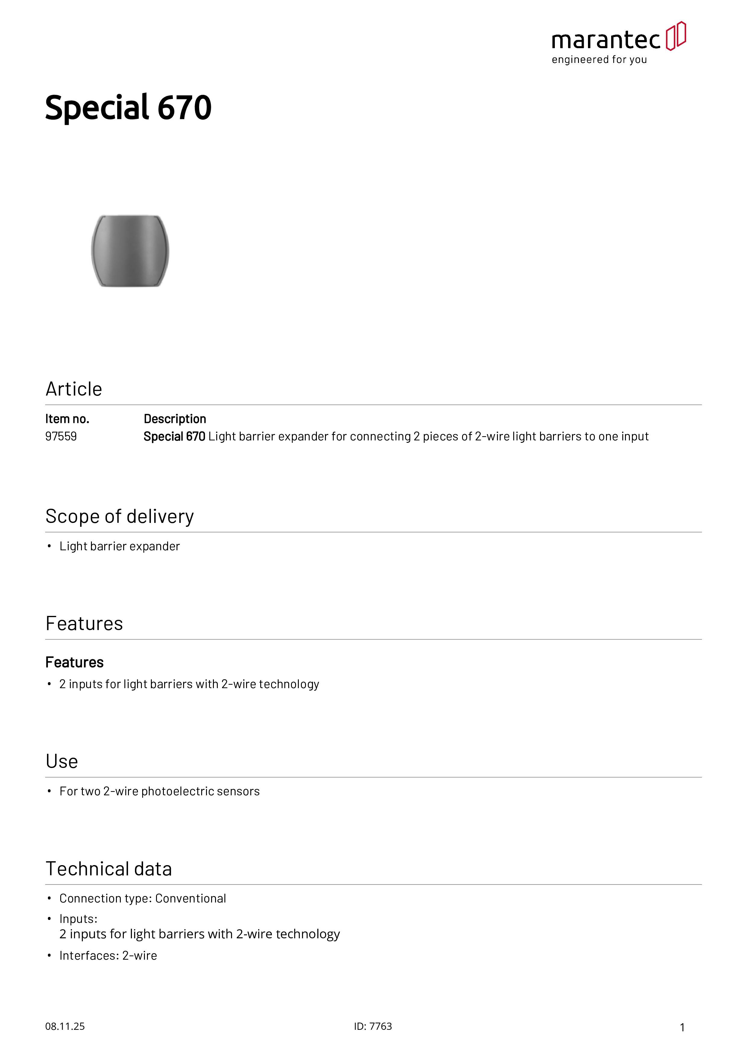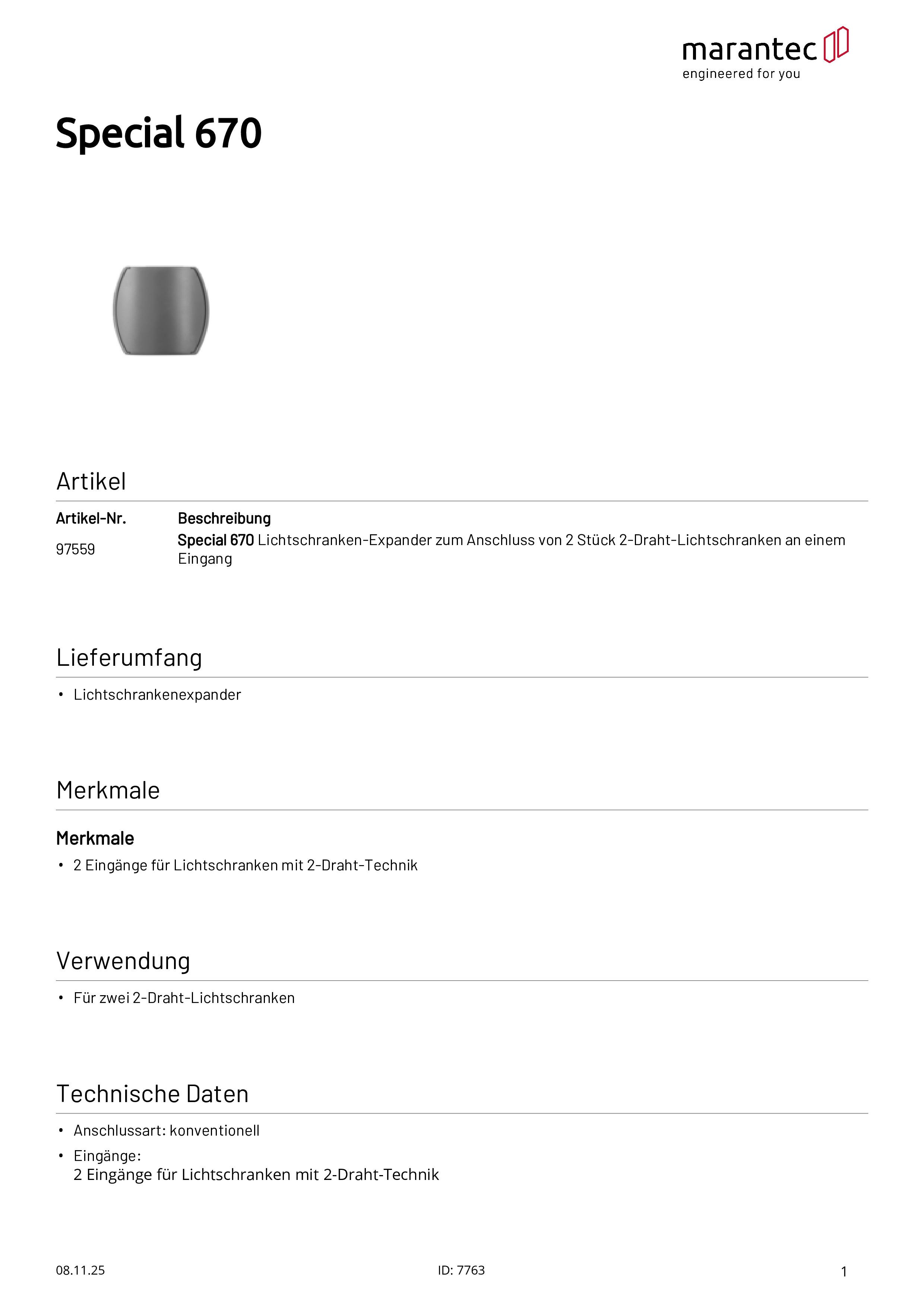 Special 670 Anschluss von zwei 2-Draht-Lichtschranken an einem Eingang