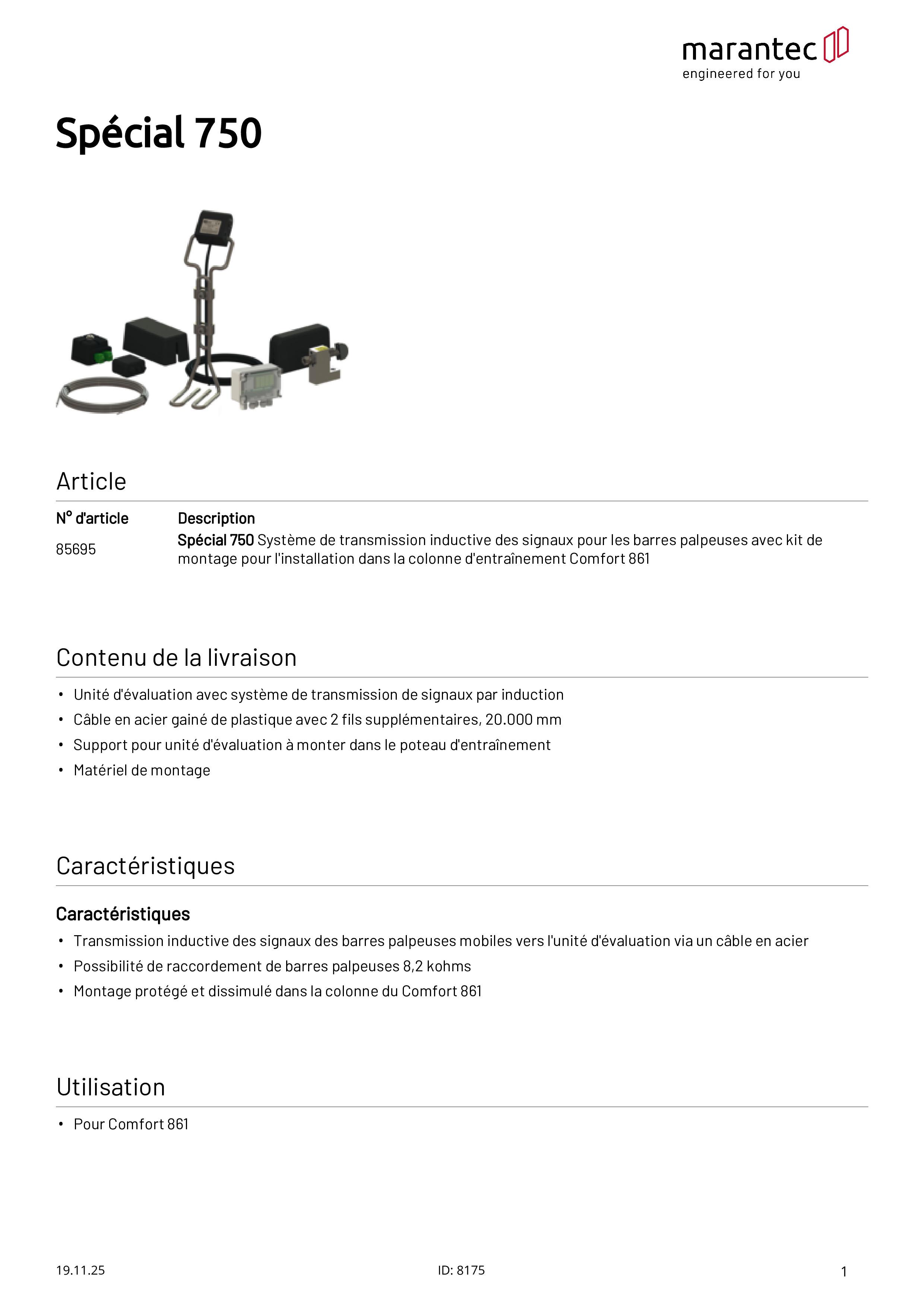 - Geschützte und versteckte Montage in der Antriebssäule Comfort 861