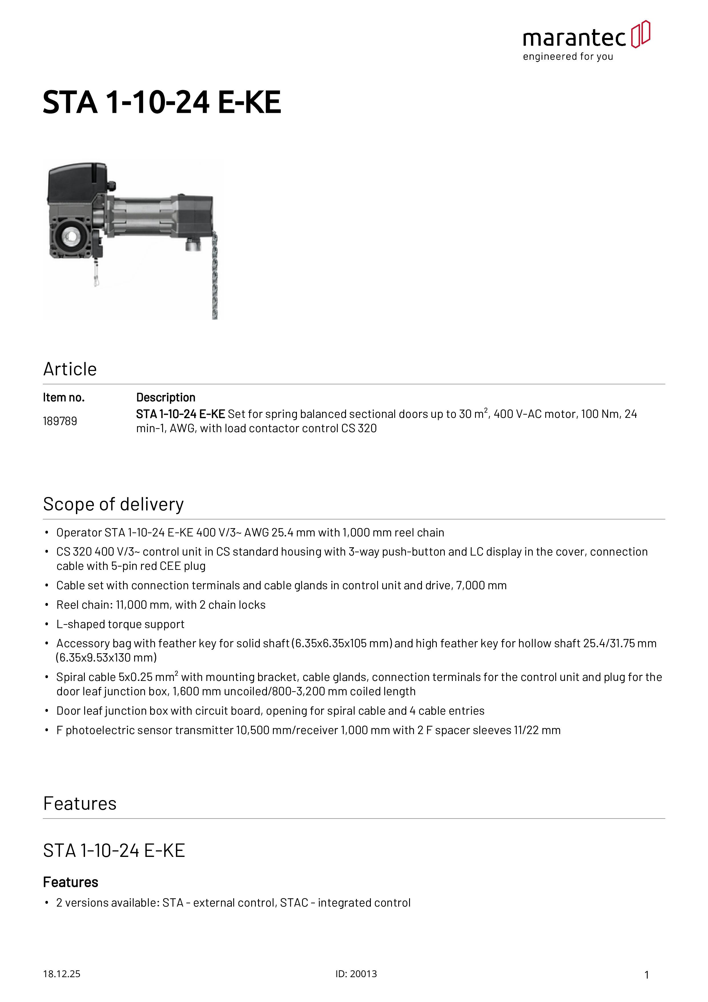 STA 1-10-24 E-KE AWG 25,4 mm – CS 320 400 V/3~ – 7,0 m – Tx 10,5 m/Rx 1,0 m – Express-Lieferung