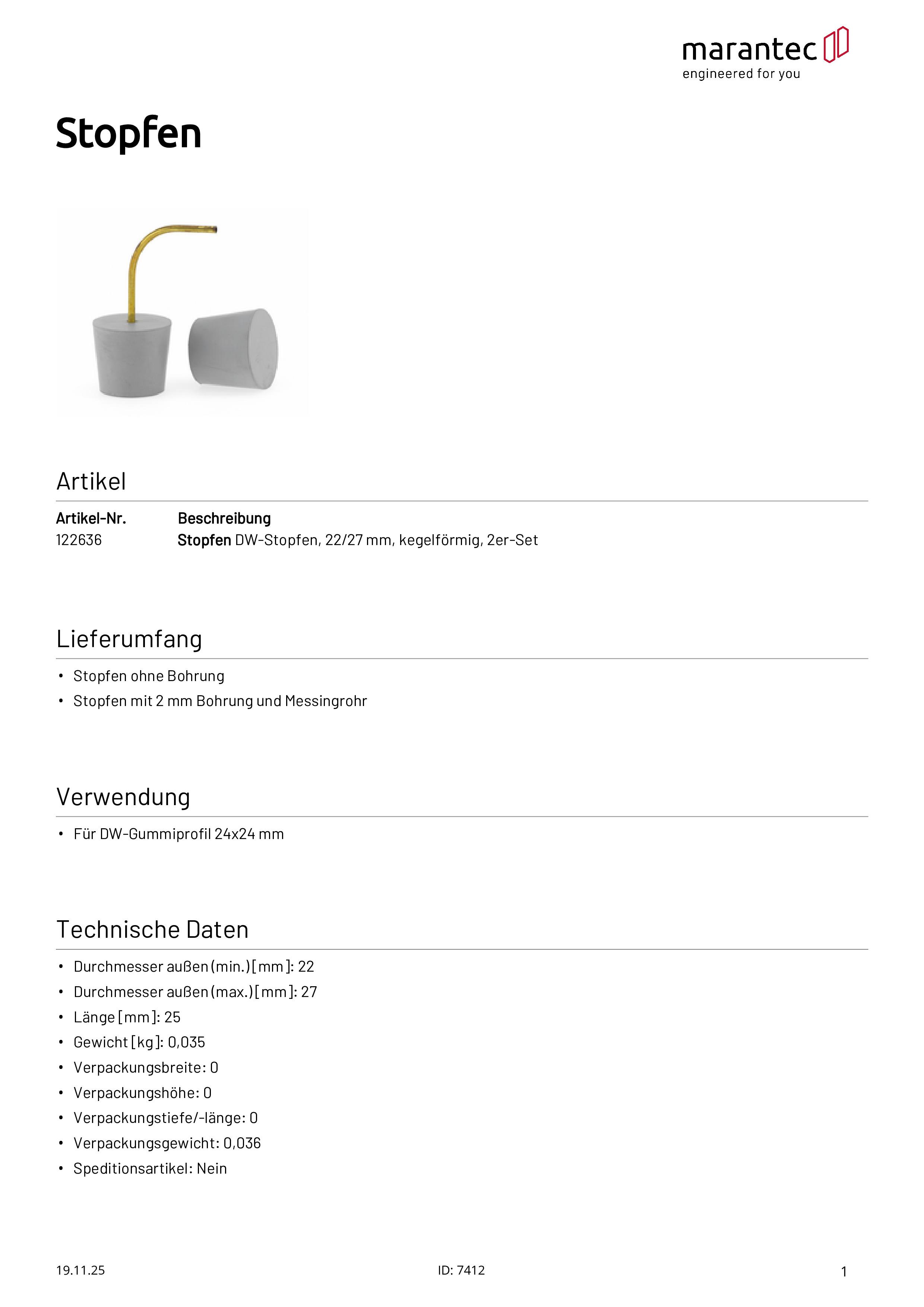 DW-Stopfen, 22/27 mm, kegelförmig, 2er-Set