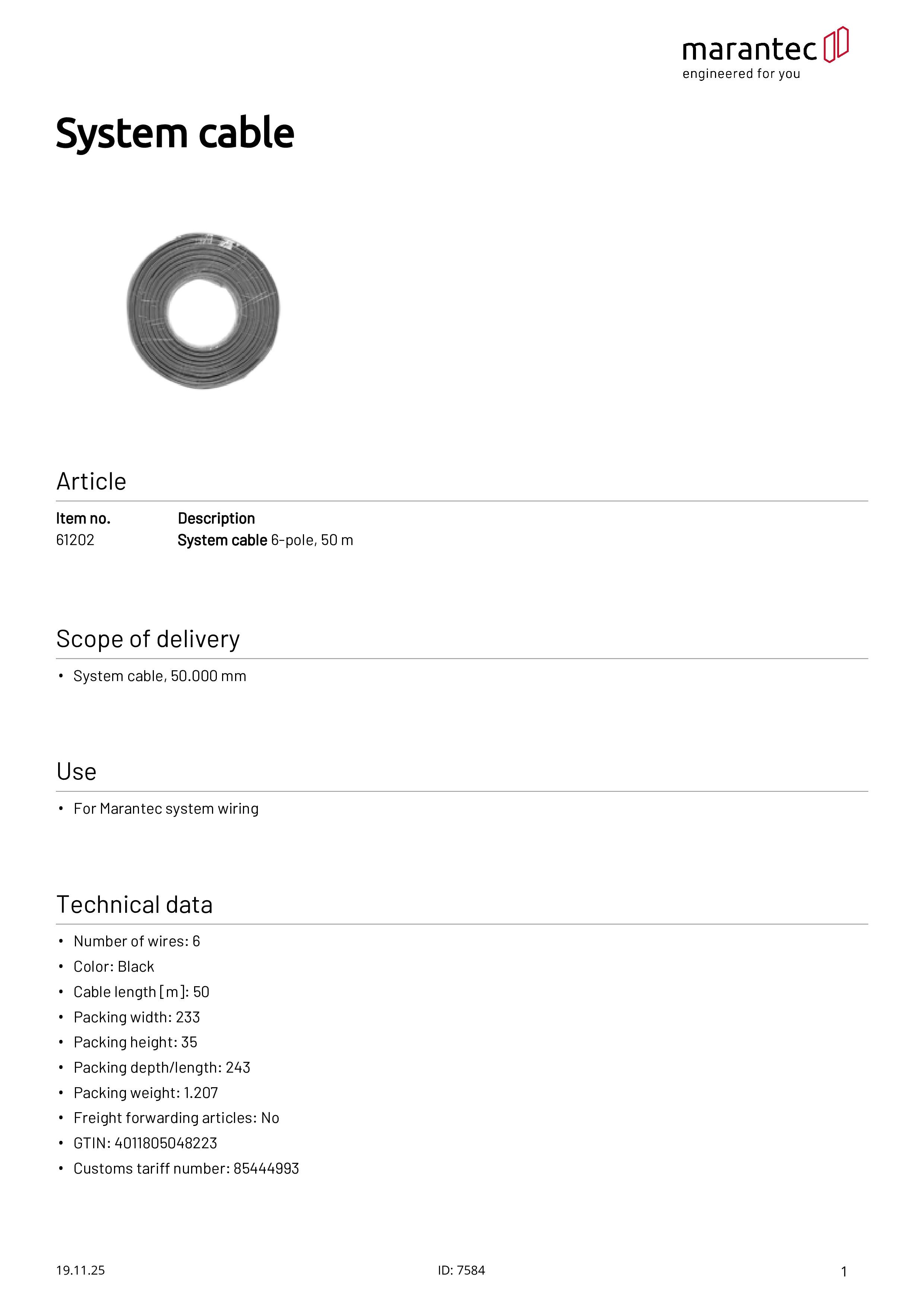 Systemkabel 6-polig, 50 m Rolle