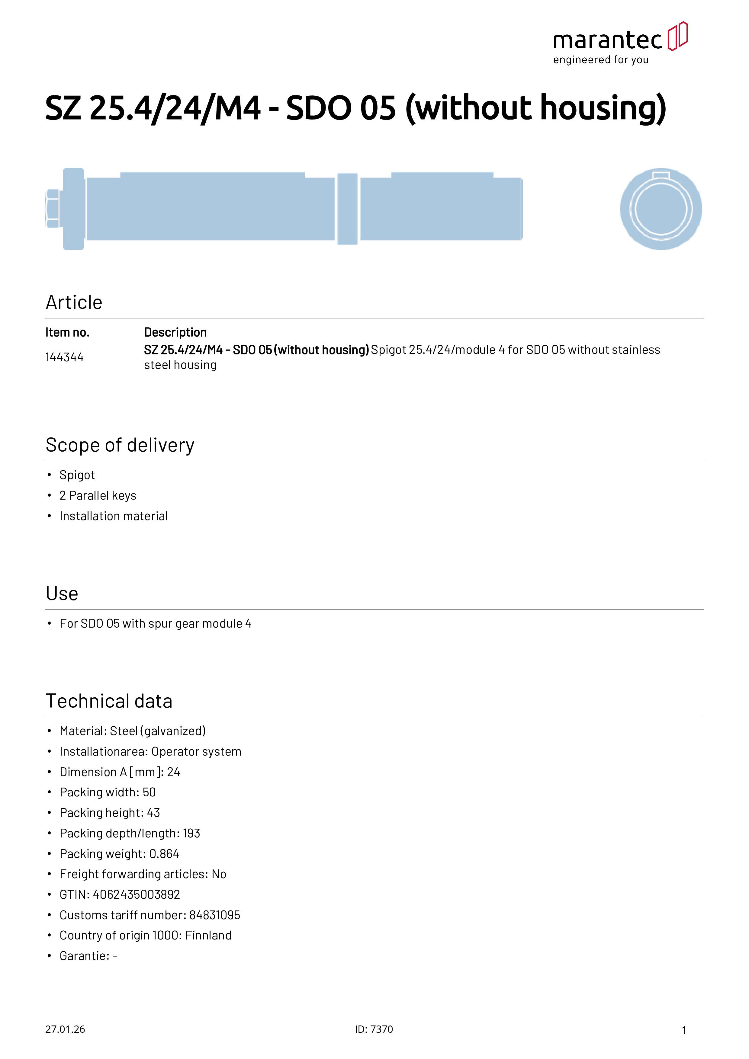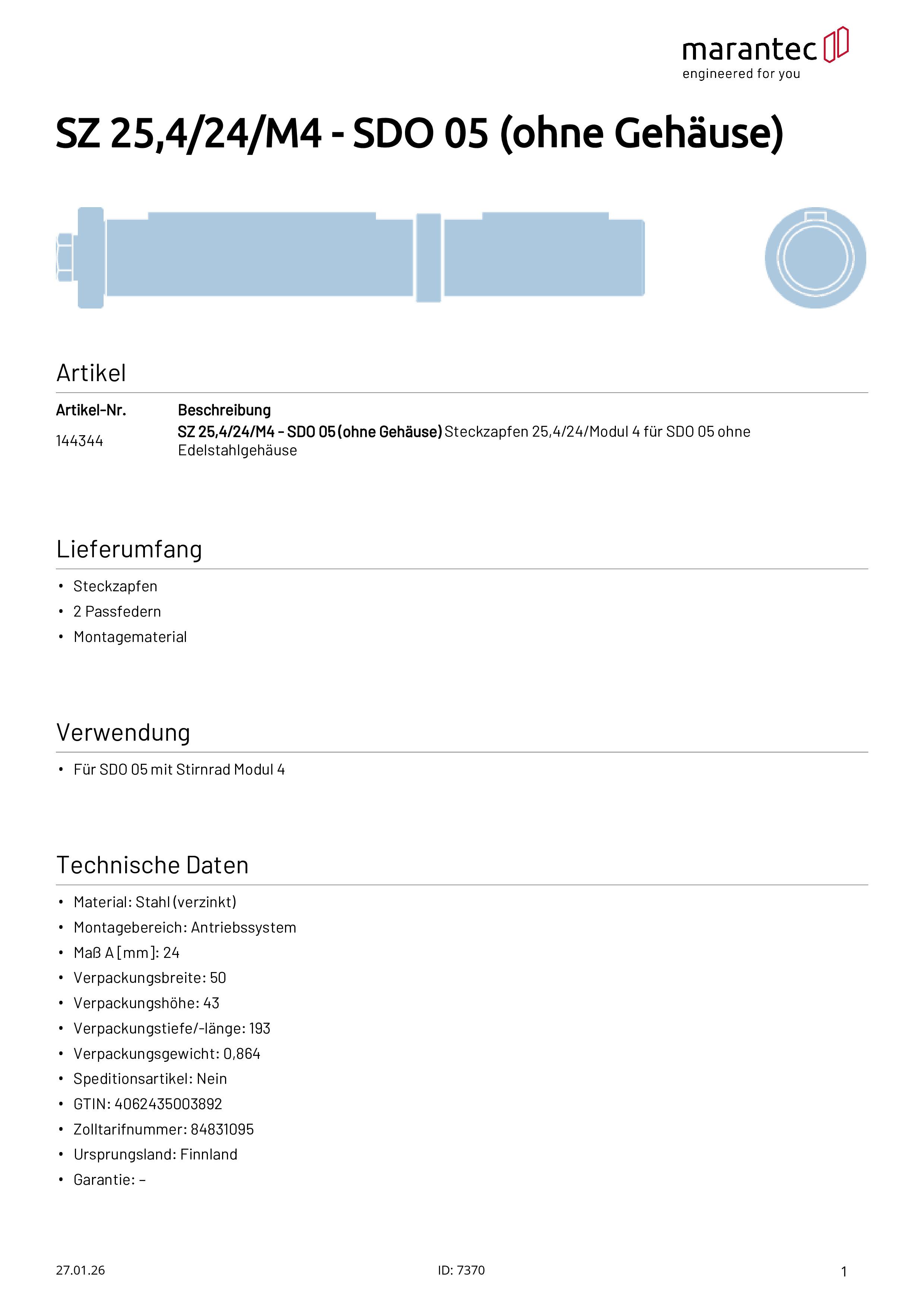 SZ 25,4/24/ Modul 4 - Steckzapfen für SDO 05 ohne Edelstahlgehäuse